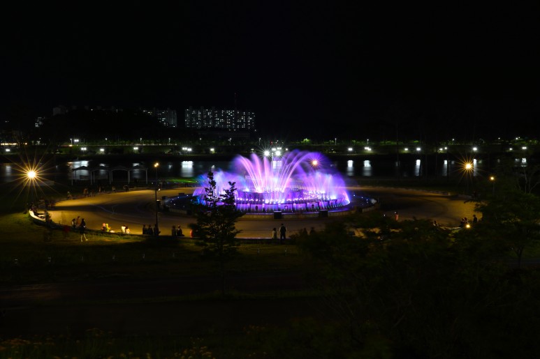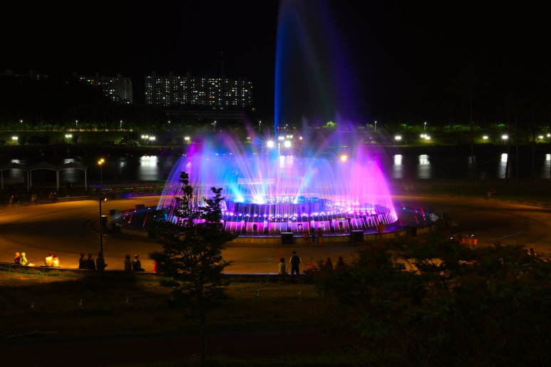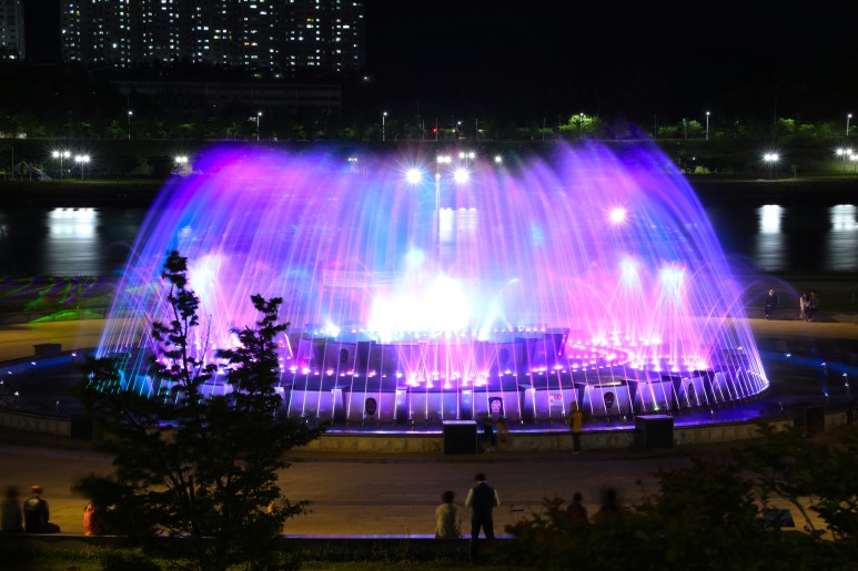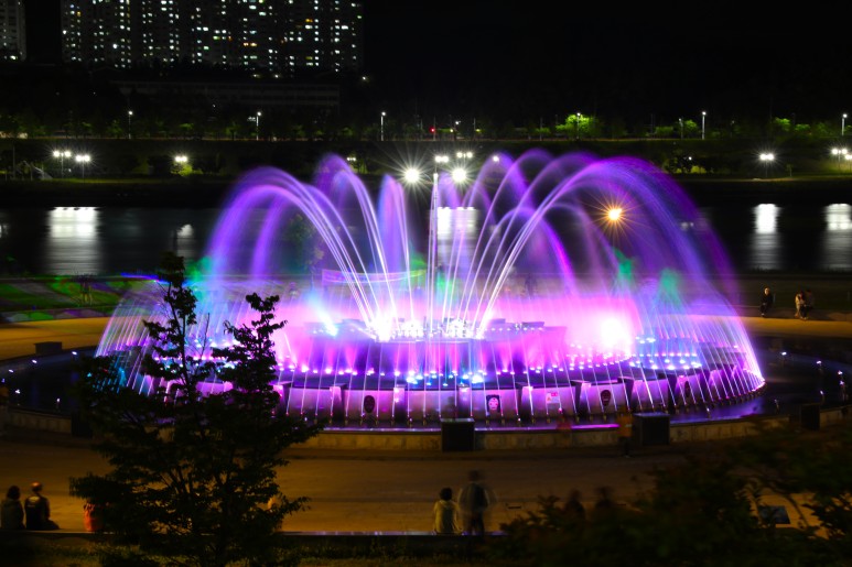 음악분수처럼 움직이는 피사체를 담을 땐 장노출이 필요한데, 특히 음악분수처럼 야간에 장노출을 찍는건 조금 난이도가 있는 작업이다.