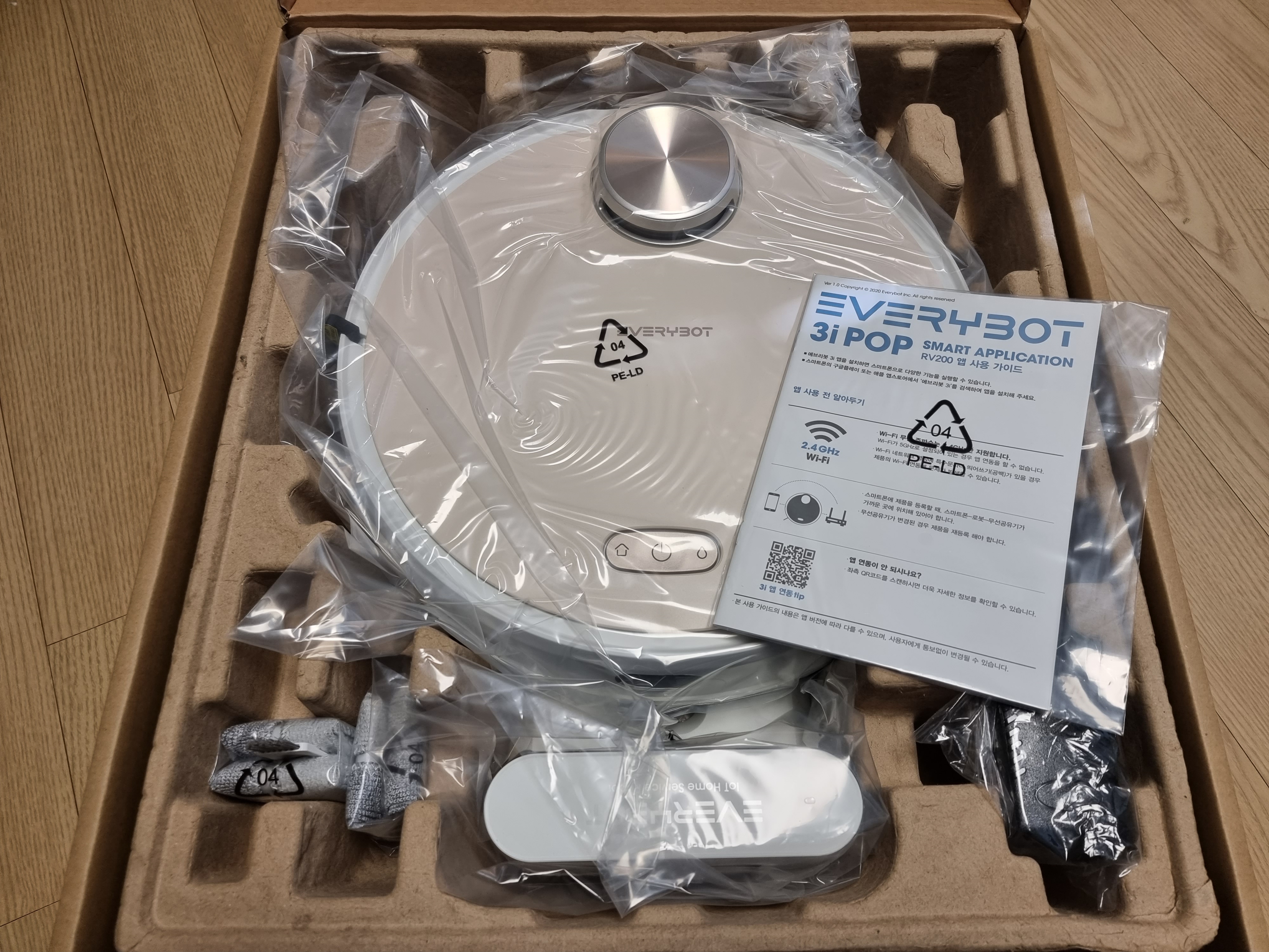 에브리봇 로봇청소기 본품과 충전기, 그리고 충전선 및 기타 등등이다. 구성은 꽤 심플하다.
