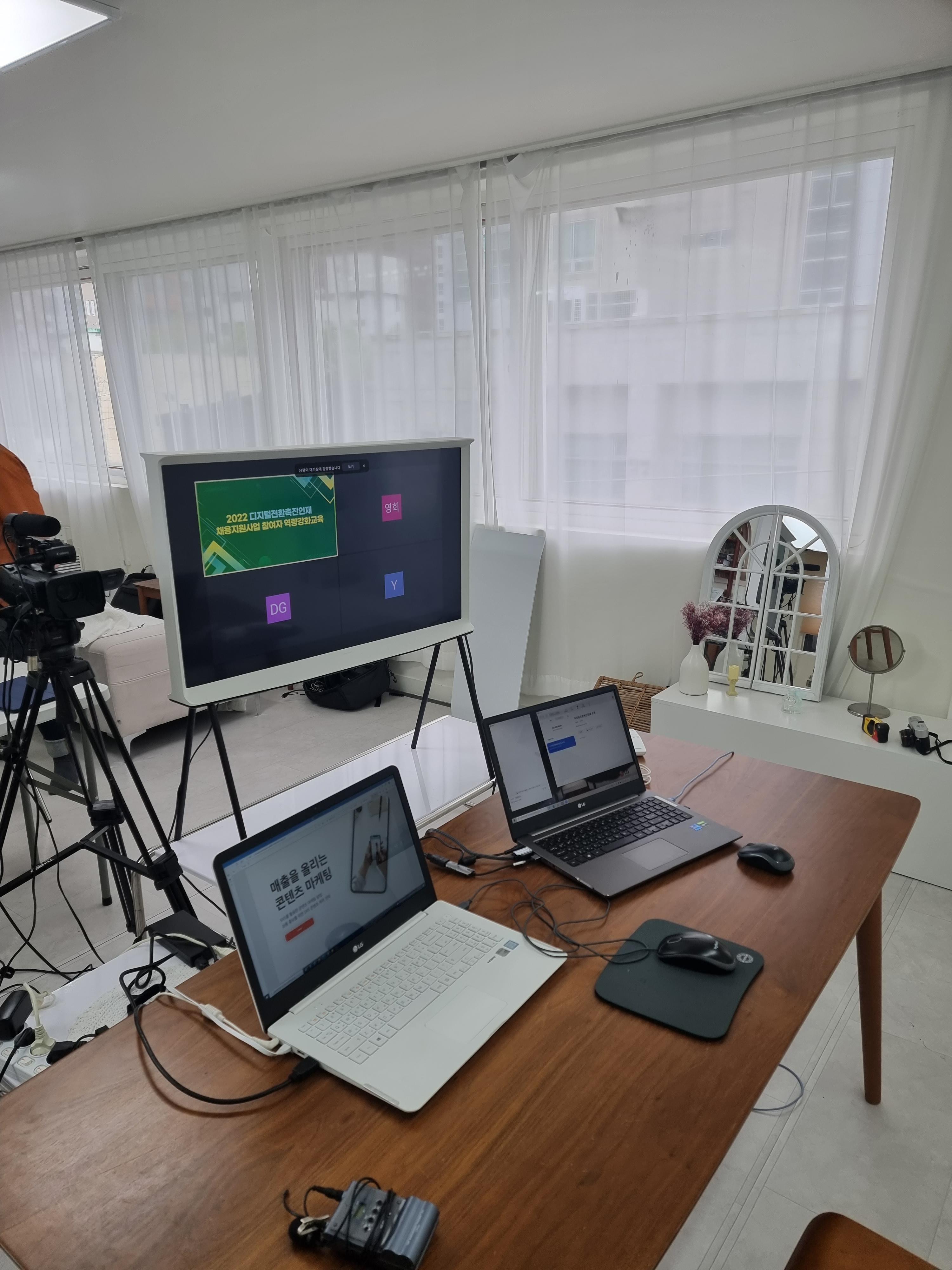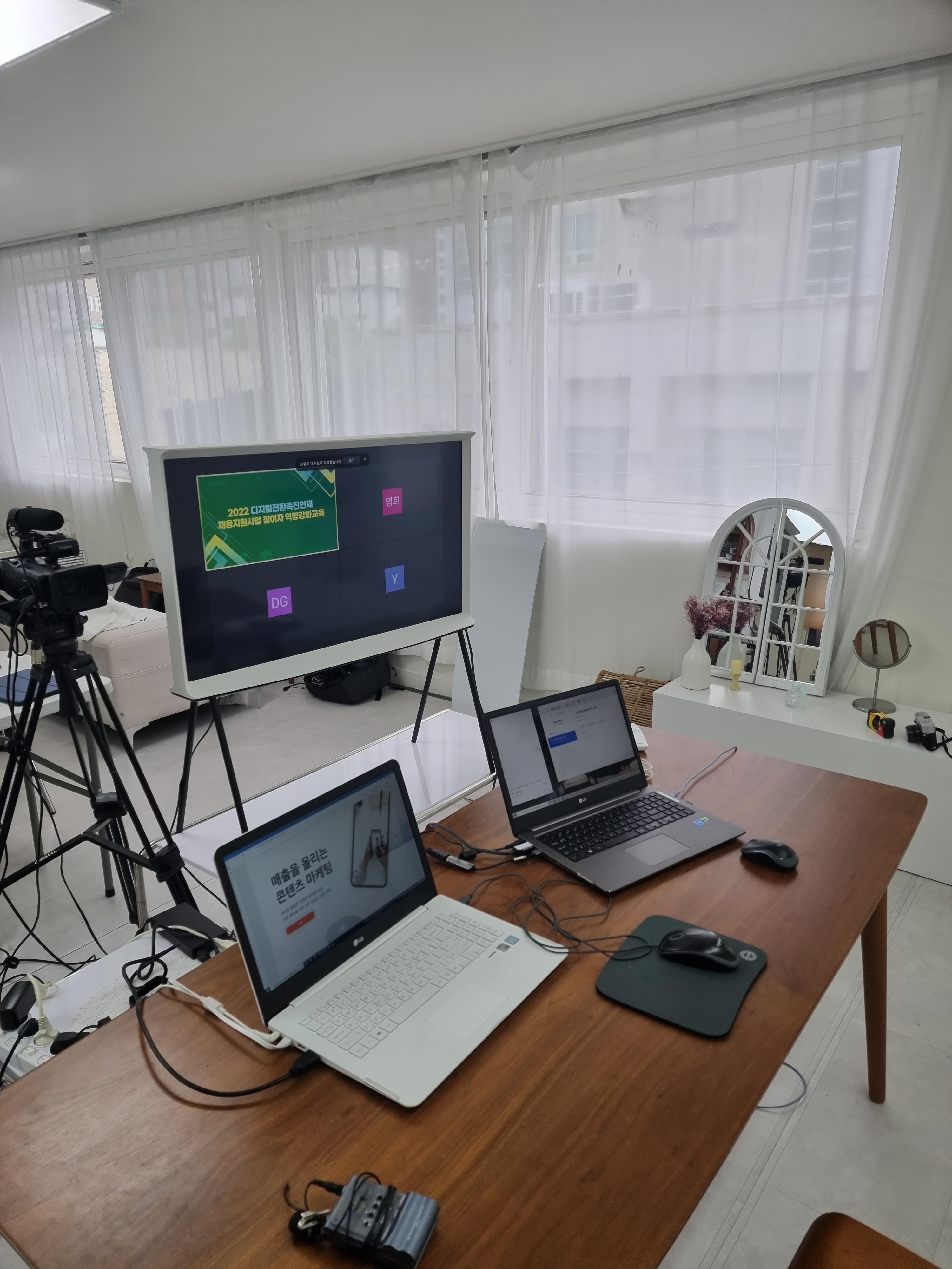 디지털 전환 전문인력 SNS 마케팅 과정에서 강의를 진행하였습니다. 오전 10시부터 진행된 강의였고 장소는 대구의 한 스튜디오에서 셋팅된 상태로 진행하게 되었습니다.