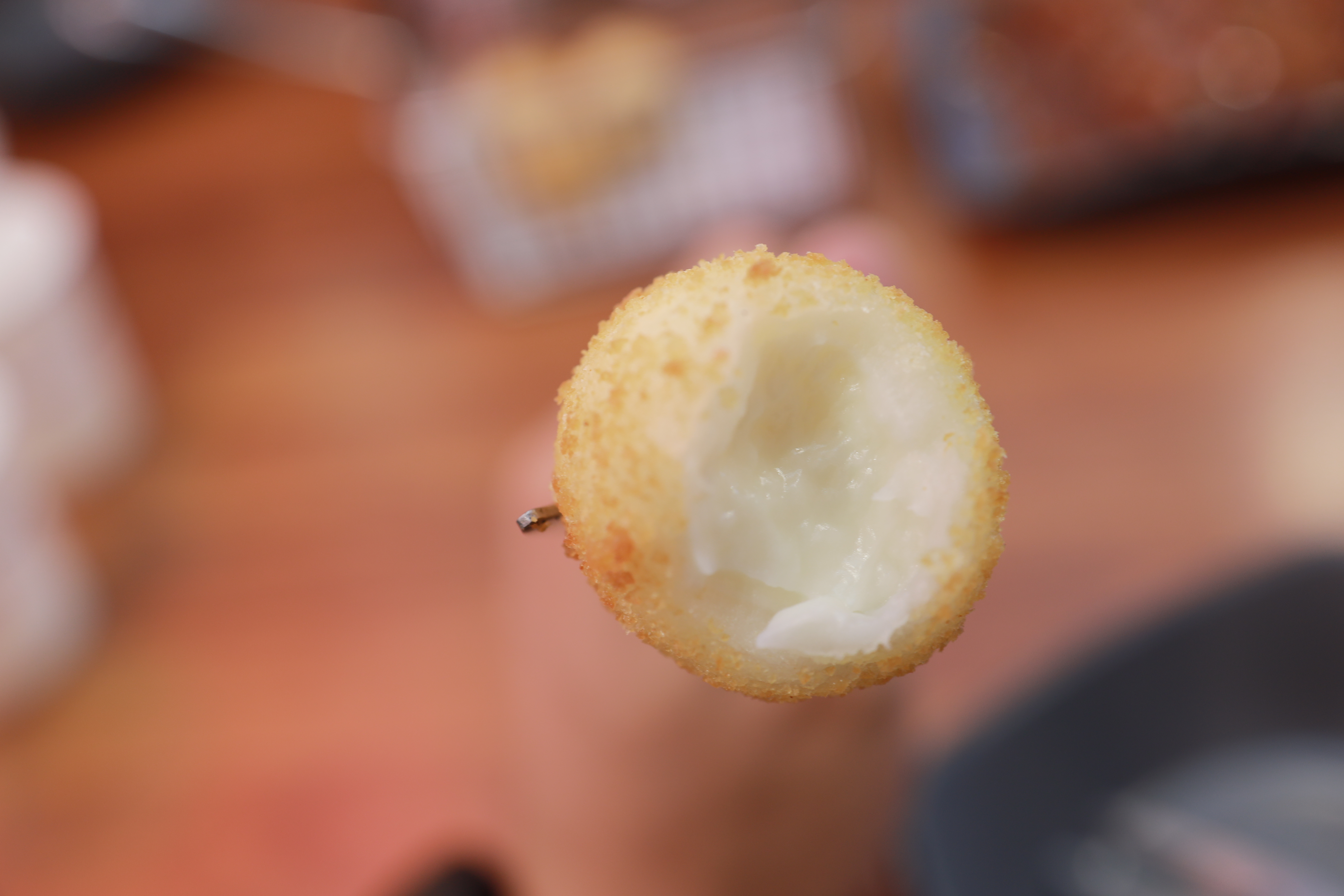 크림치즈볼이에요. 치즈볼은 어떤 메뉴에도 잘 어울리는데, 경북도청 닭꼬치애꼬치다 크림치즈볼은 가성비도 좋고 바로 조리되어 나와서 넘 맛있게 먹은 메뉴였어요.