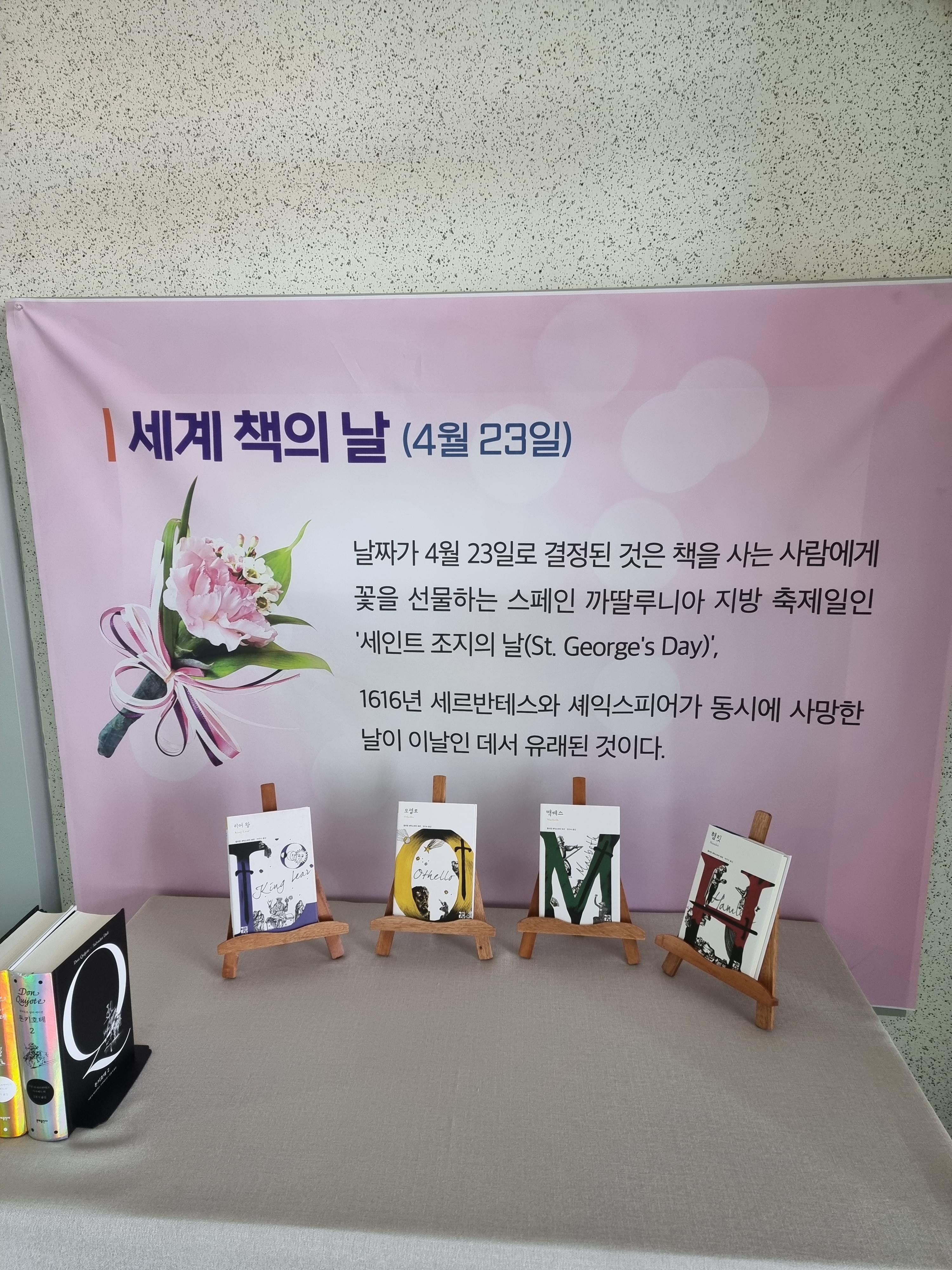 4월 23일이 세계 책의 날이라고 하네요. 날짜가 4월 23일로 결정된 것은 책을 사는 사람에게 꽃을 선물하는 스페인 까딸루니아 지방 축제일인 세인트 조지의 날에서 유래했다고 합니다.
