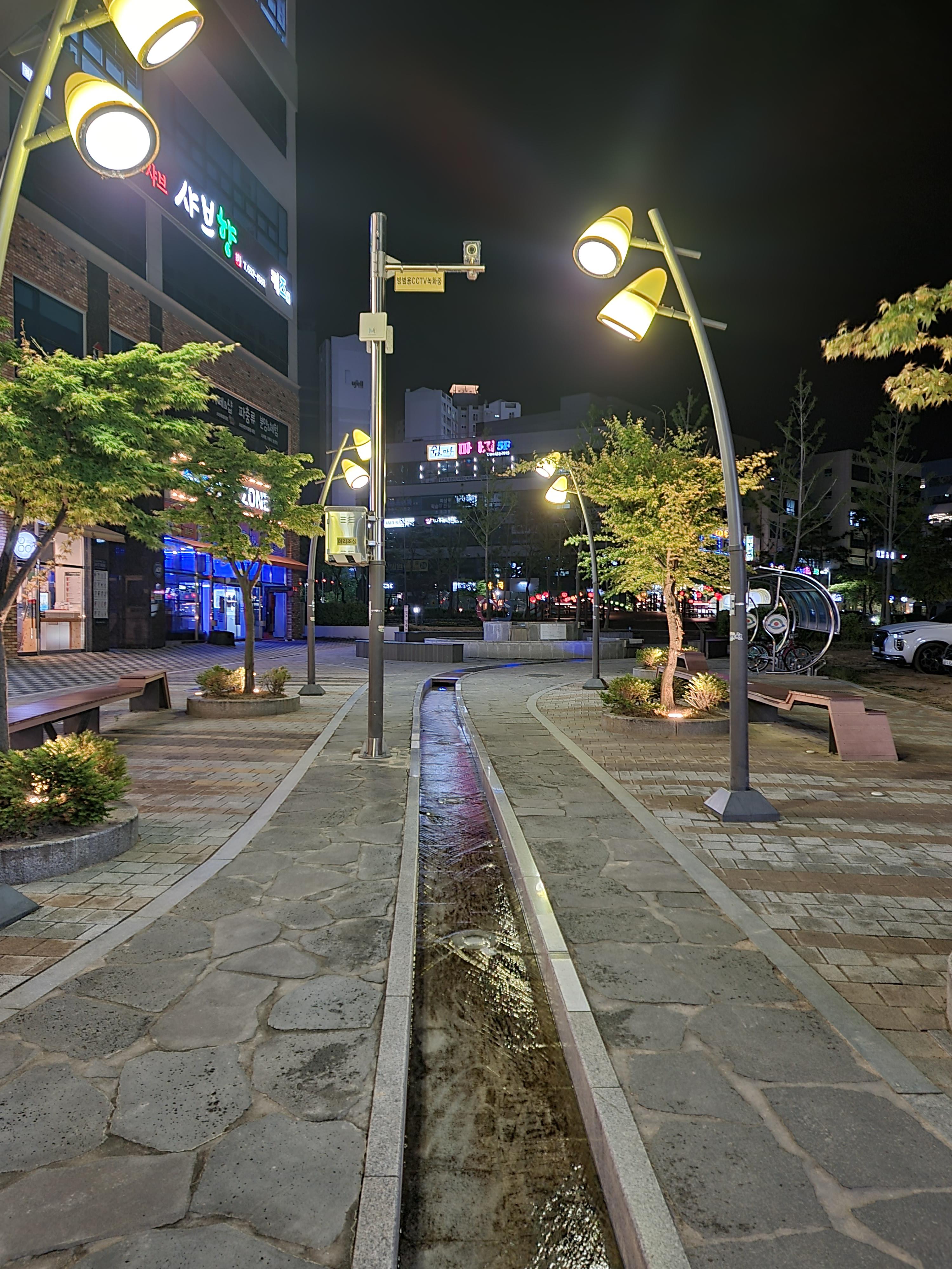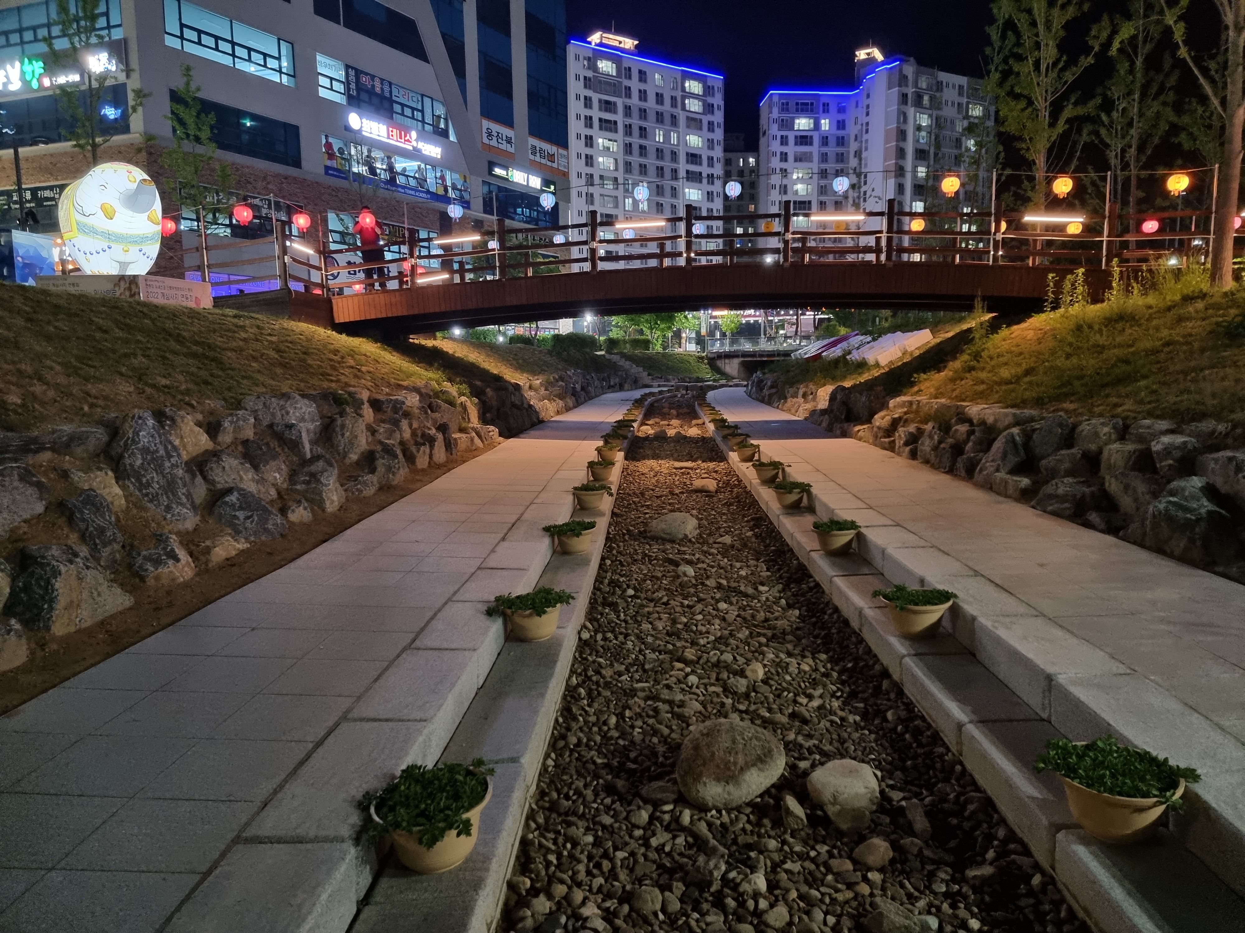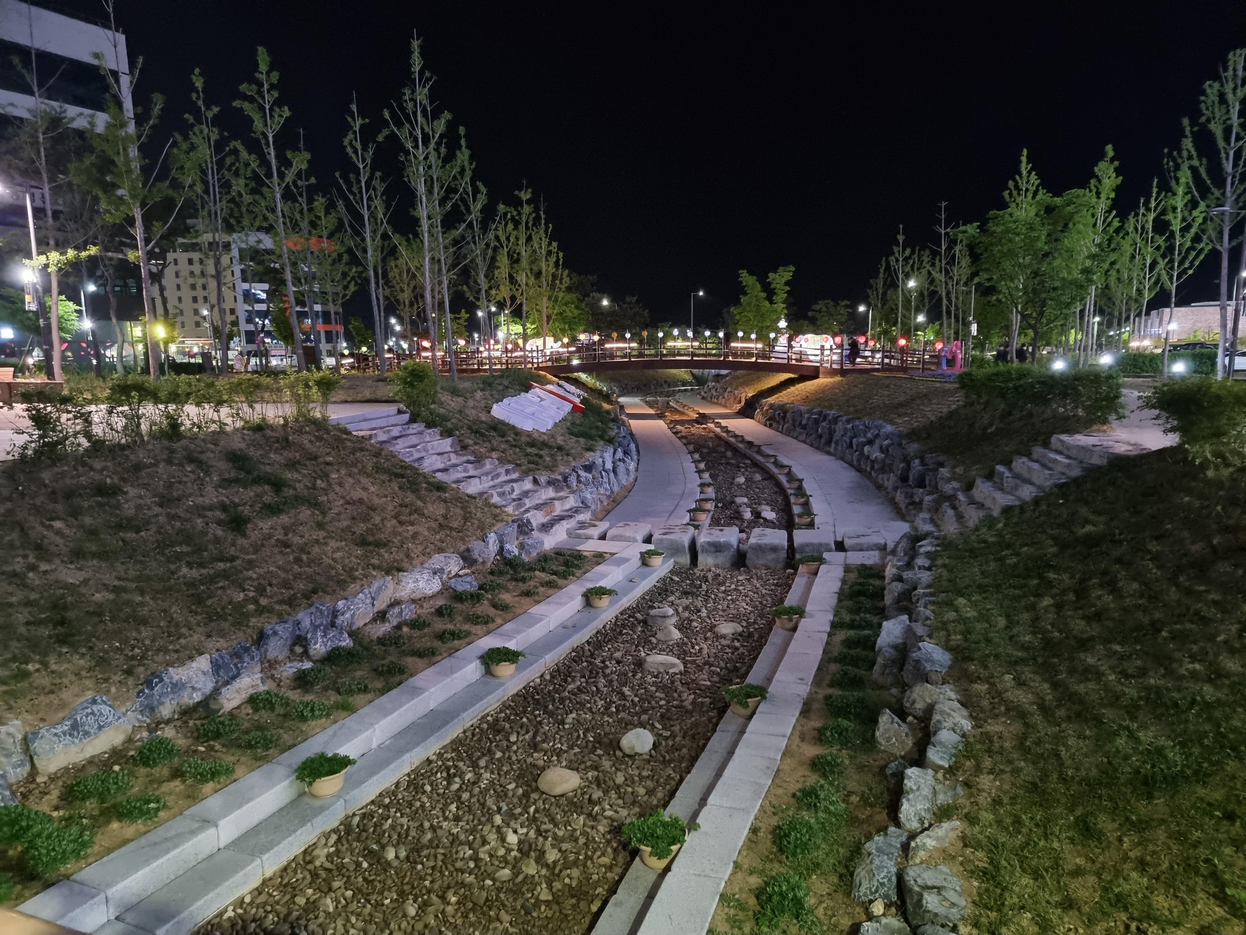 경북도청신도시 실개천의 경우 예전에는 야간 조명이 켜두었었는데 이 날은 어쩐일인지 조명은 켜지지 않았습니다.