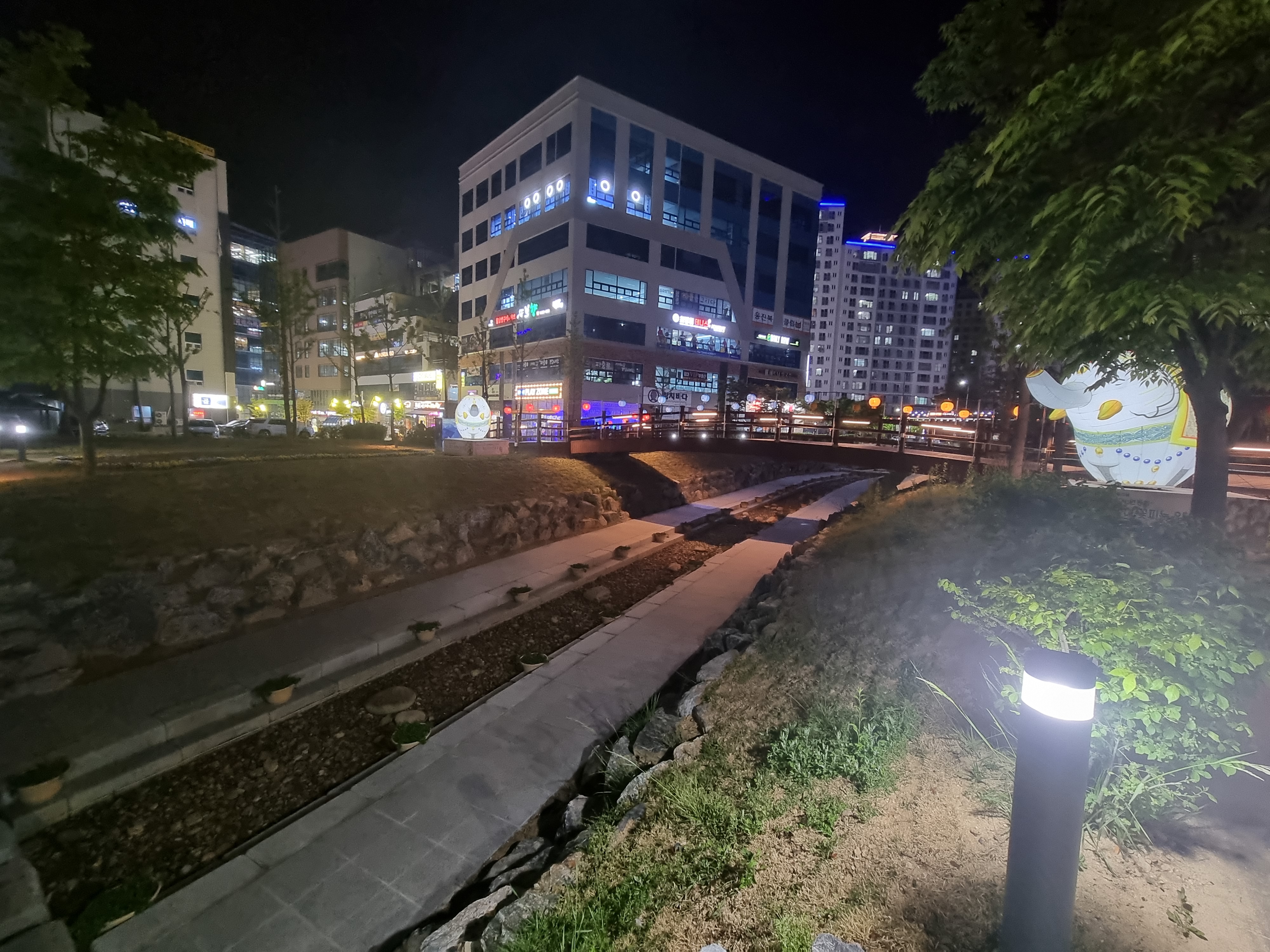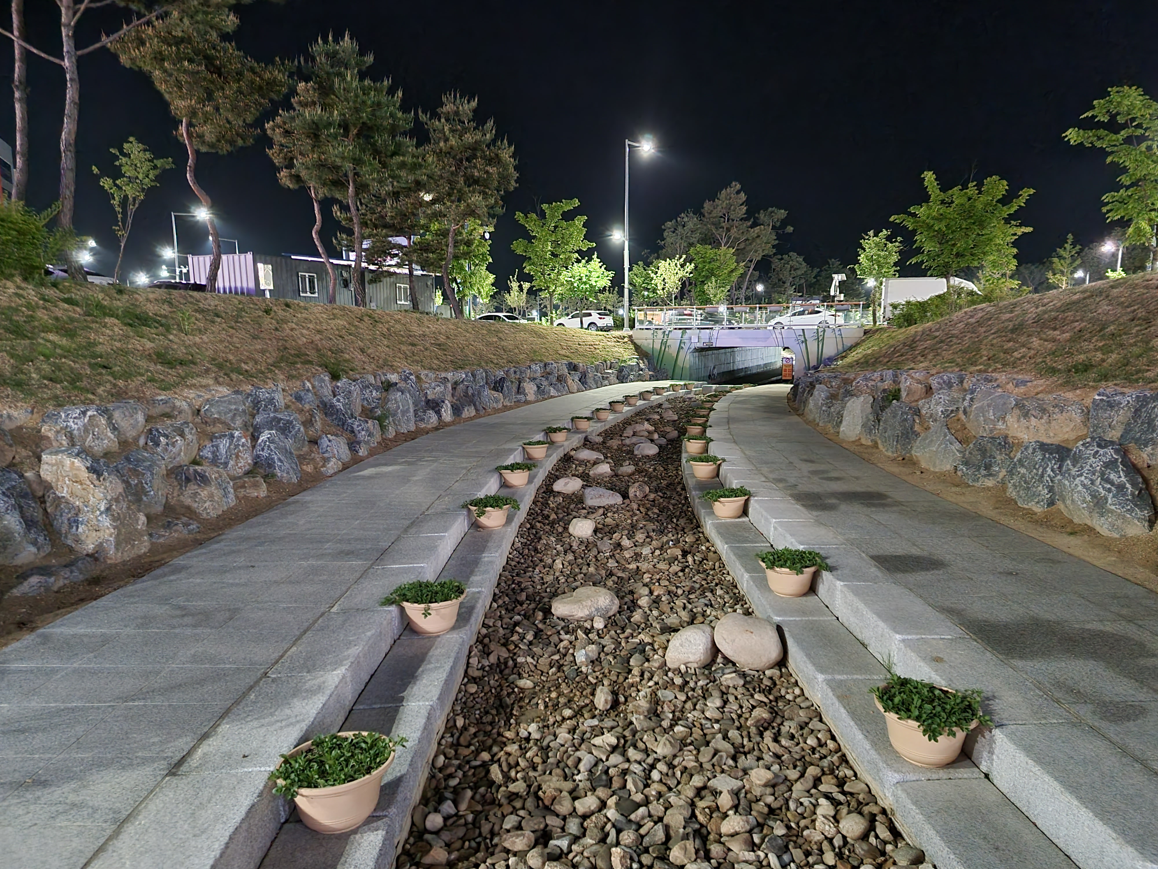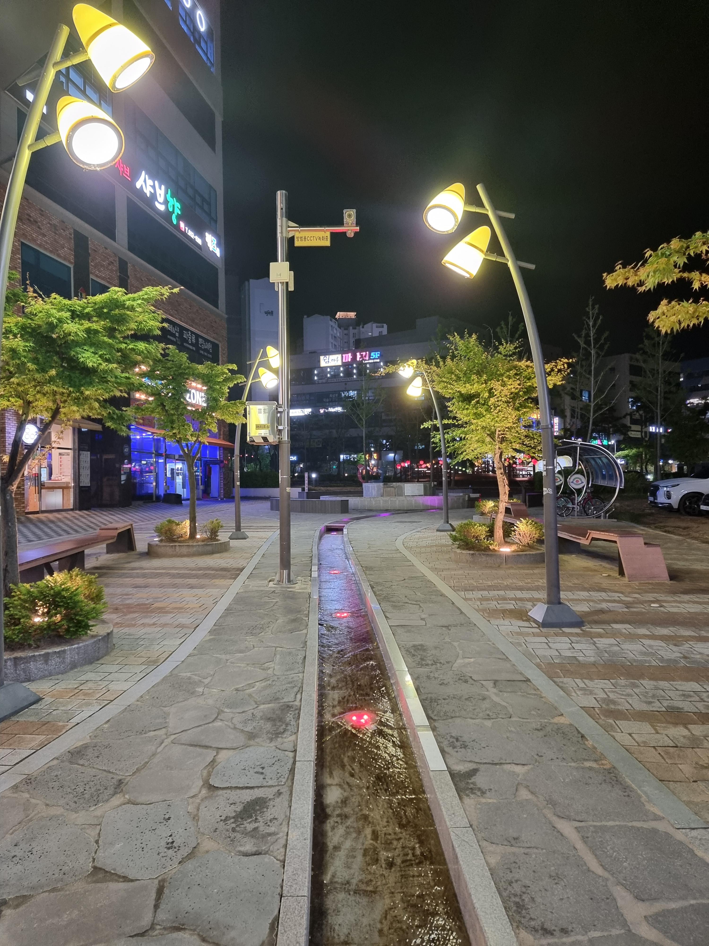 경북도청신도시 실개천의 경우 예전에는 야간 조명이 켜두었었는데 이 날은 어쩐일인지 조명은 켜지지 않았습니다.