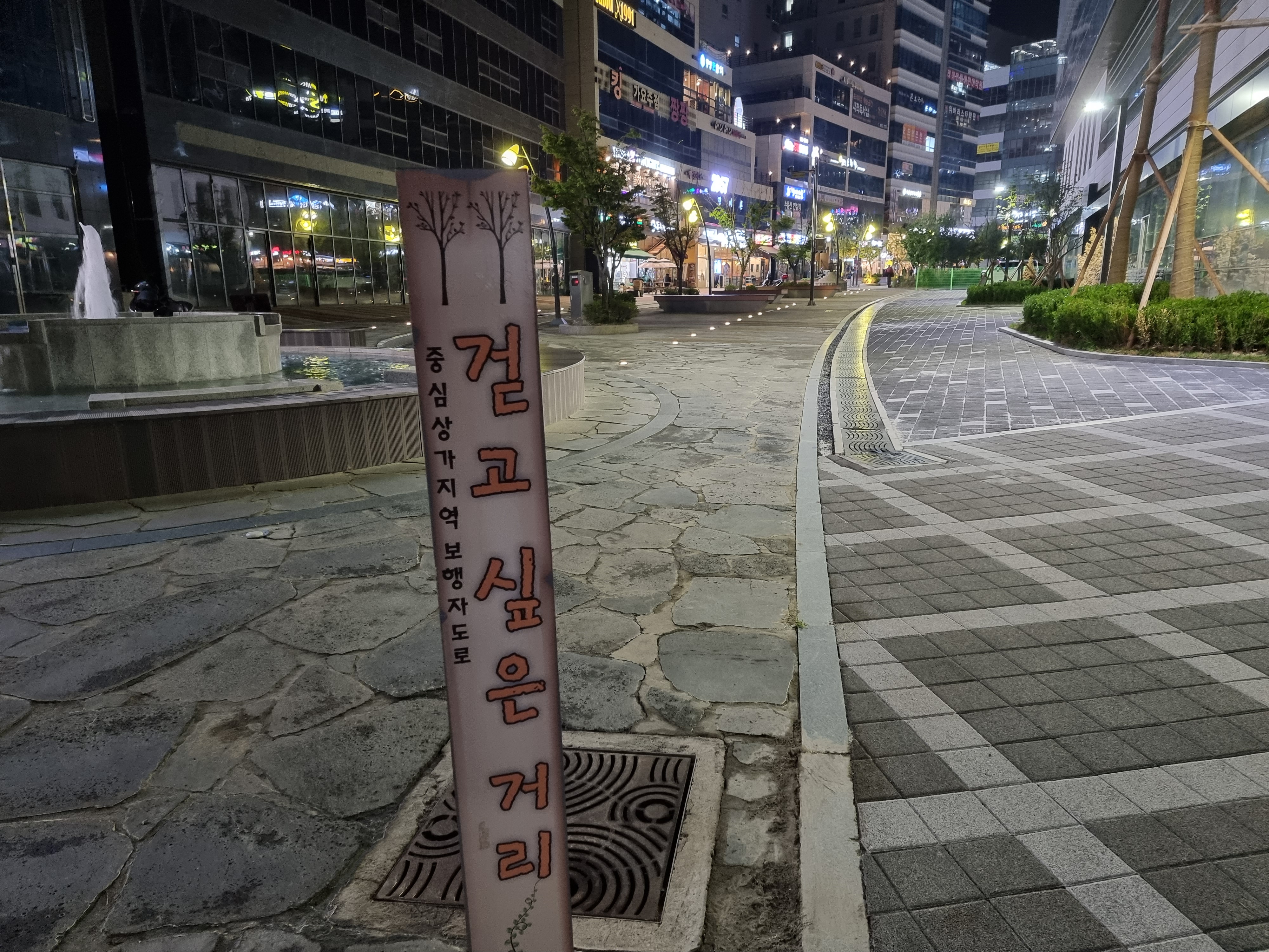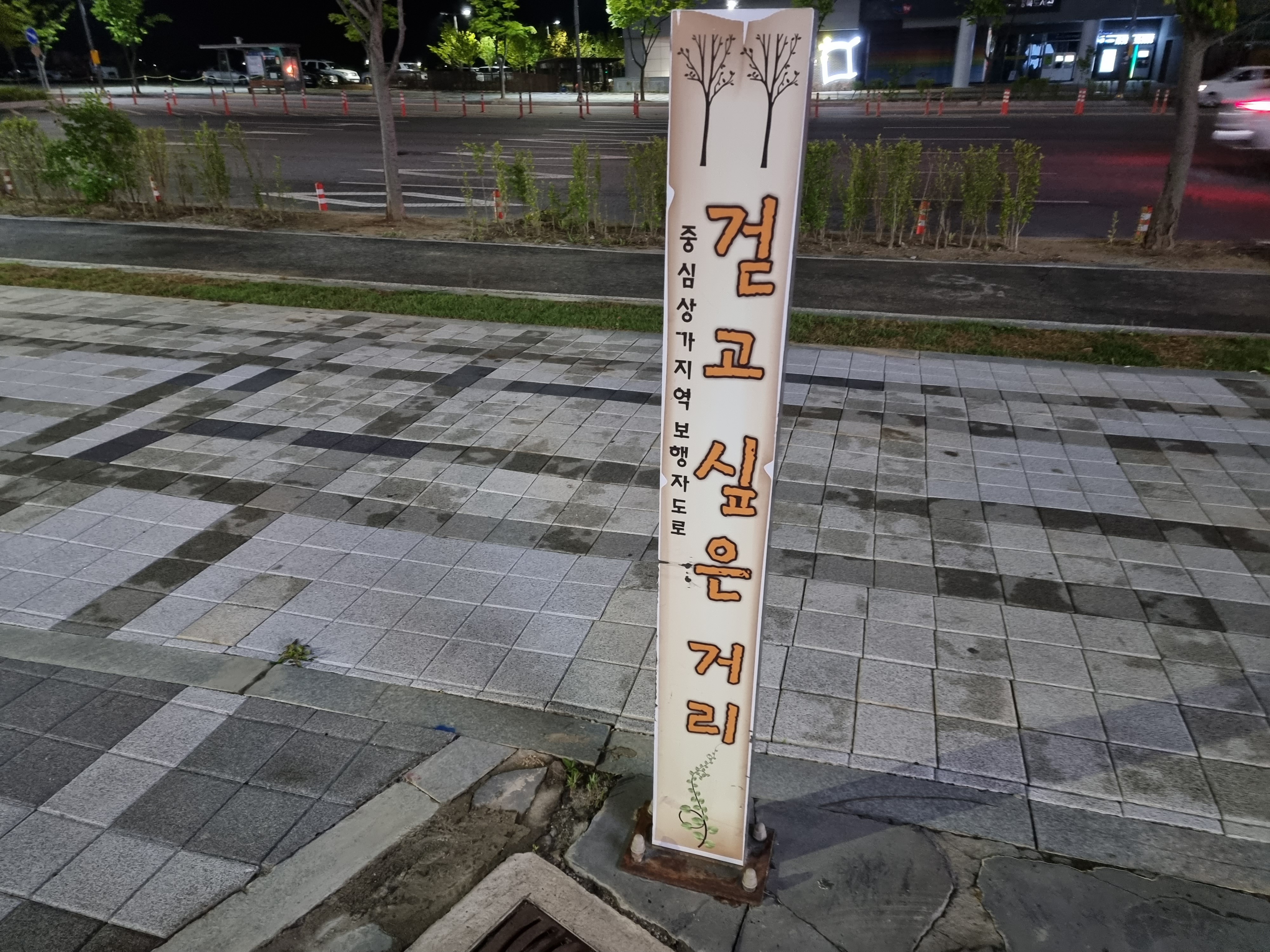 걷고 싶은 길, 걷고 싶은 거리 입구쪽에는 걷고 싶은 거리라고 적힌 푯말을 볼 수 있습니다. 예천지역 경북도청신도시 중심상가지역 보행자 도로이며 중심상가지역이라서 대부분의 상가들이 여기에 몰려 있습니다.