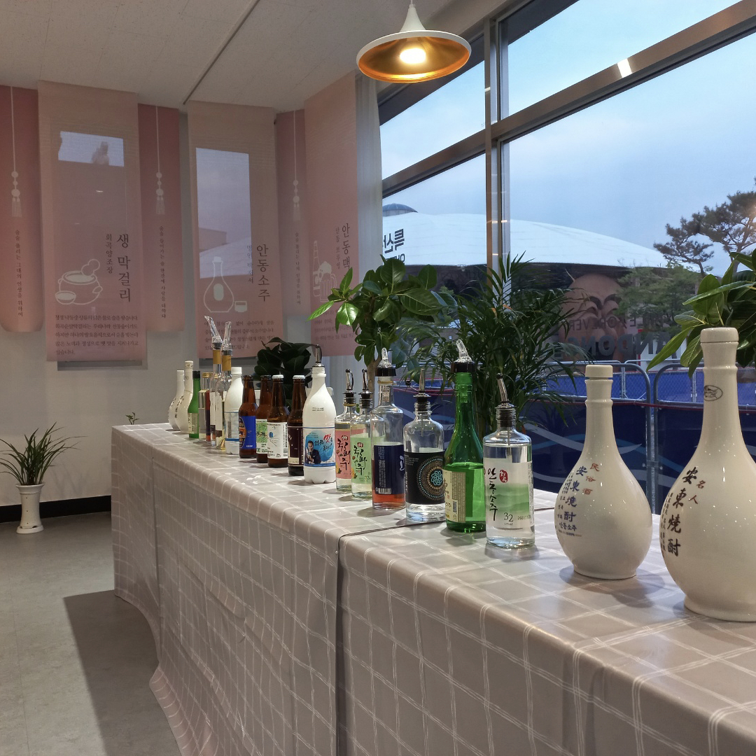 안동소주, 예미주, 국화주, 청포도 와인, 안동맥주 등이 준비돼 있고 전통주 칵테일 시음해볼 수도 있어요~~