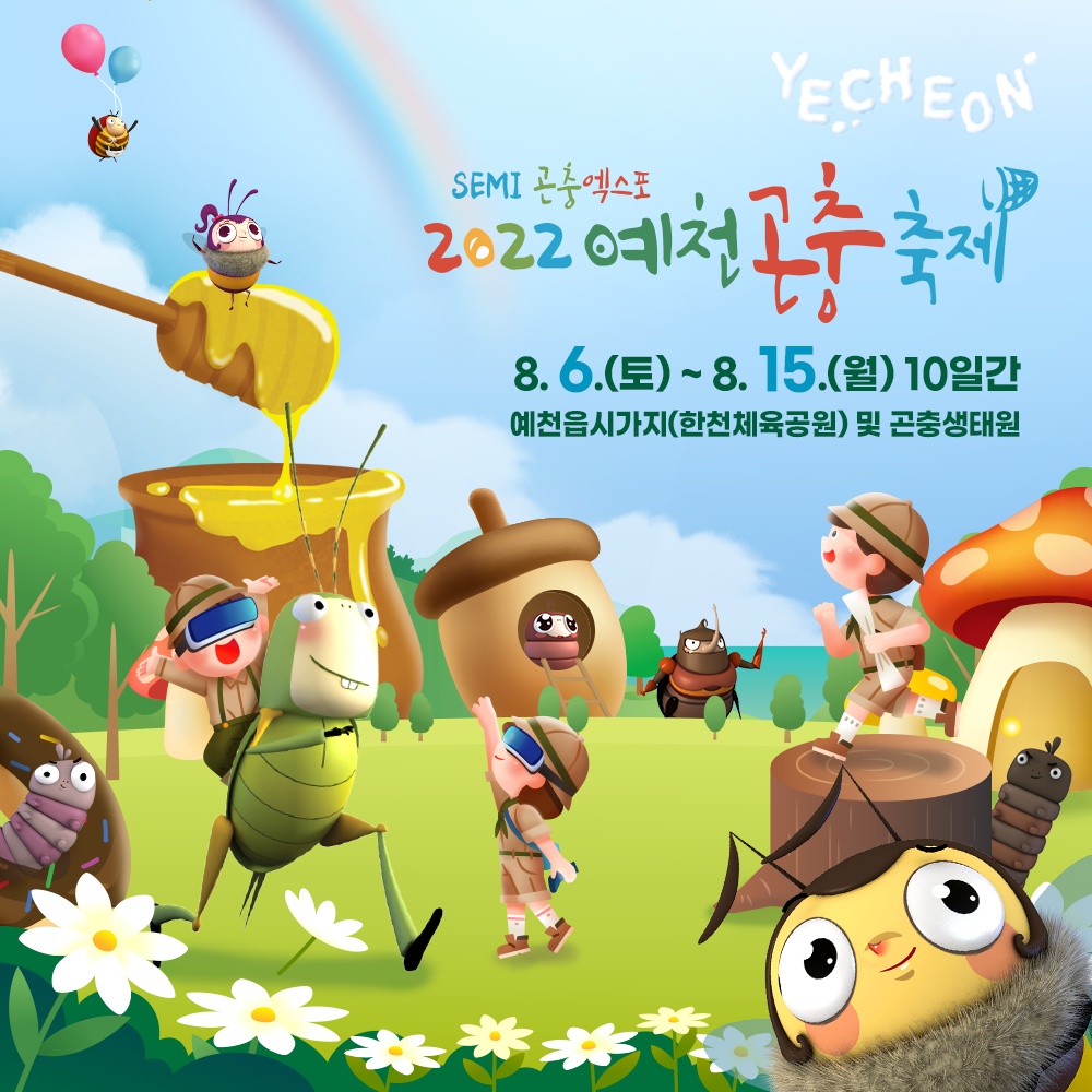 2022년 8월 6일 토요일부터 8월 15일 월요일까지 10일간 예천읍시가지와 예천 곤충생태원에서 2022 예천곤충축제가 열립니다. 행사장소는 예천곤충생태원 한천체육공원 및 예천읍 시가지 일대에서 열립니다.