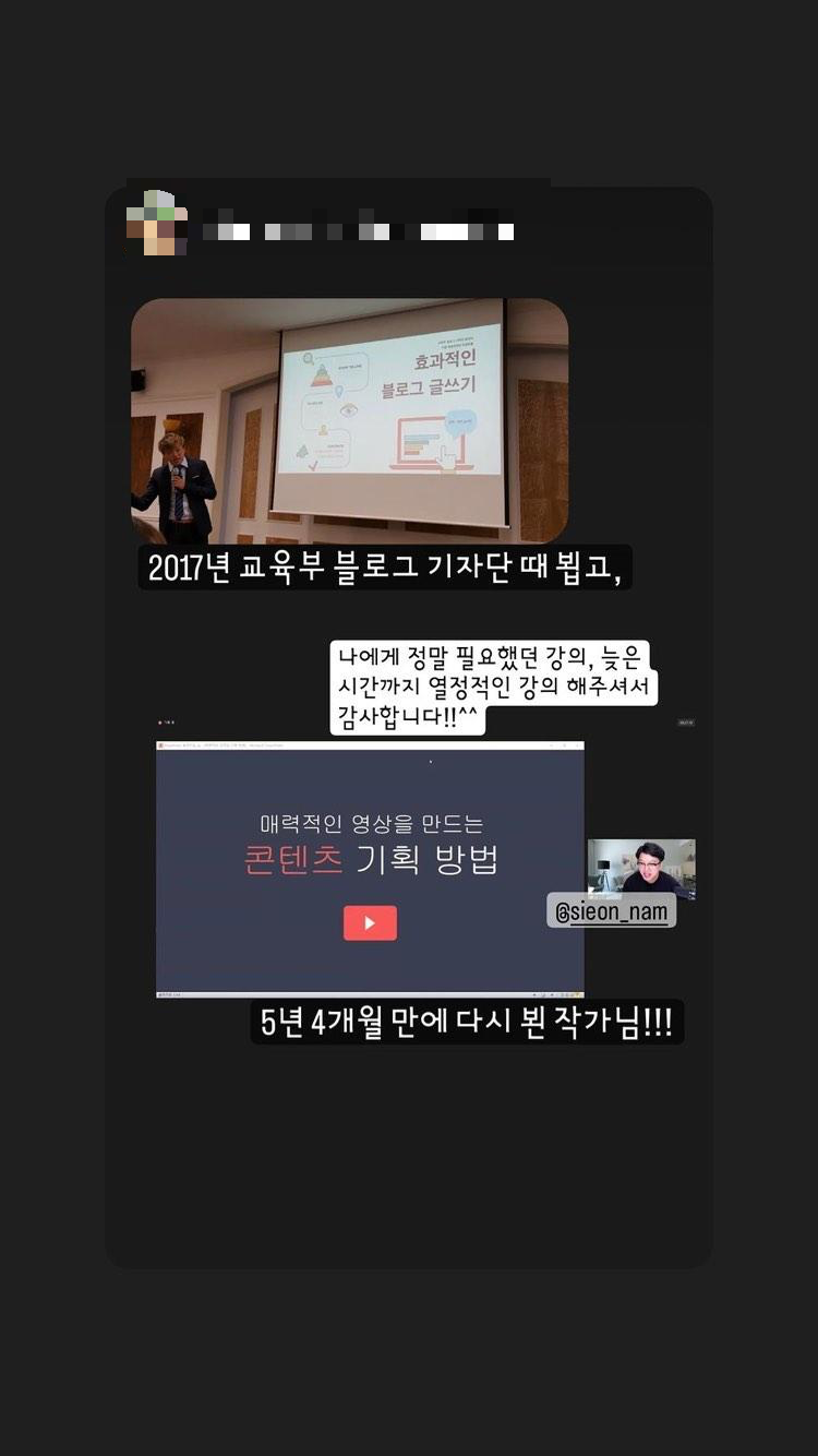 예전 교육부 서포터즈 강의 자리에서 만났던 분과 인스타그램에서 계속 소통 중인데 이번에도 우연하게 그분께서 서포터즈 활동을 하고 계셨어서 이번에도 다시 만나뵙게 되어 너무 반가웠답니다. 인스타그램 스토리에도 올려주셨어요 ㅎㅎ