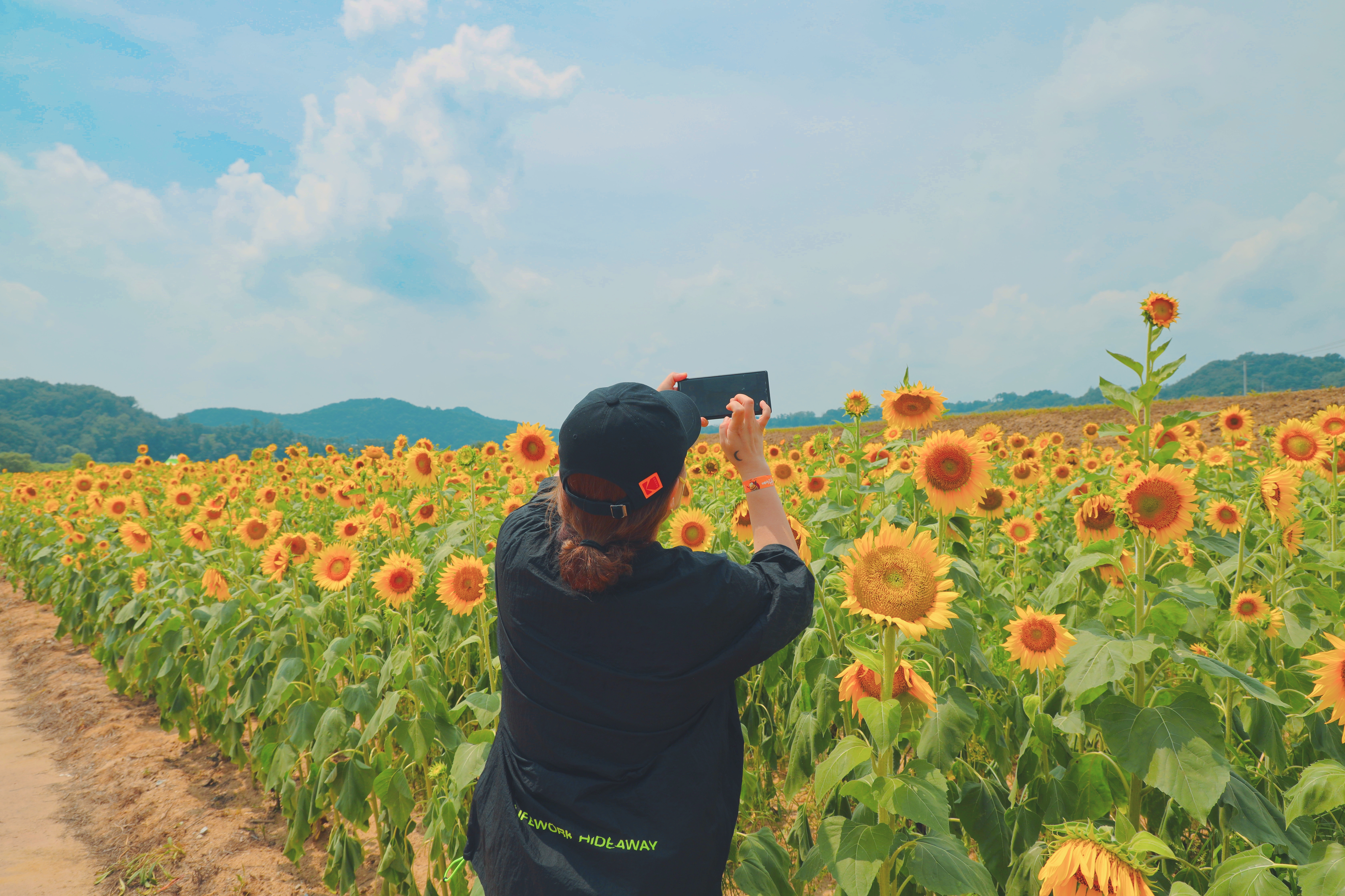 경상북도 예천에 새로 조성된 해바라기 경관단지를 다녀왔습니다. 이 곳은 올해 처음으로 일반에 공개된 곳으로 최근에 해바라기 등을 식재하여 조성한 공간이에요. 올해 갓 태어난 해바라기 단지라서 아직 사람들이 잘 모르는 숨은 명소입니다!