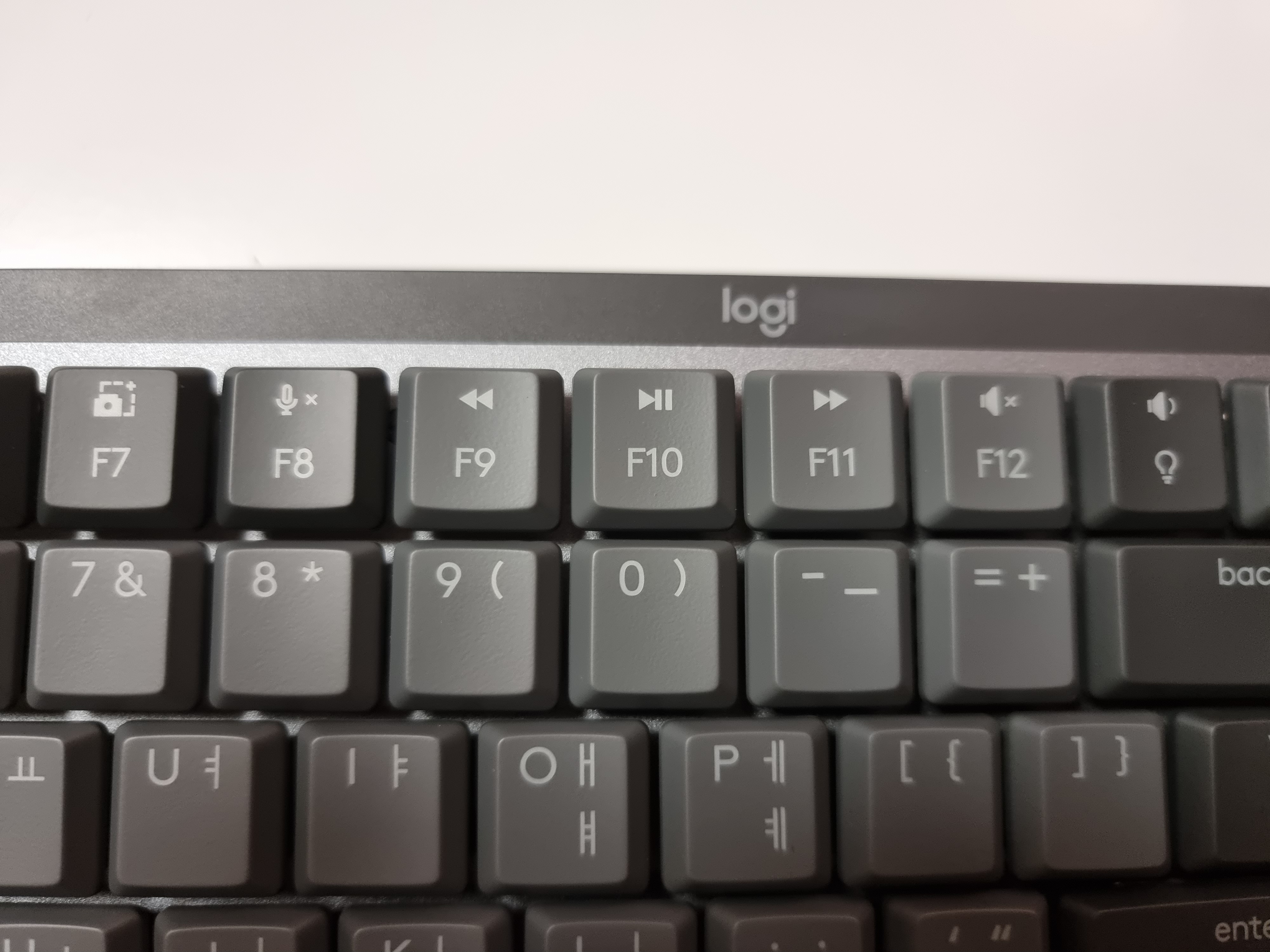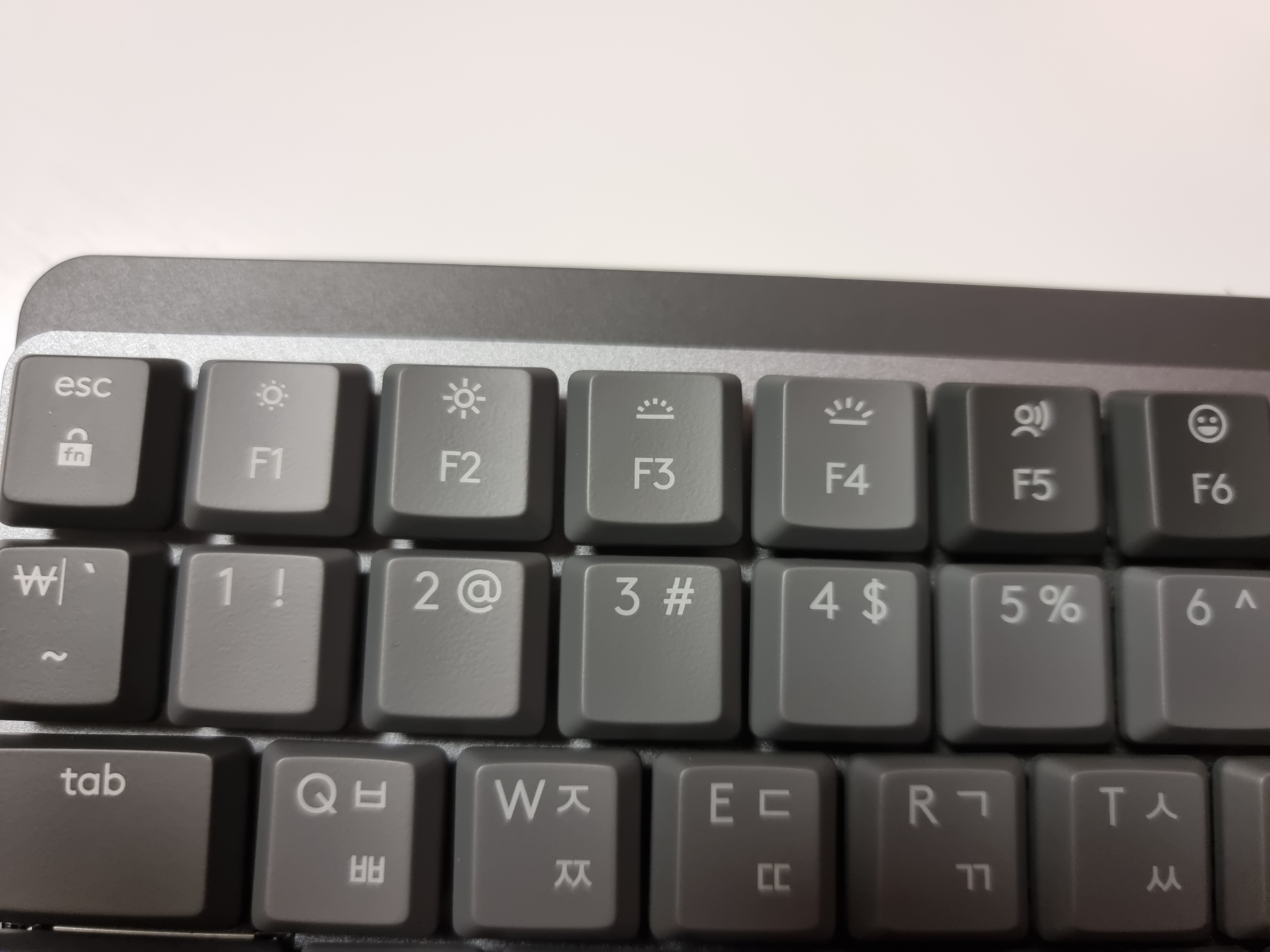 MX KEYS와 비교했을 때, 펑션키들도 전체적으로 크기가 줄어들고 배치가 왼쪽으로 치우쳐진 모습입니다. 기존에 적응되었던 F3번의 위치가 지금 로지텍 MX MECHANICAL 키보드에서는 F4번쯤 됩니다.