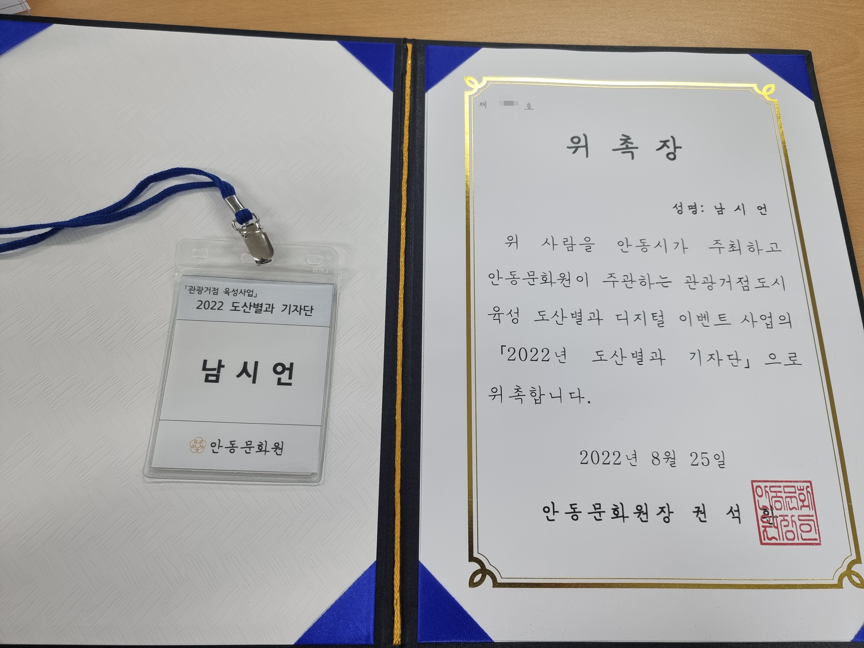 기자단 카드는 카드형으로 주면 더 좋았을 것 같아요. 아무튼 위촉장을 받고 9월부터 아마 본격적으로 활동이 시작이 될 것 같습니다. 이 블로그에는 아니지만, 도산별과 네이버 블로그가 만들어져 있으니 이곳에서 저 뿐만 아니라 다른 훌륭한 기자단분들의 콘텐츠도 많이 보실 수 있을 듯 합니다.