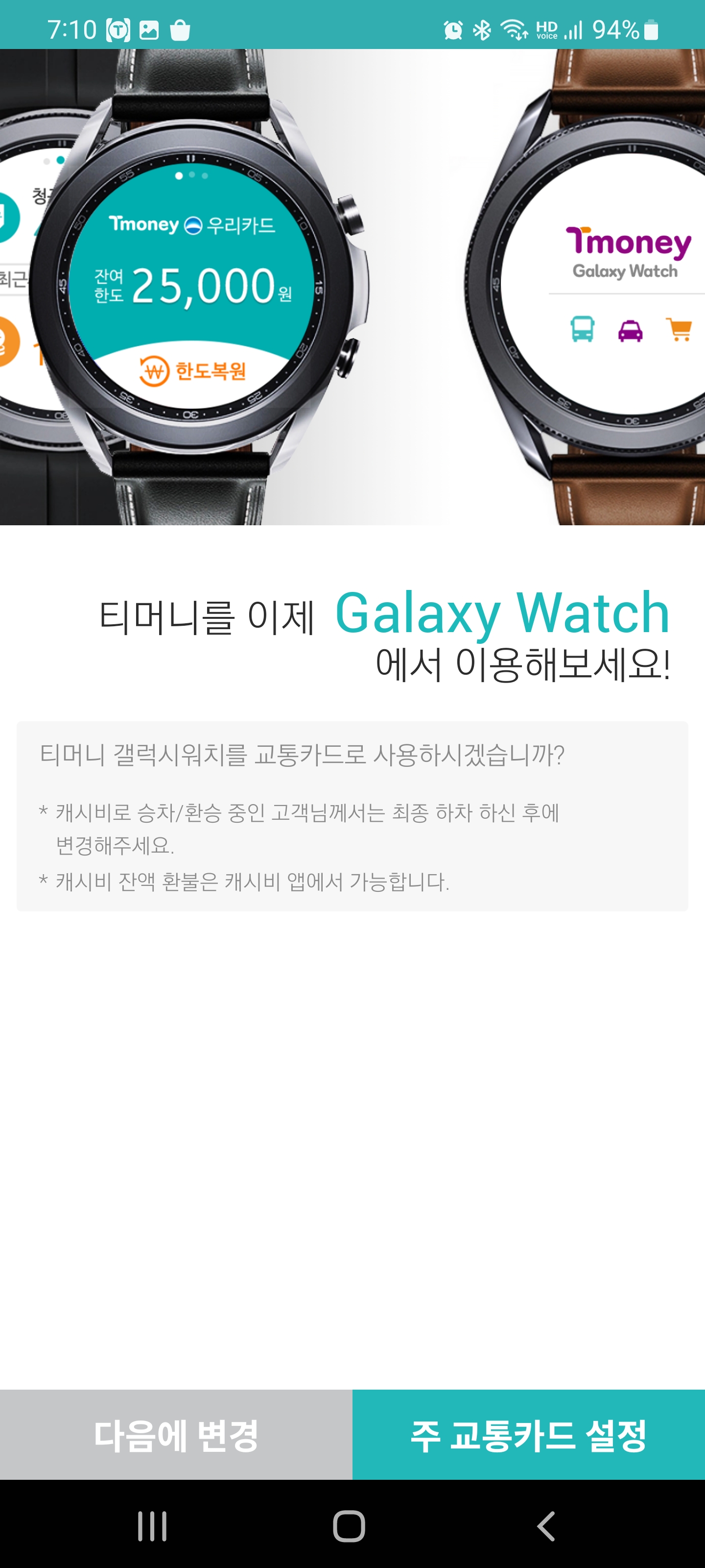 갤럭시워치 티머니 설정방법 (액티브2)