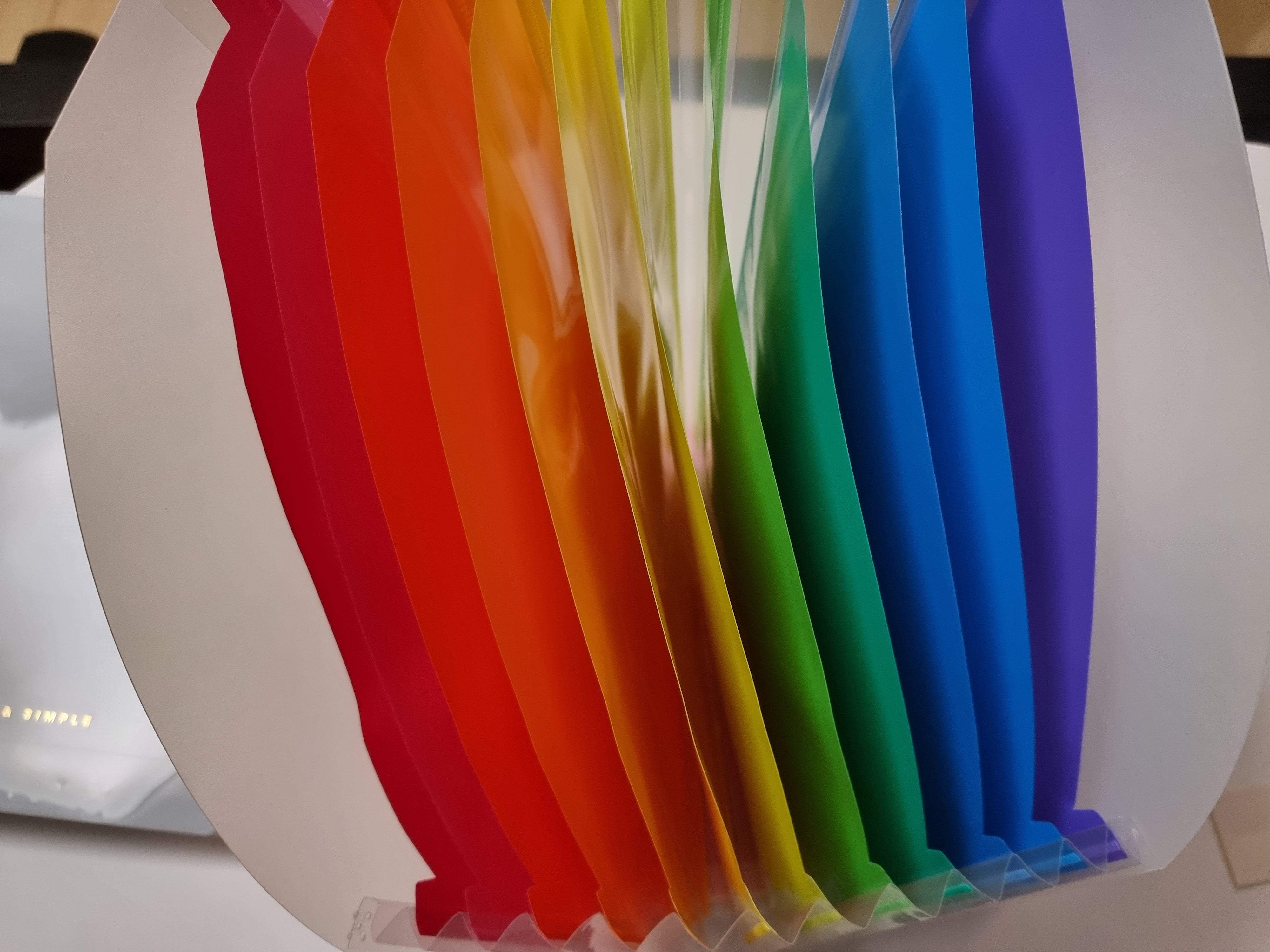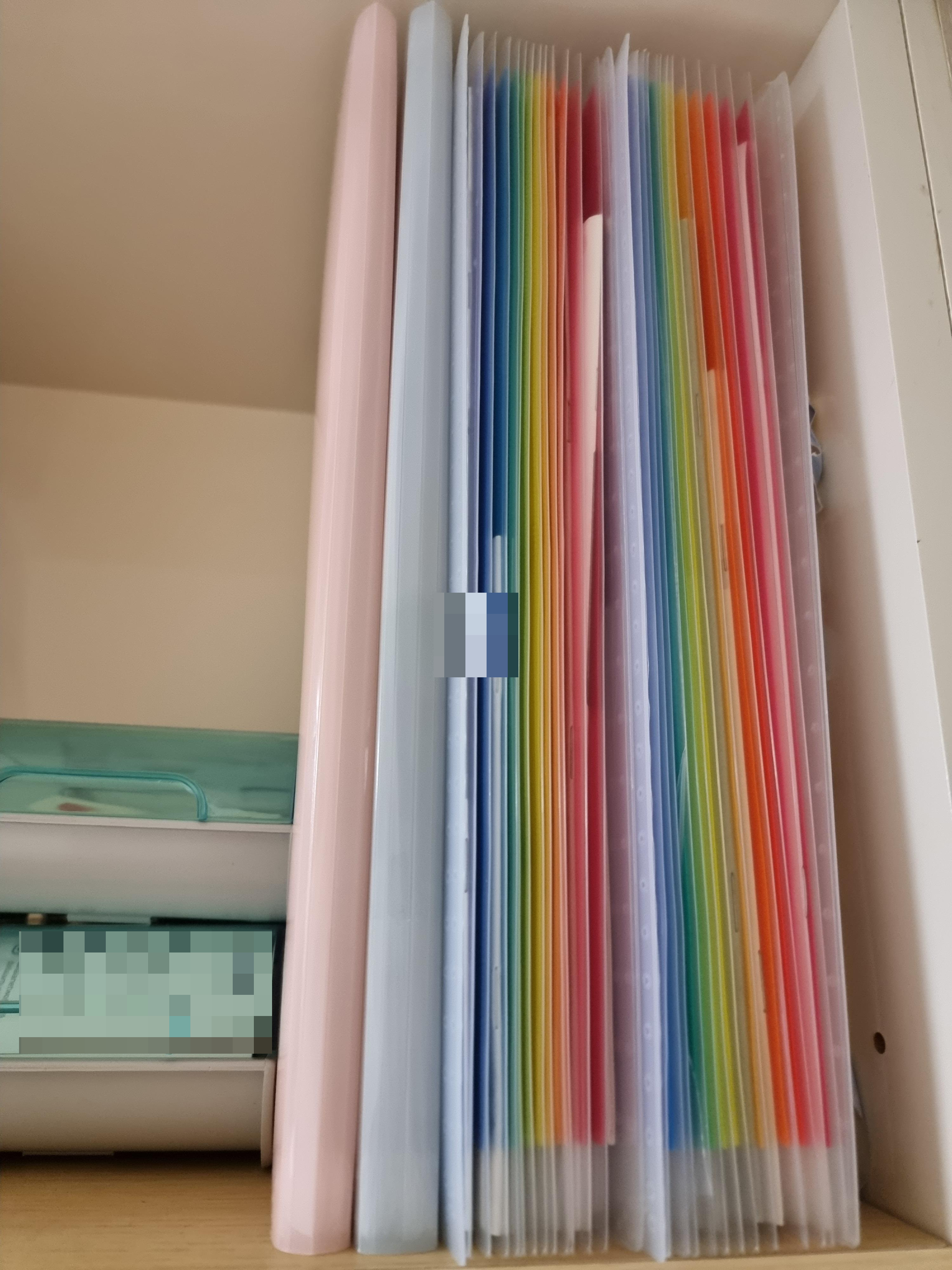 다이소 아코디언 섹션파일 속지는 무지개 색상으로 예쁘게 돼 있습니다. 옆으로 죽~ 펼쳐서 스탠딩처럼 쓸 수도 있습니다.