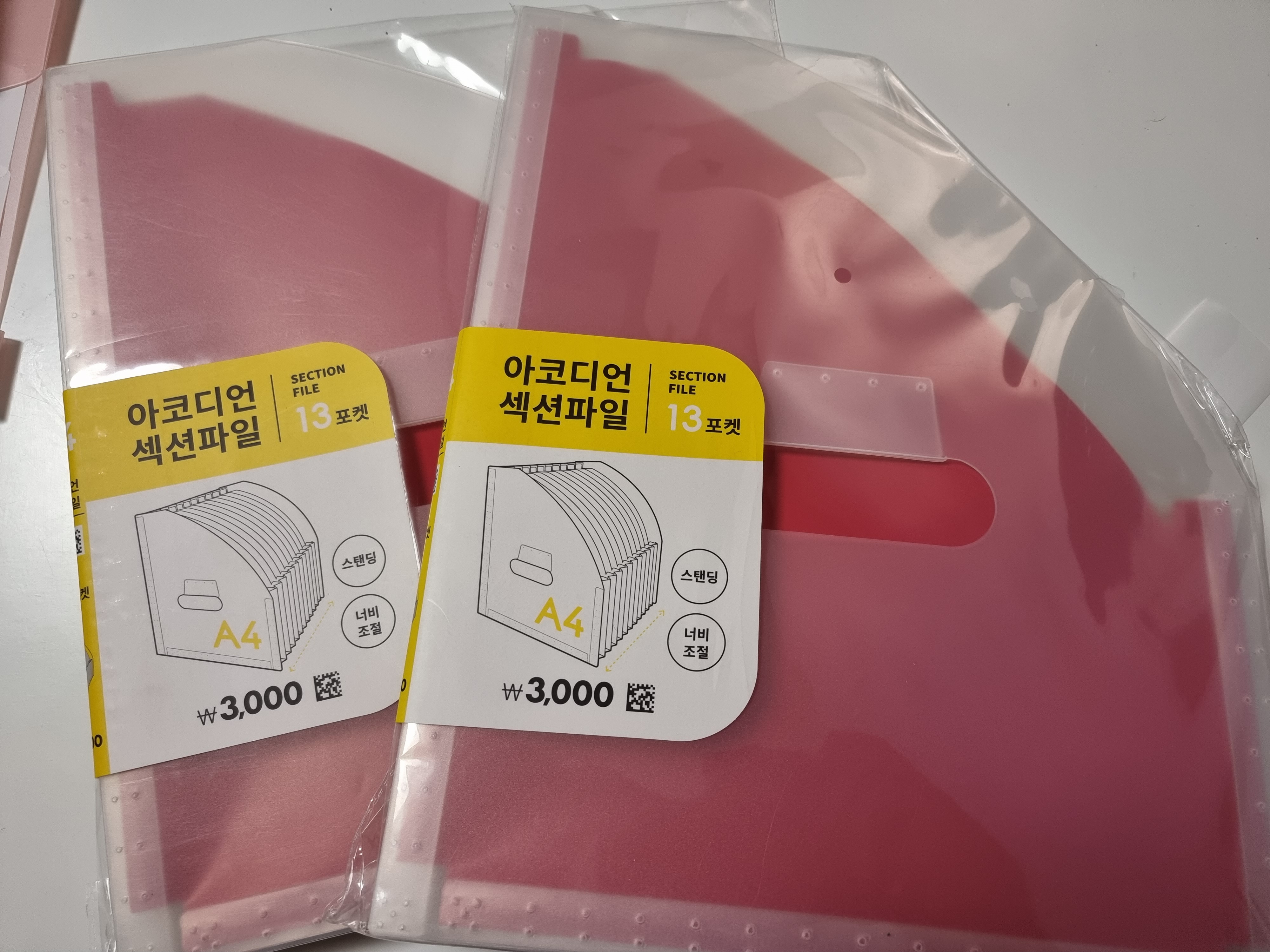 개인적으로는 아코디언 섹션파일을 더 기대했었고 아코디언 파일에 대한 기대감이 컸었습니다. 그런데 막상 사용을 해보니까 다이소 제품들에서는 저처럼 서류나 설명서 보관 목적이라면 아코디언 파일보다는 인덱스 섹션파일이 좀 더 적절할 것 같습니다. 아코디언 파일은 13포켓에 3천원이라서 1천원당 4포켓 정도 된다고 볼 때, 인덱스 섹션파일이 2천원에 8포켓이라서 가격대는 비슷하거든요.