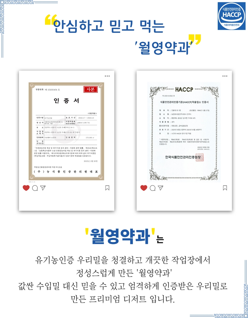 월영약과 100%순수 유기농밀로 만든 건강한 약과 안동마 햄프시드