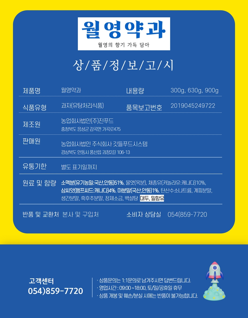 월영약과 100%순수 유기농밀로 만든 건강한 약과 안동마 햄프시드 : 건어물왕-깃들푸드시스템