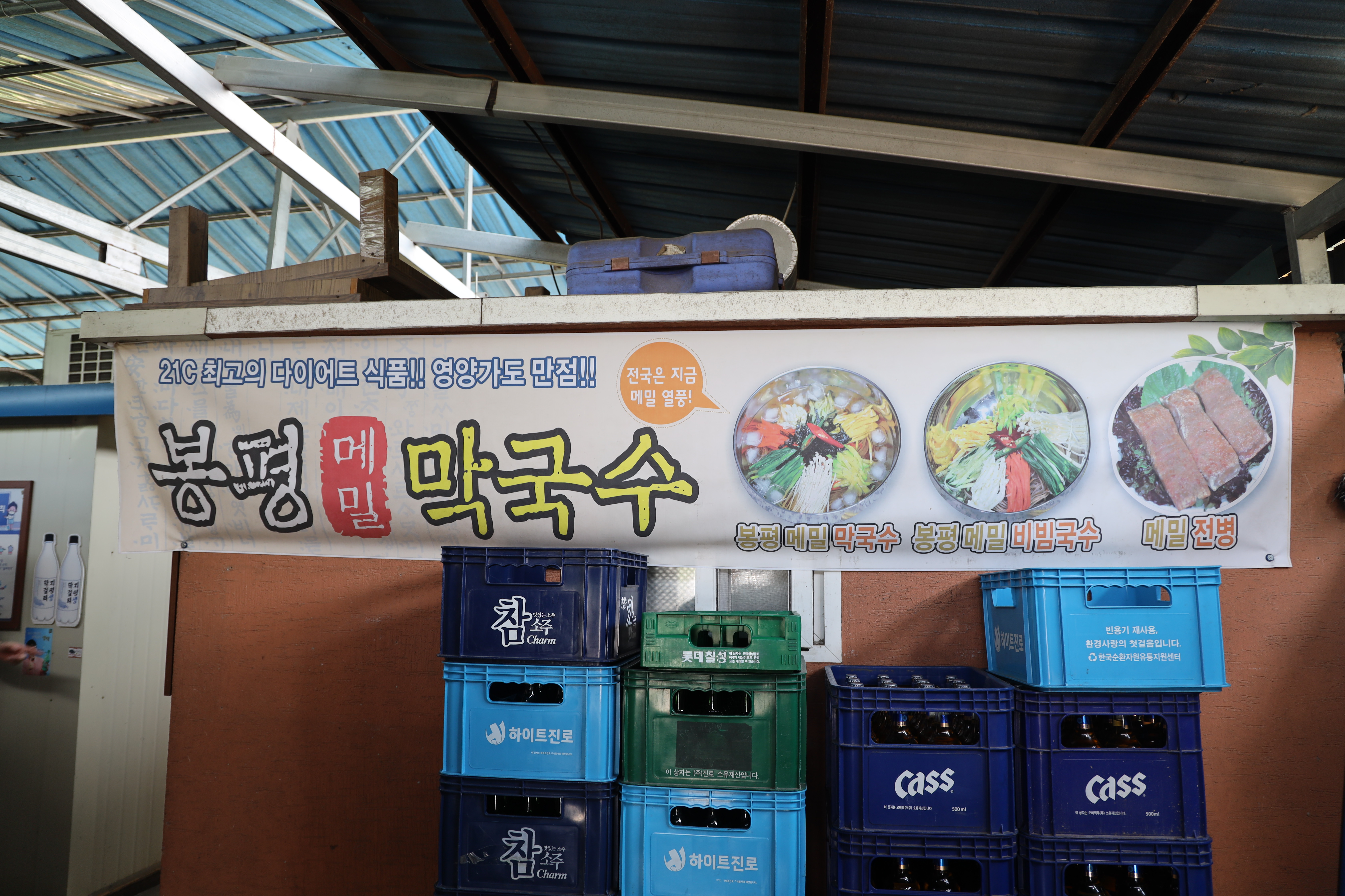 이 가게의 메인메뉴는 봉평메밀막국수입니다. 메밀막국수와 메밀비빔국수, 메밀 전병이 있습니다.