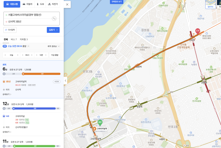 이동에 따라 다르지만, 예를들어 신사역으로 간다고 가정해보면,