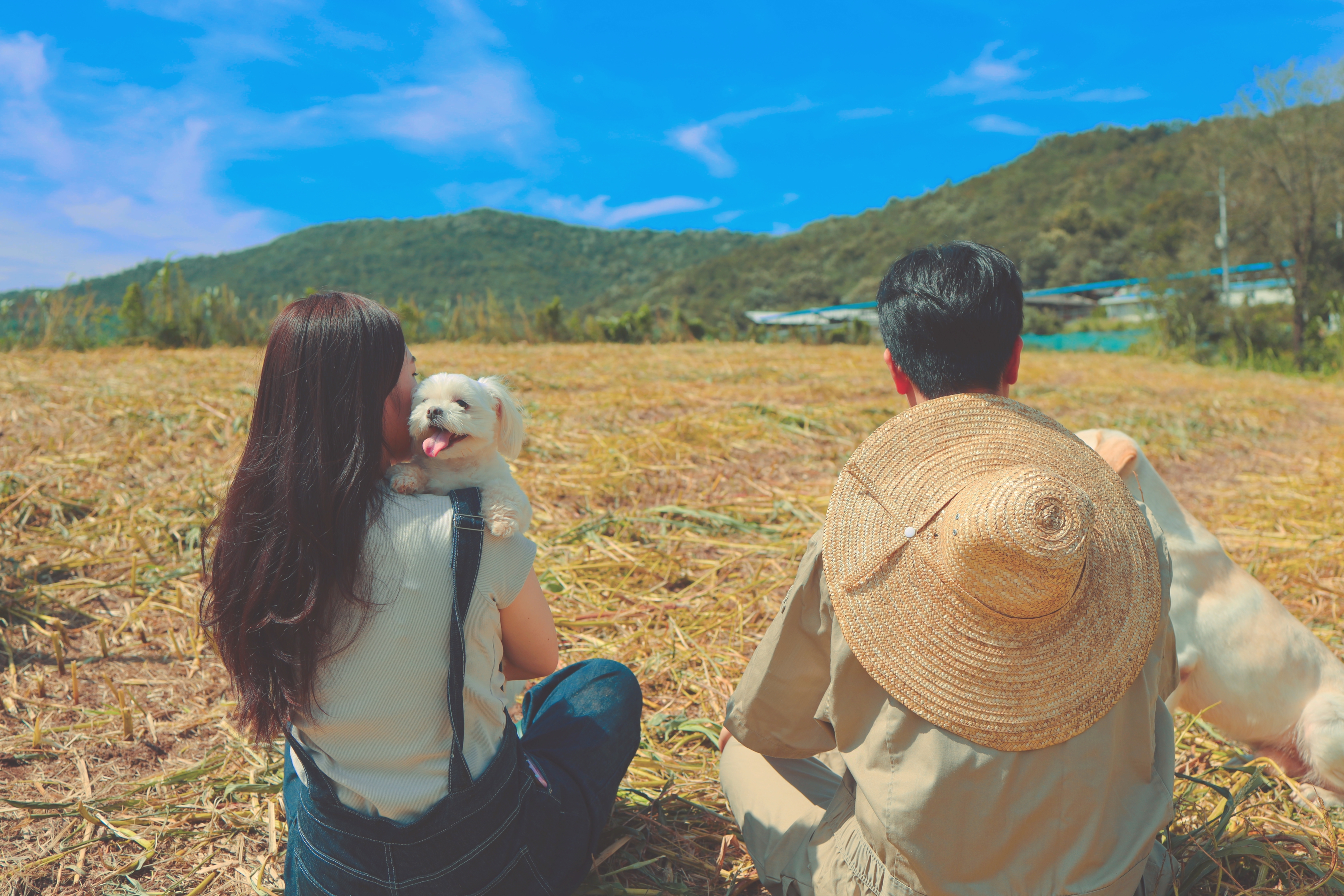 소 키우는 농장에서 강아지들과 견주들과 함께 반려동물 스냅사진을 촬영하였습니다.