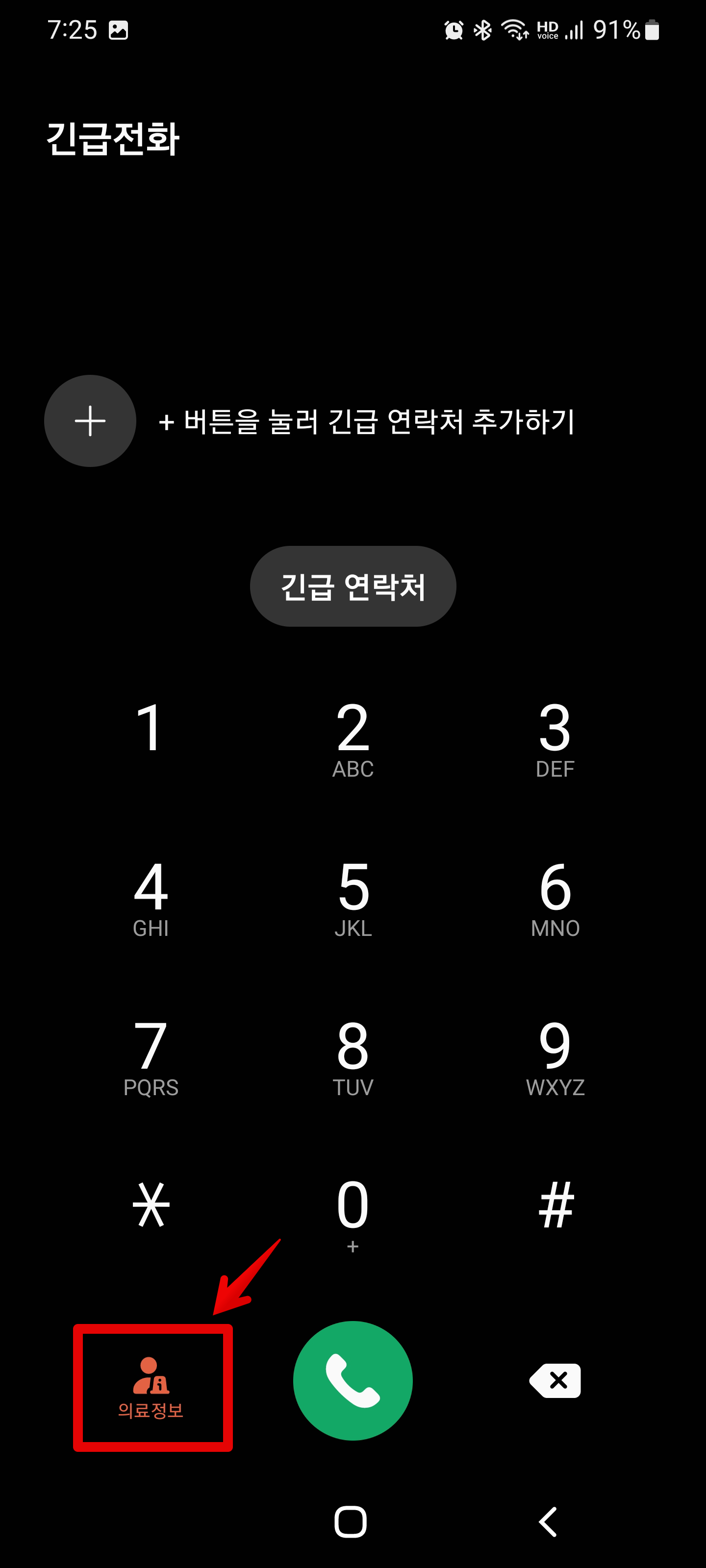 스마트폰 긴급전화칸 왼쪽에 보면 의료정보를 확인할 수 있는 기능이 있습니다. 여기에 미리 자신의 의료정보를 등록해두면 응급상활 발생시 유용하게 쓰일 수 있습니다.