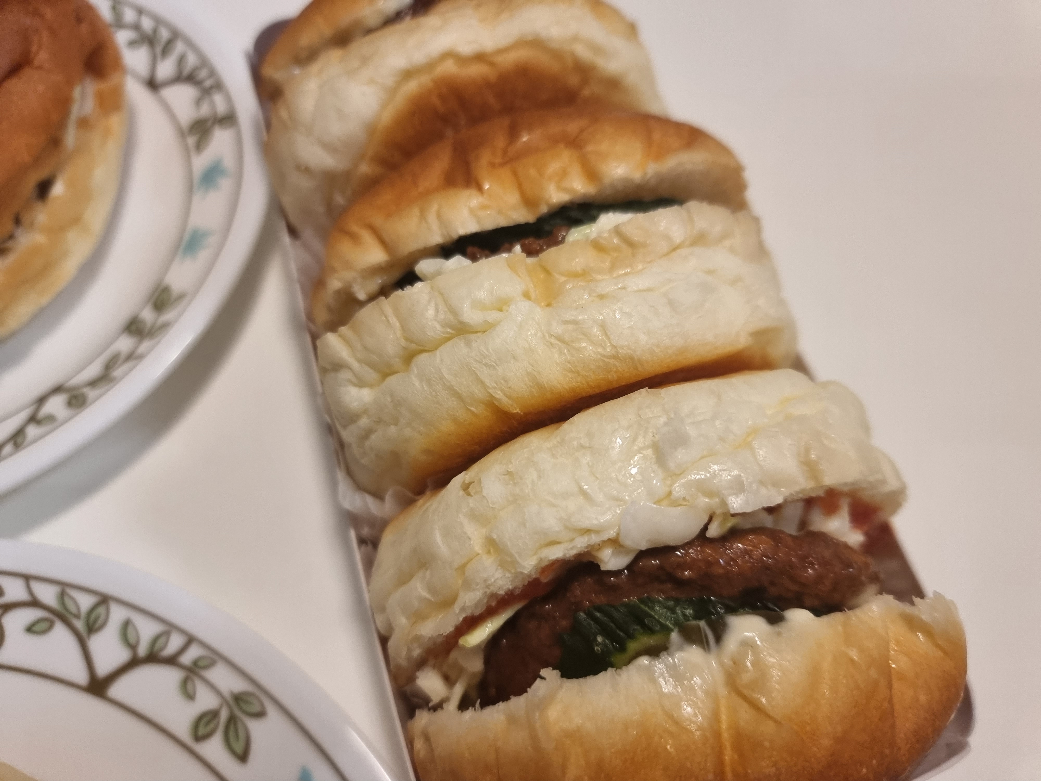 3가지 종류 중에서 제일 맛있게 먹은 미니버거입니다. 작은 사이즈임에도 푸짐하게 내용물이 들었고 알찹니다. 3가지 다 먹어본 순서로는 개인적인 평가로는 미니버거 > 일반 햄버거 > 돈가스 버거 순이었습니다!