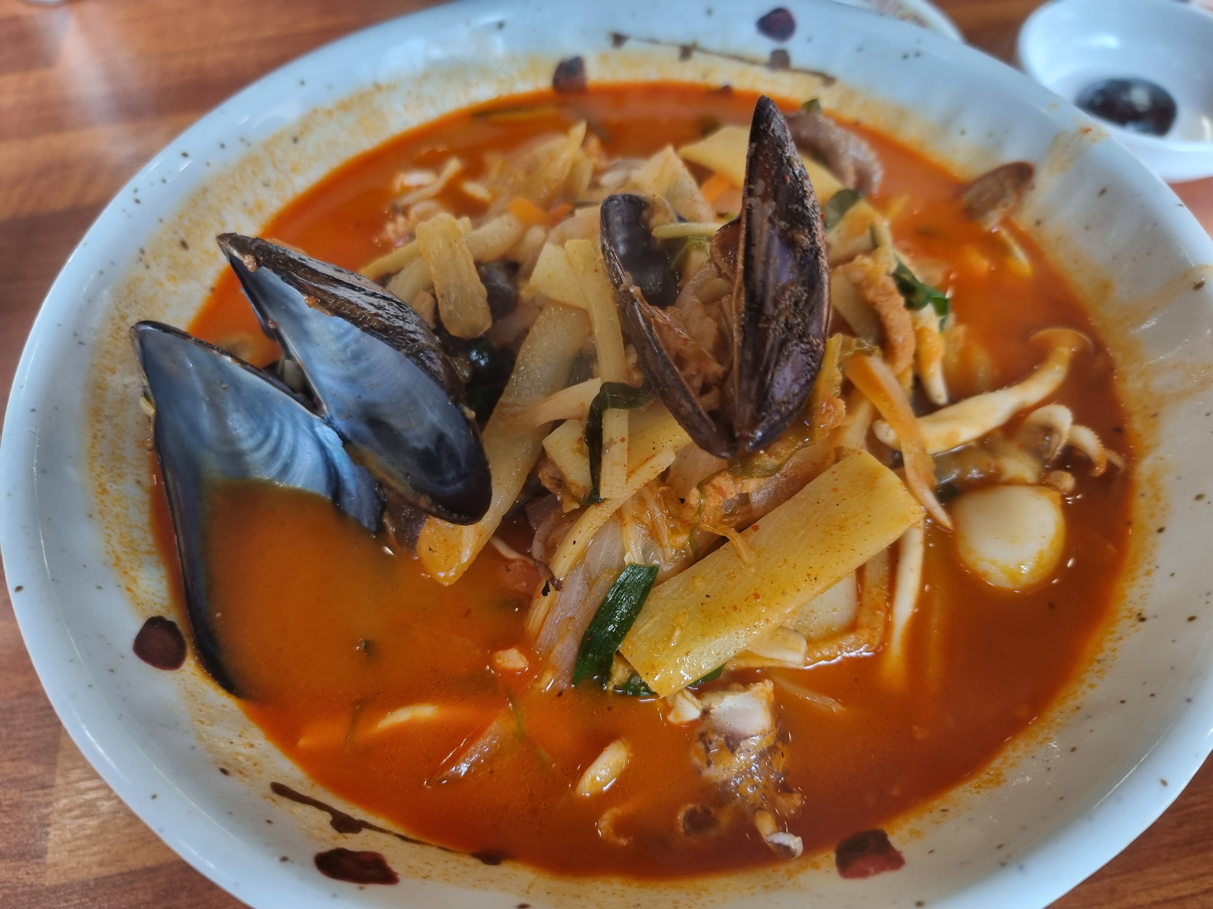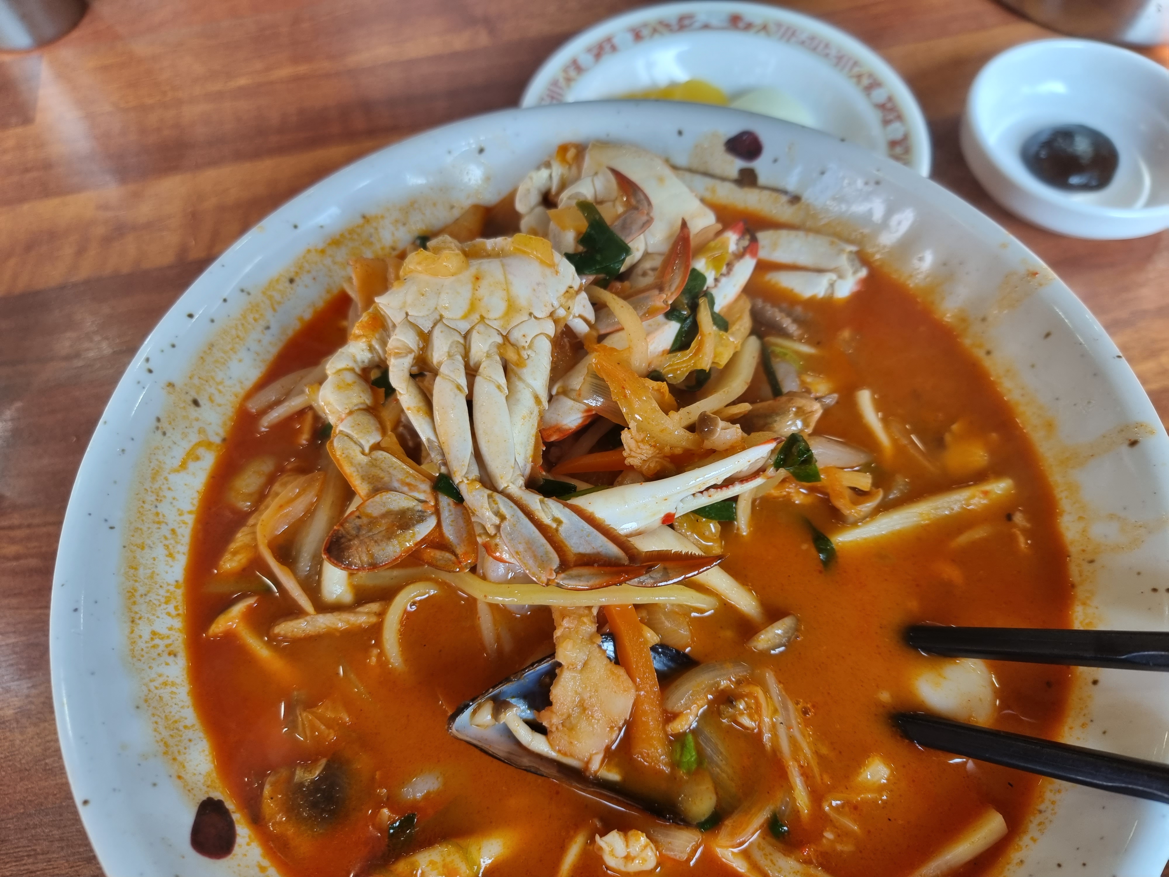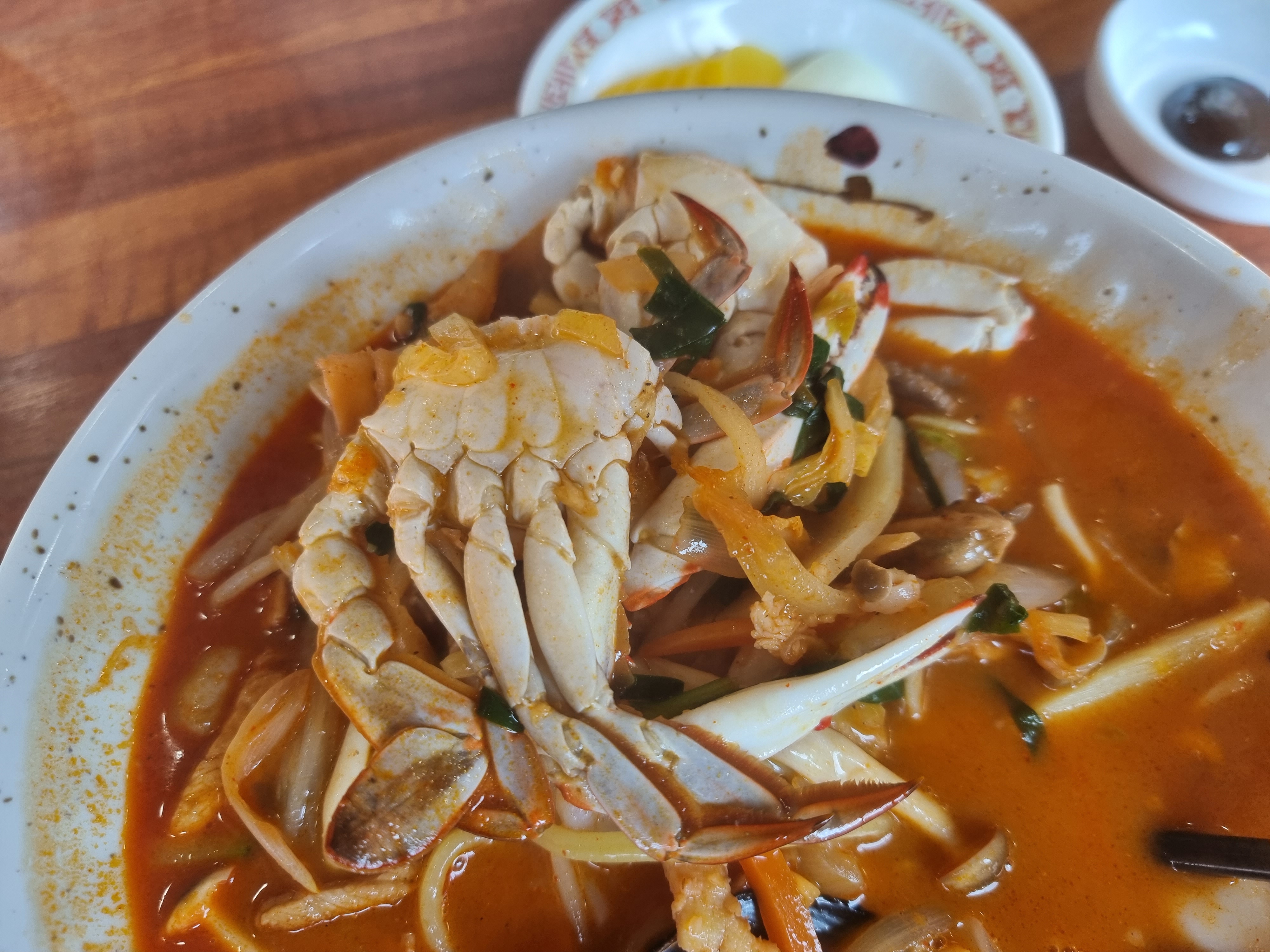 게도 들었고 홍합도 조금 들었고 해물하고 해가지고 이것저것 푸짐~하게 들었고 양도 정말 많았습니다 ㅎㅎ 의외로 일반 짬뽕이 가성비가 좋던데요? 가격도 저렴하니깐요 ㅋㅋ