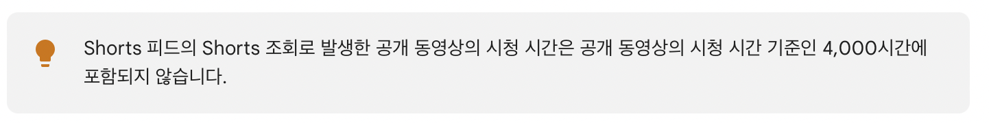 참고로 쇼츠 피드의 쇼츠 조회수의 경우 시청시간에 포함되지 않는다고 합니다.