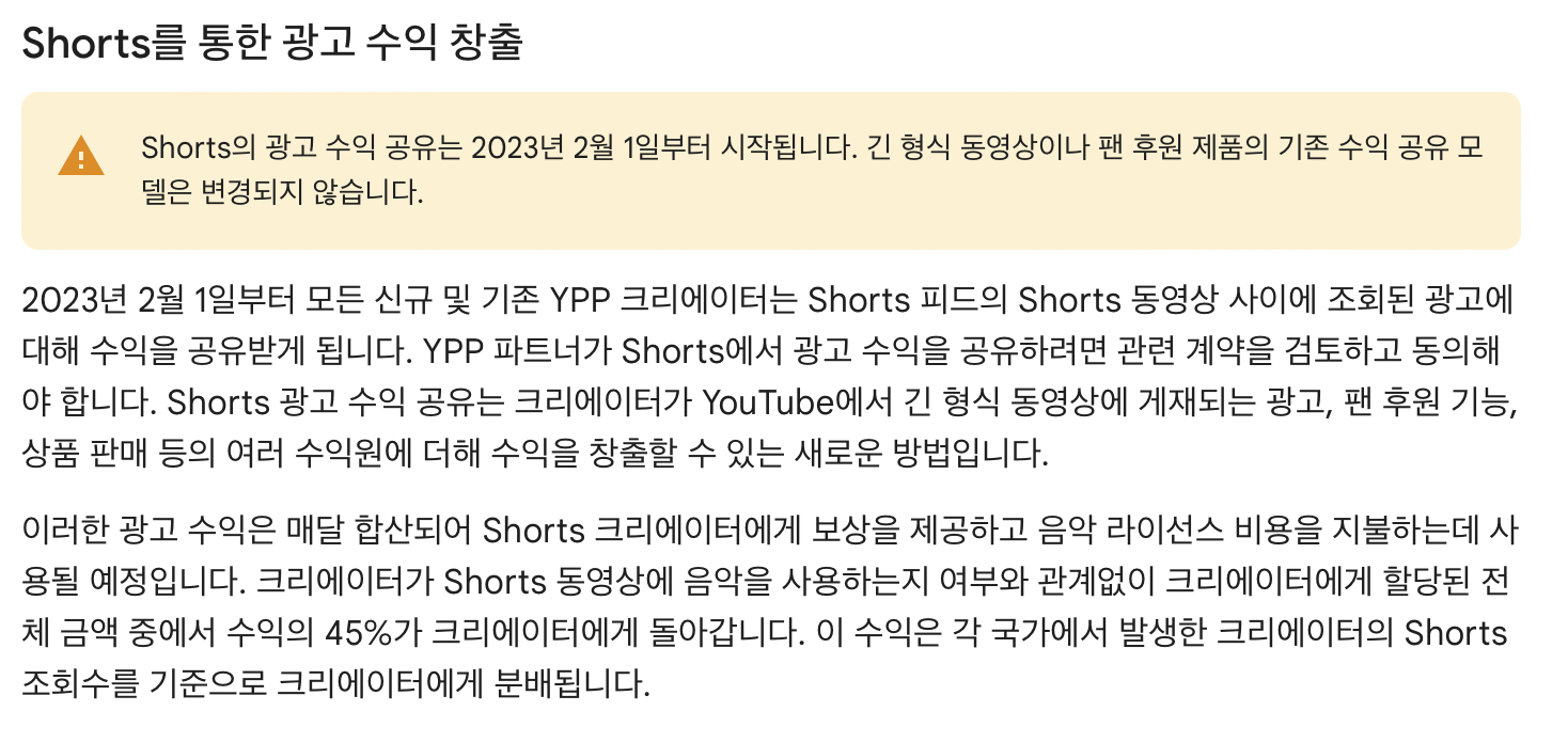 유튜브 쇼츠 수익창출 23년 2월부터 시작된다