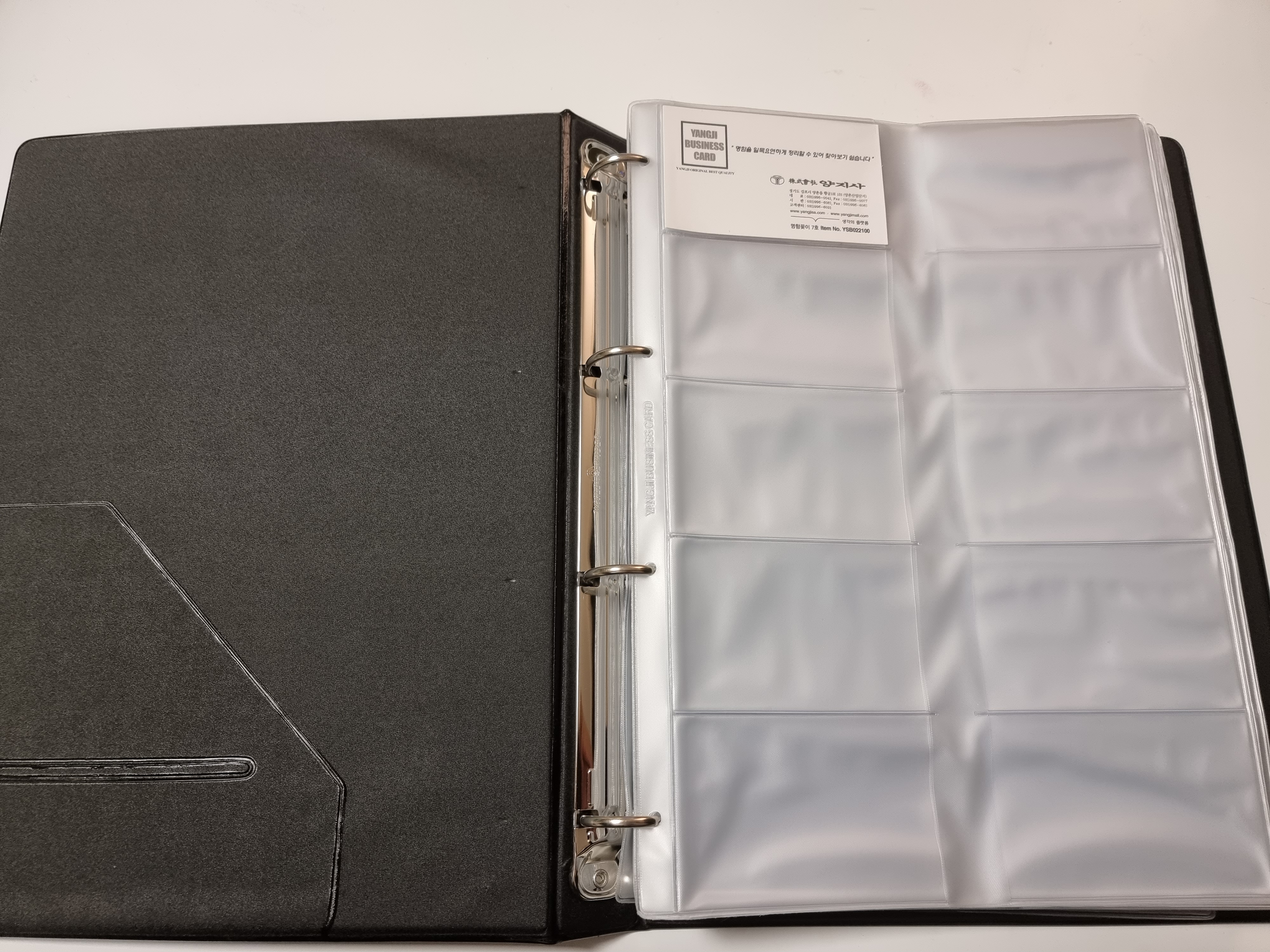 600매짜리 양지사 명함책자 바인더에는 1페이지에 10개가 들어갑니다. 양면으로 돼 있습니다.