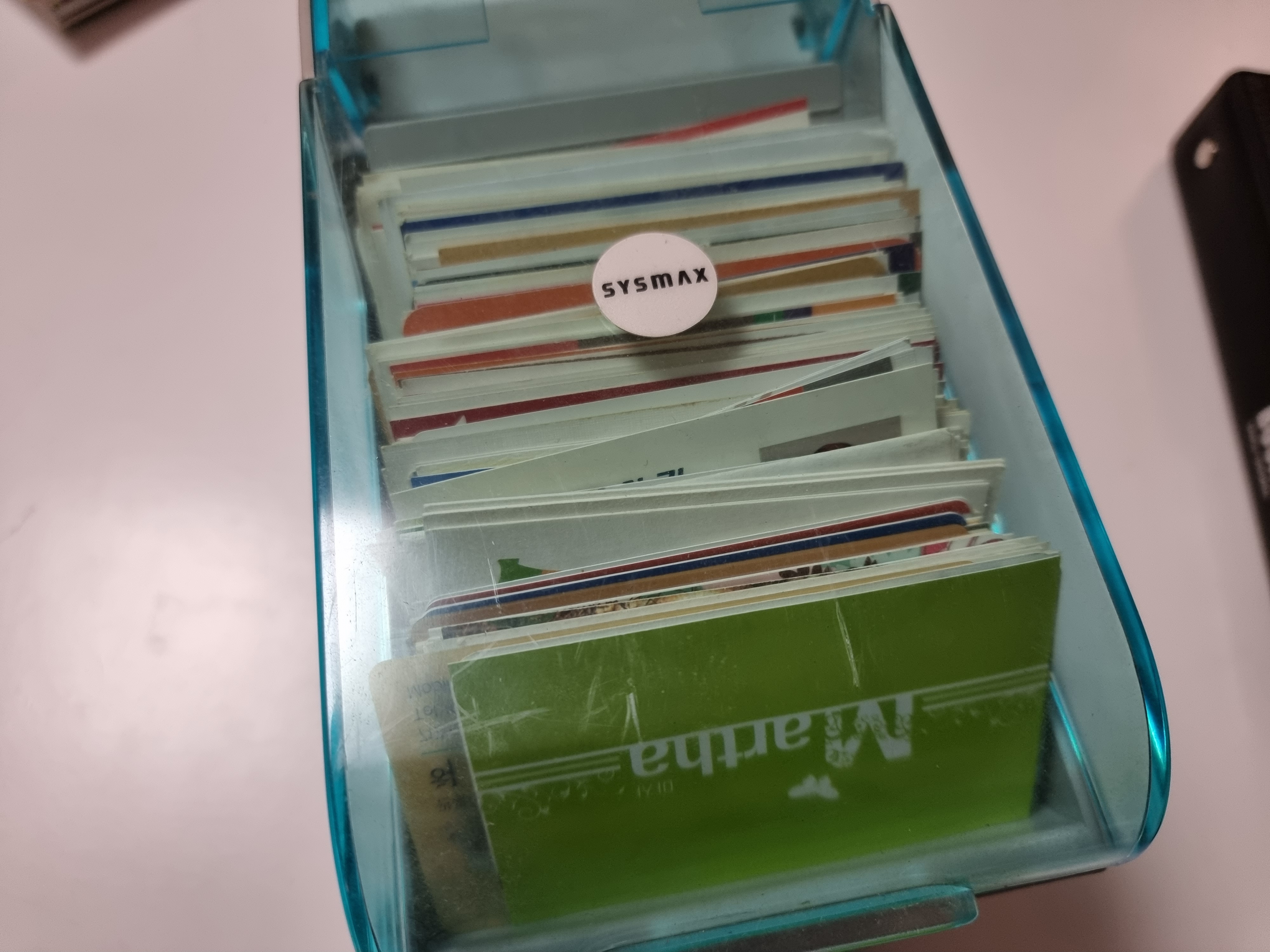 지금까지는 명함케이스를 사서 상자 같은 제품으로 명함을 보관해두고 있었어요. 이 통을 2개를 아주 오래전에 산 다음에 지금까지 쓰고 있었습니다. 거의 10년은 쓴 것 같네요. 그동안 받은 명함도 많이 늘어나기도 했고 요즘에는 스마트폰 앱에서 얼마든지 명함을 관리할 수 있어서 앱으로도 사용하고는 있습니다만, 오프라인으로 받은 명함을 정리해두면 좋을것 같았습니다.