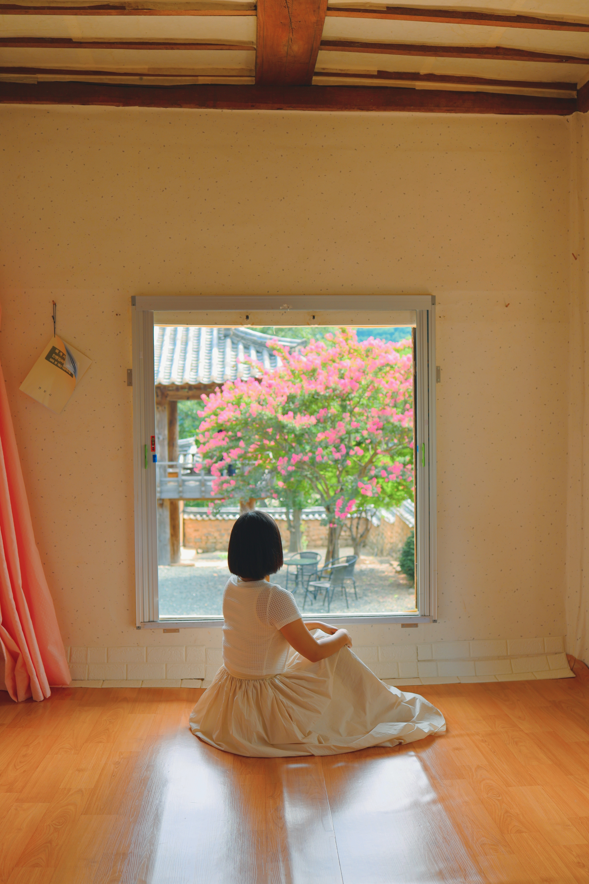 방 안에서 창을 열고 밖을 바라보는 풍경이 예술인 객실입니다. 뷰가 좋아요.