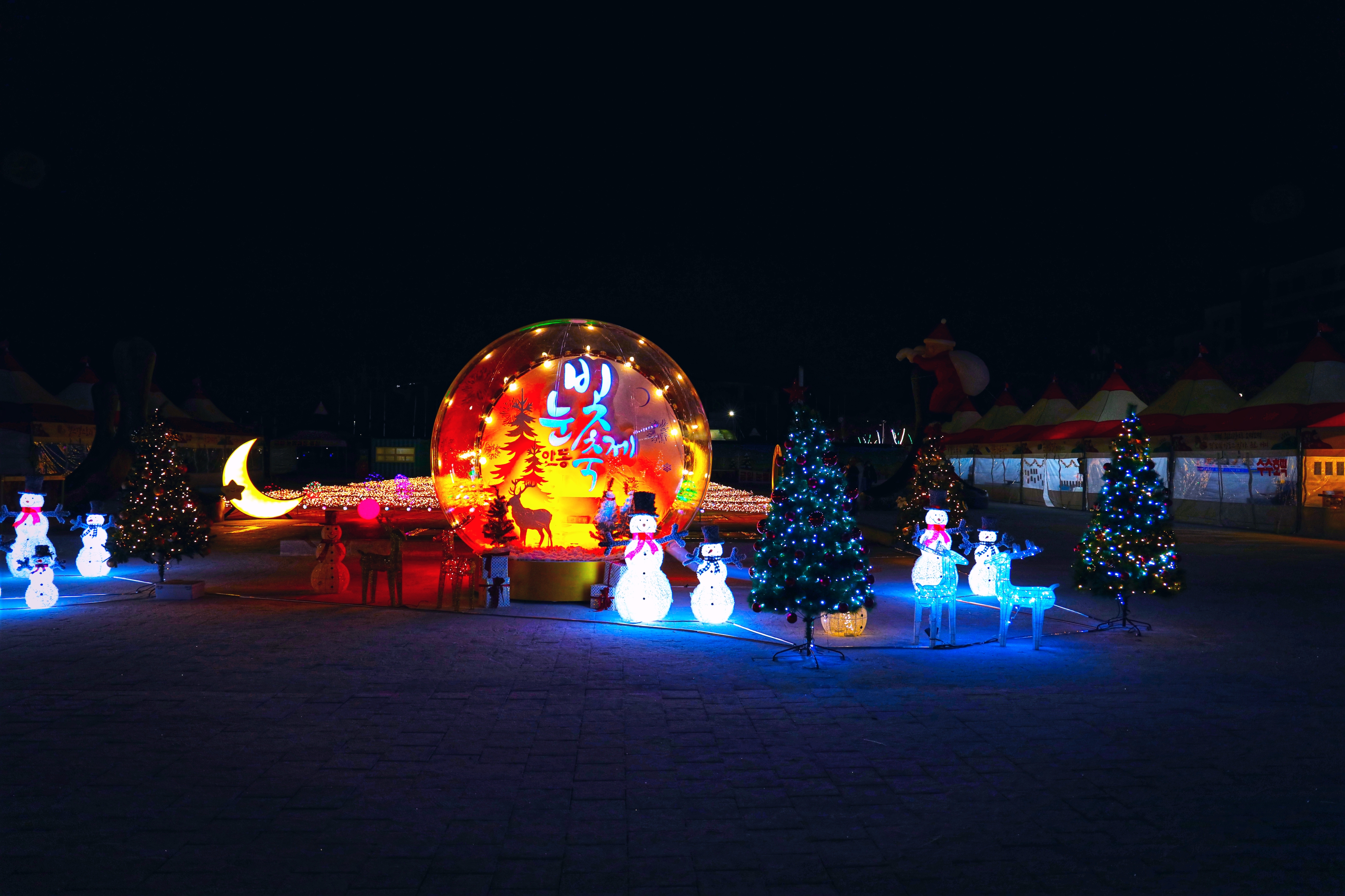 눈사람 모양의 구조물과 여러개의 트리, 조명 등이 현장을 꾸며주고 있었어요. 트리 옆에서 크리스마스 기분을 내면서 스냅사진도 남겨보았습니다. 안동에는 겨울에 야외에서 스냅을 찍을만한 장소의 선택지가 많지가 않았는데 앞으로는 안동눈빛축제 현장을 찾으면 될 것 같습니다. ㅎㅎ
