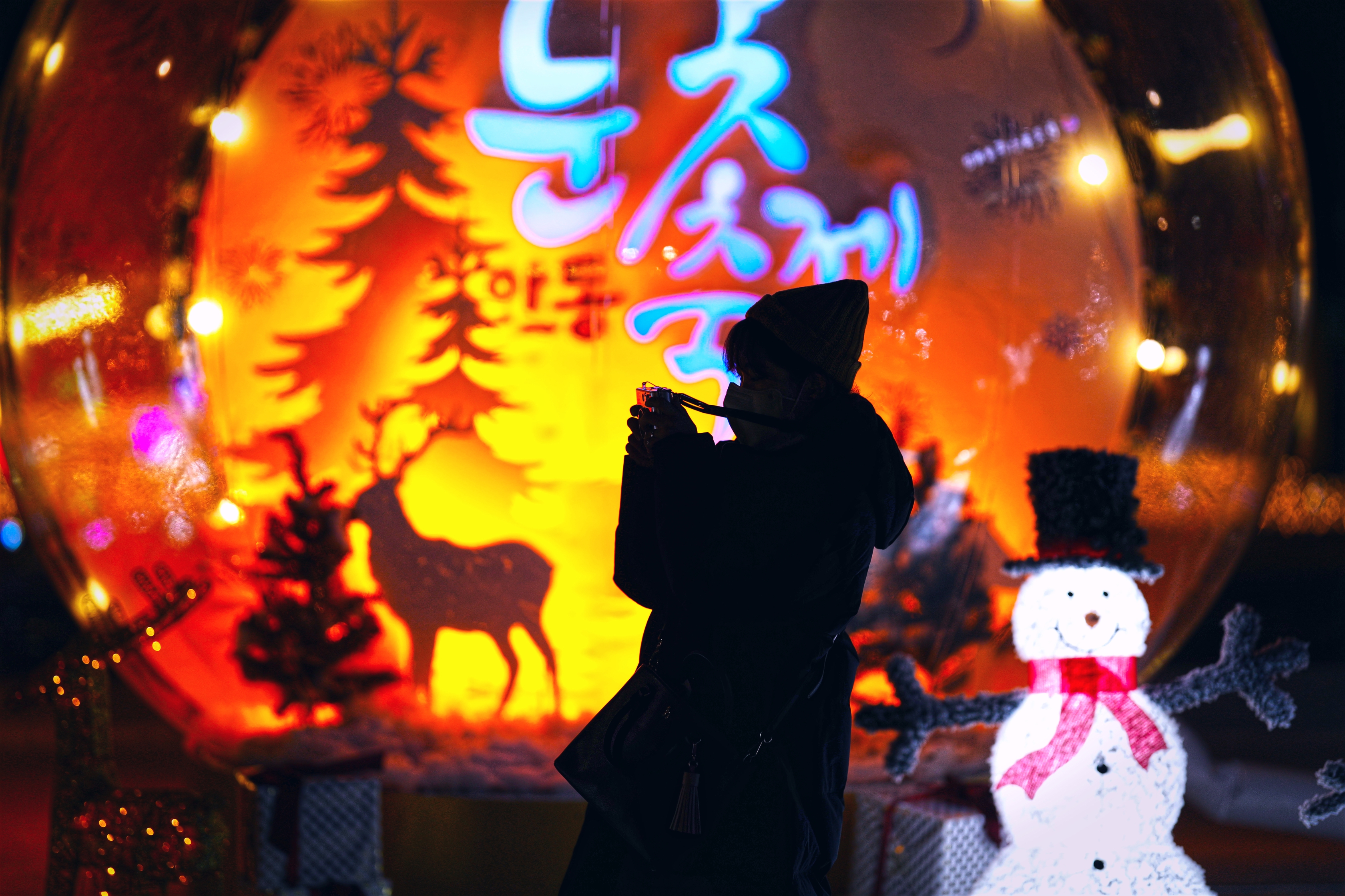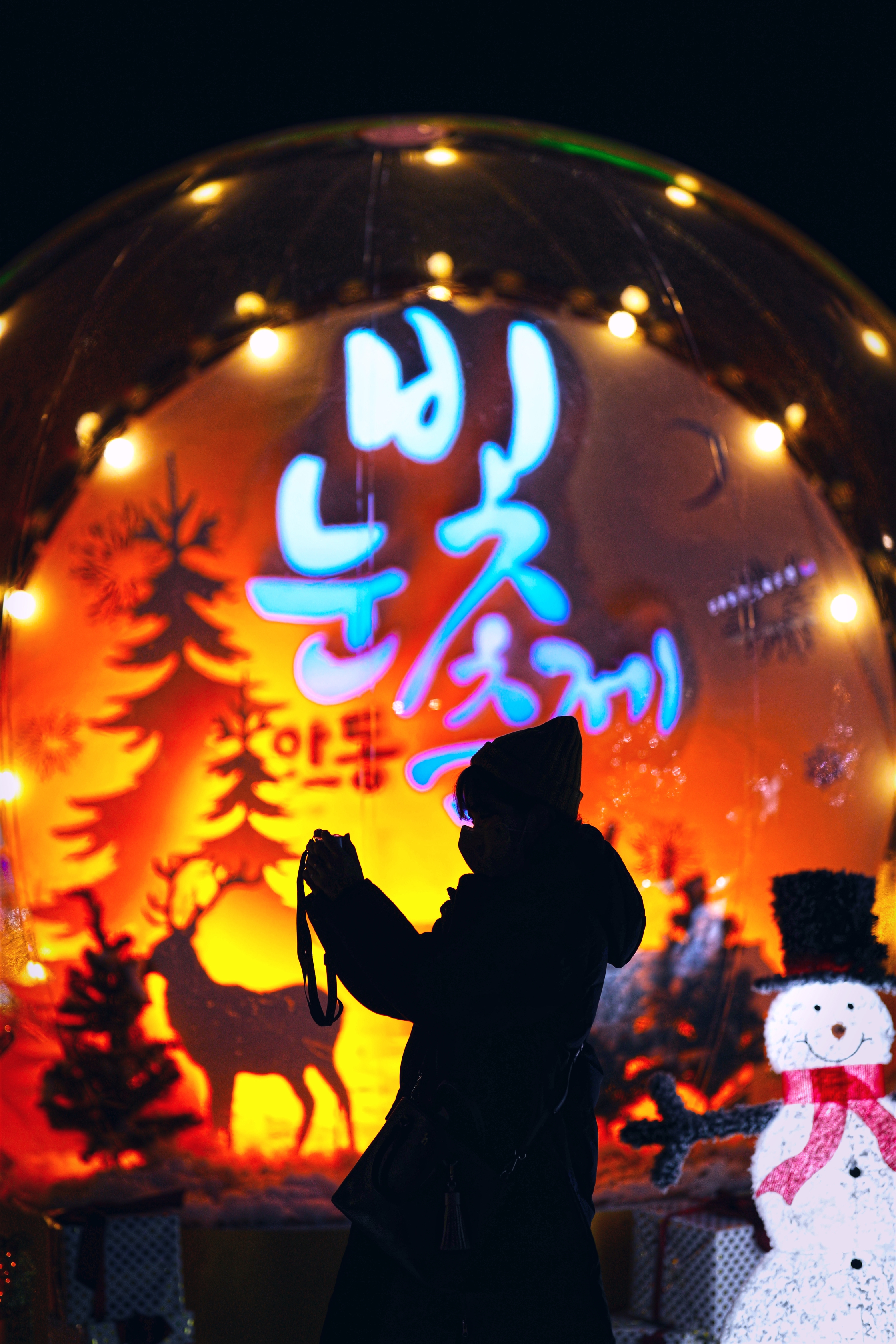 눈사람 모양의 구조물과 여러개의 트리, 조명 등이 현장을 꾸며주고 있었어요. 트리 옆에서 크리스마스 기분을 내면서 스냅사진도 남겨보았습니다. 안동에는 겨울에 야외에서 스냅을 찍을만한 장소의 선택지가 많지가 않았는데 앞으로는 안동눈빛축제 현장을 찾으면 될 것 같습니다. ㅎㅎ