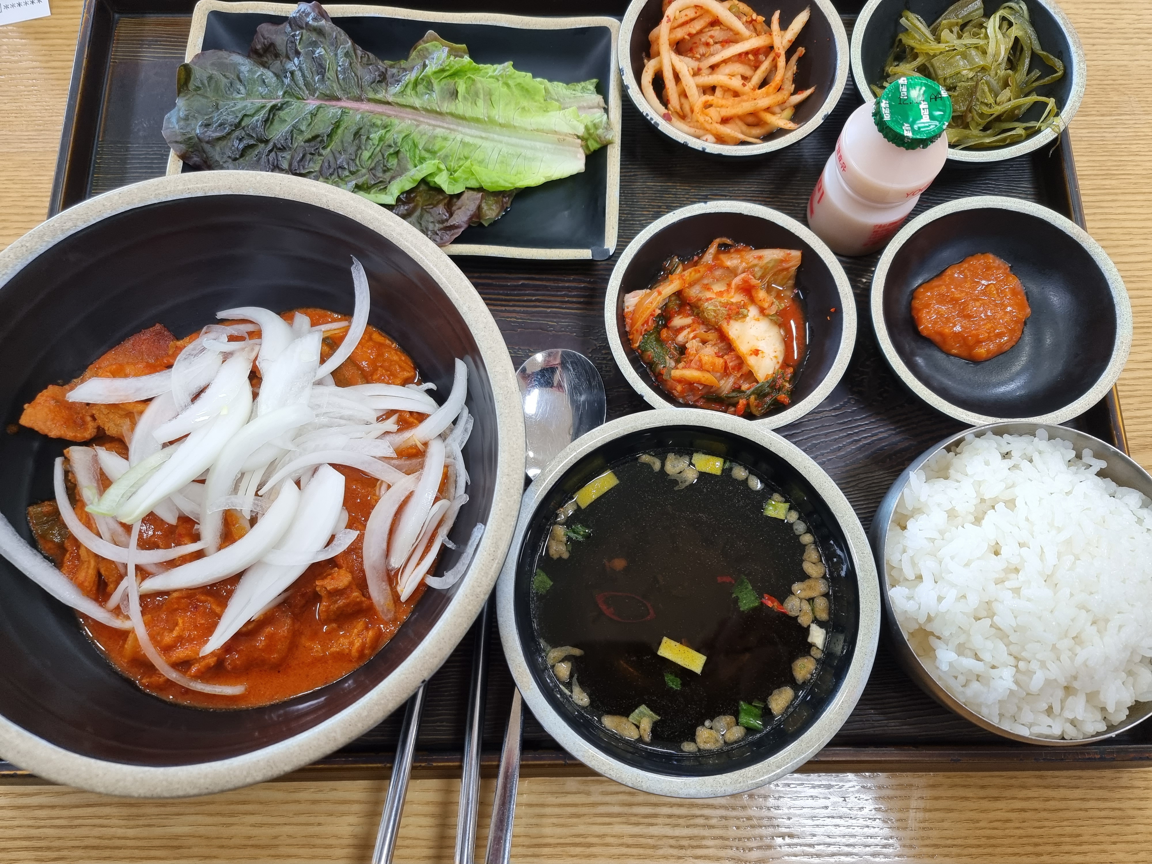 메인메뉴인 제육은 덮밥처럼 비벼먹어도 되고, 정식처럼 반찬으로 먹어도 되는데 편하신대로 먹으면 될 것 같네요. 음식이 그리고 엄청 빨리 나옵니다 ㅋㅋ