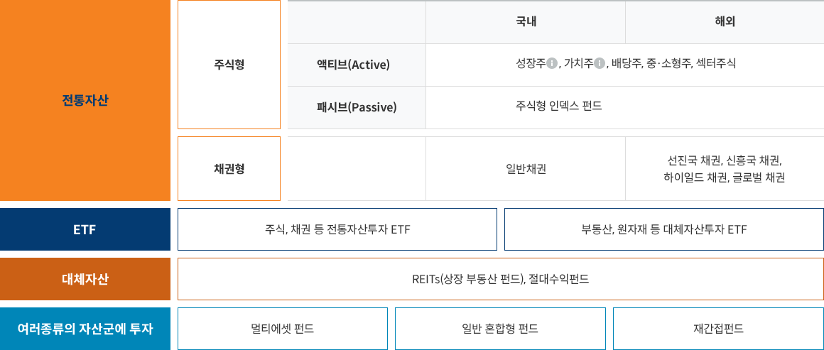 미래에셋에서는 위와같이 포트폴리오 투자가 가능하다고 합니다. 주식형에서는 액티브와 패시브가 있고 채권형도 있고요. ETF에서는 다양한 ETF에 투자가 가능하며 대체자산으로서 리츠에 투자하는 것도 됩니다. 펀드로 운용하는 것도 되고요. 저는 앞서 설명한 것처럼 향후 계속해서 TIGER 미국 S&P500 ETF만 모을 작정이라서 포트폴리오 투자는 아니지만, 원하신다면 이렇게 투자하는 것도 가능합니다.