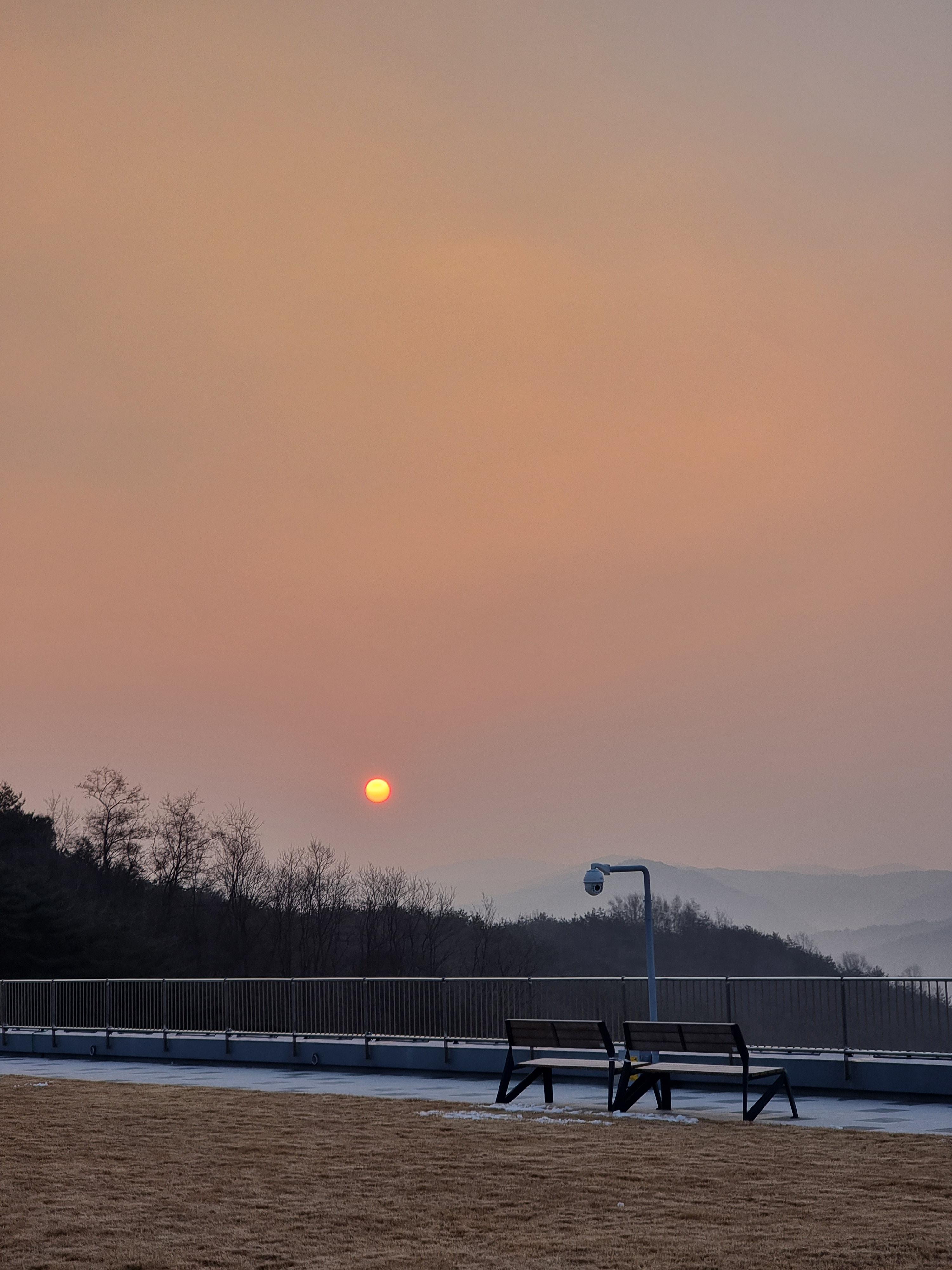 이때가 약 7시 10분경의 모습이었습니다. 예정된 일출 시간은 7시 35분경이었는데 저 멀리 바라보니 안개인지 구름인지 미세먼지인지로 인해 시야가 100%로 보이는것 같진 않아서 조금 더 기다려야할 것 같았어요. 동트는 모습의 풍경은 정말 그림같긴 했습니다.