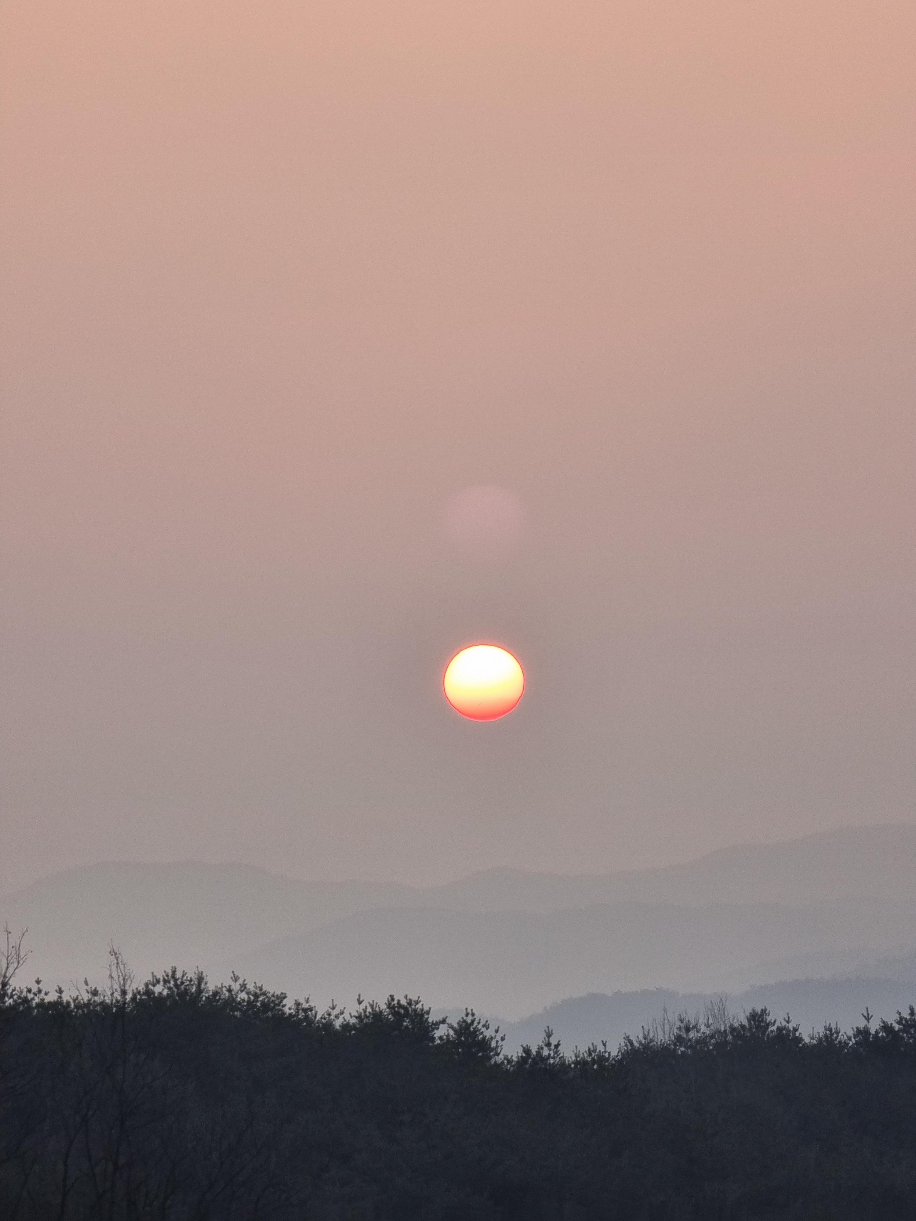 이때가 약 7시 10분경의 모습이었습니다. 예정된 일출 시간은 7시 35분경이었는데 저 멀리 바라보니 안개인지 구름인지 미세먼지인지로 인해 시야가 100%로 보이는것 같진 않아서 조금 더 기다려야할 것 같았어요. 동트는 모습의 풍경은 정말 그림같긴 했습니다.