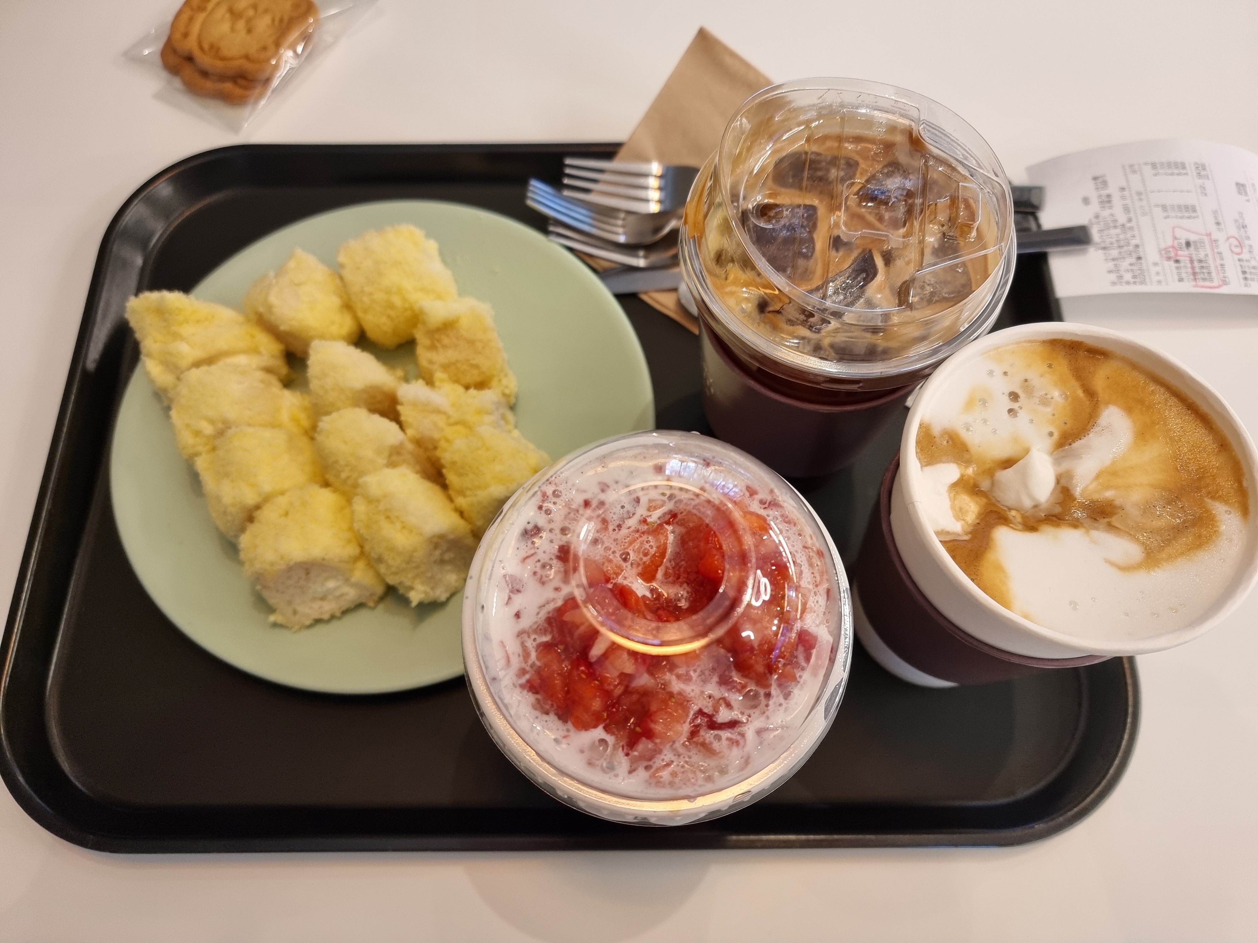 빵이랑 음료랑 해가지고 이것저것 골라보았습니다. 같이 간 지인이 화이트롤이 제일 맛나다고해서 그 말 듣고 추천해주는대로 골라봤네요.
