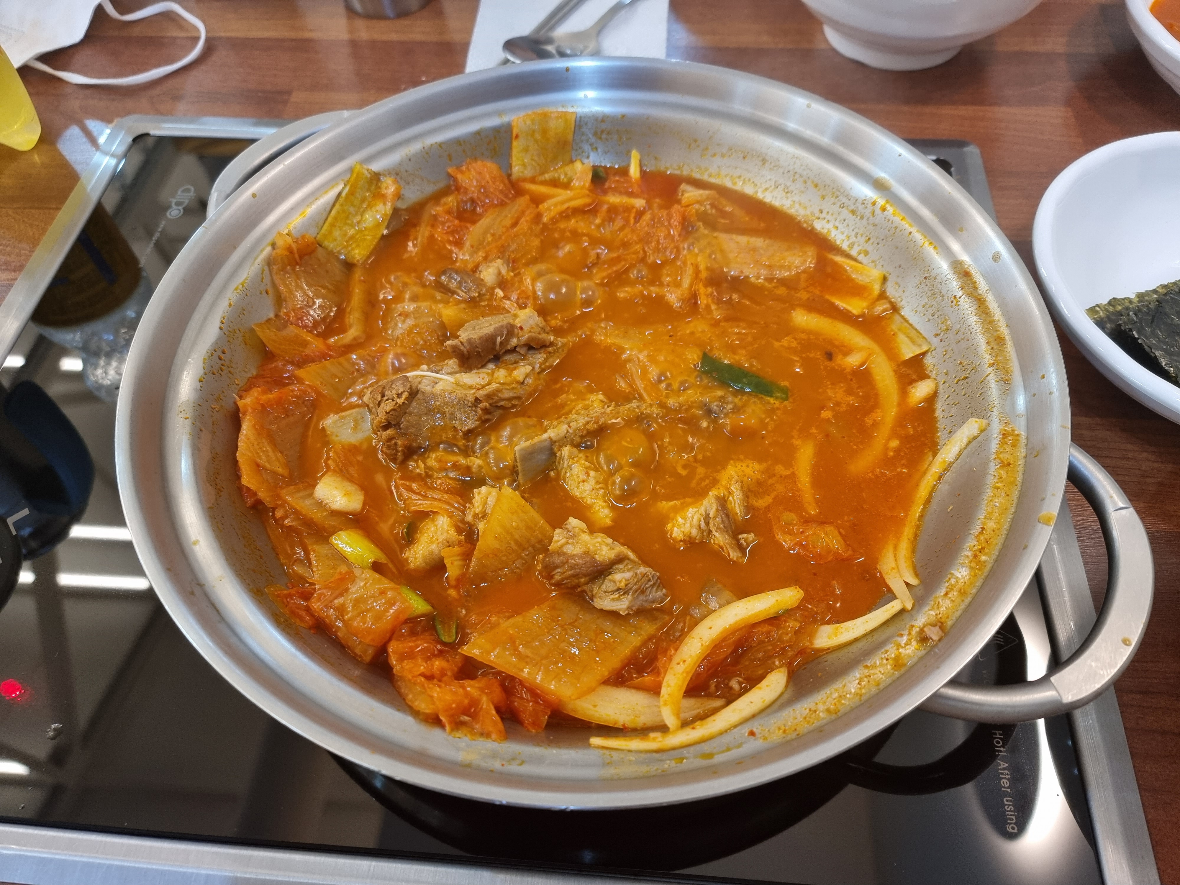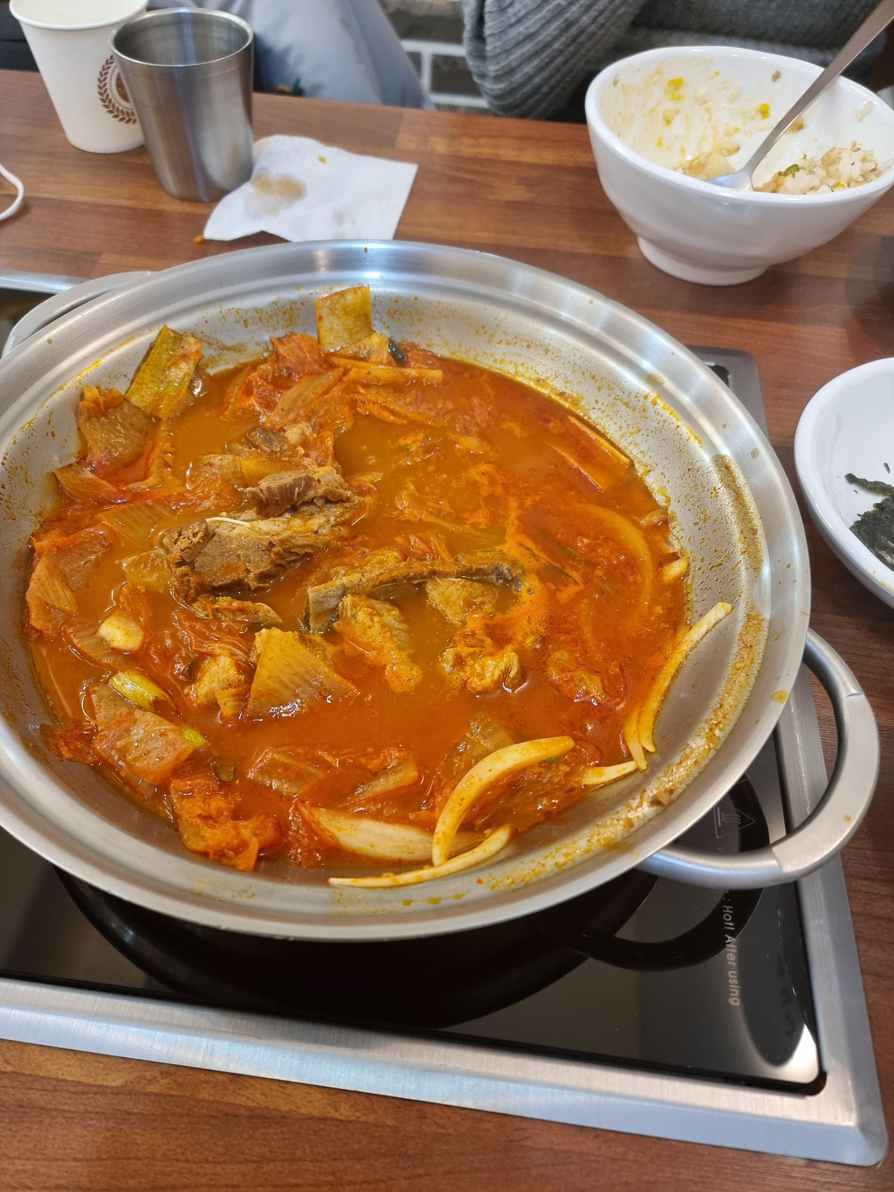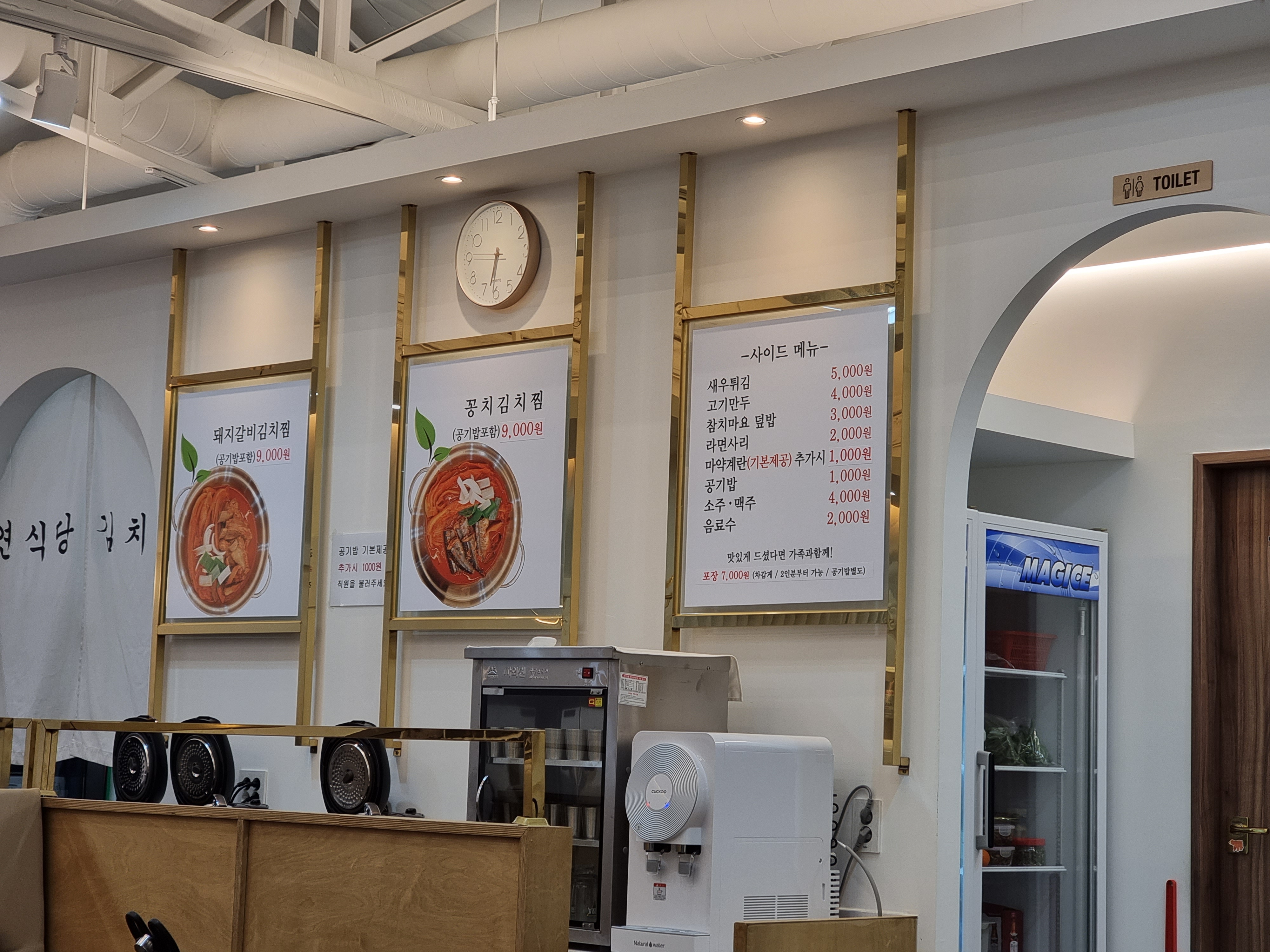 메인메뉴로 돼지갈비김치찜과 꽁치김치찜이 있는데 돼지갈비김치찜 먹었습니다. 사이드메뉴도 과거랑 똑같네요.