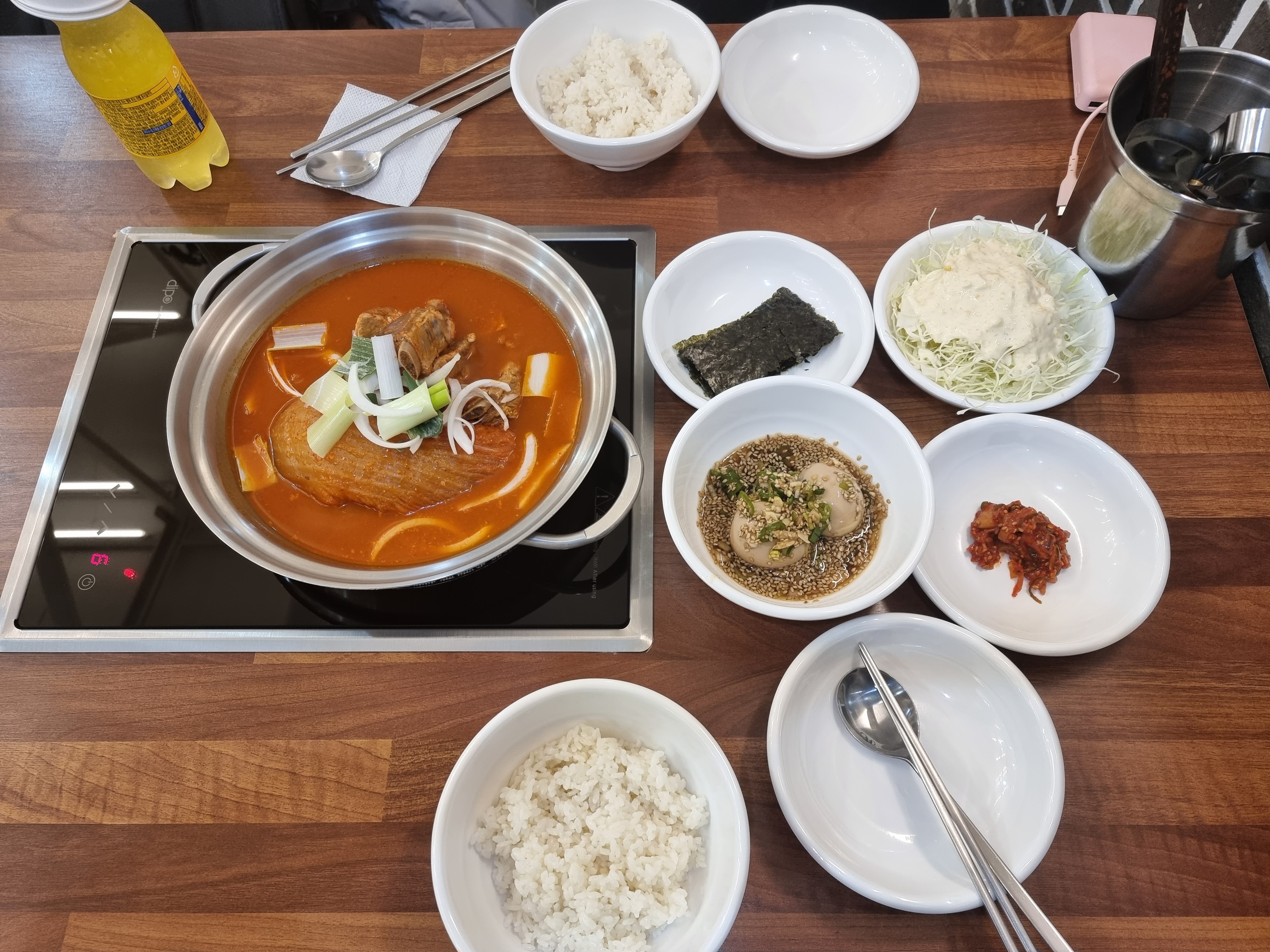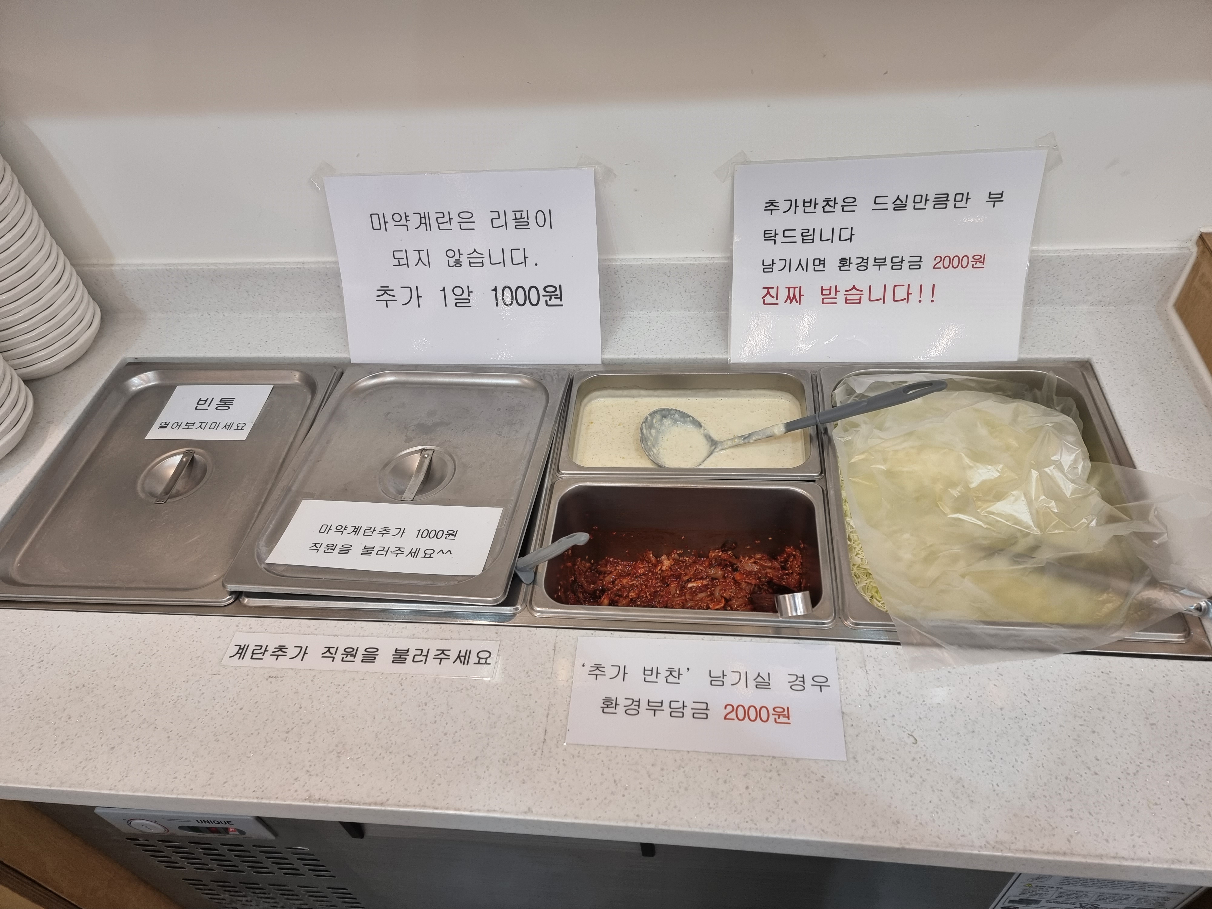 밑반찬은 셀프바에서 리필 가능합니다. 계란은 리필 안되고 추가해야합니다.