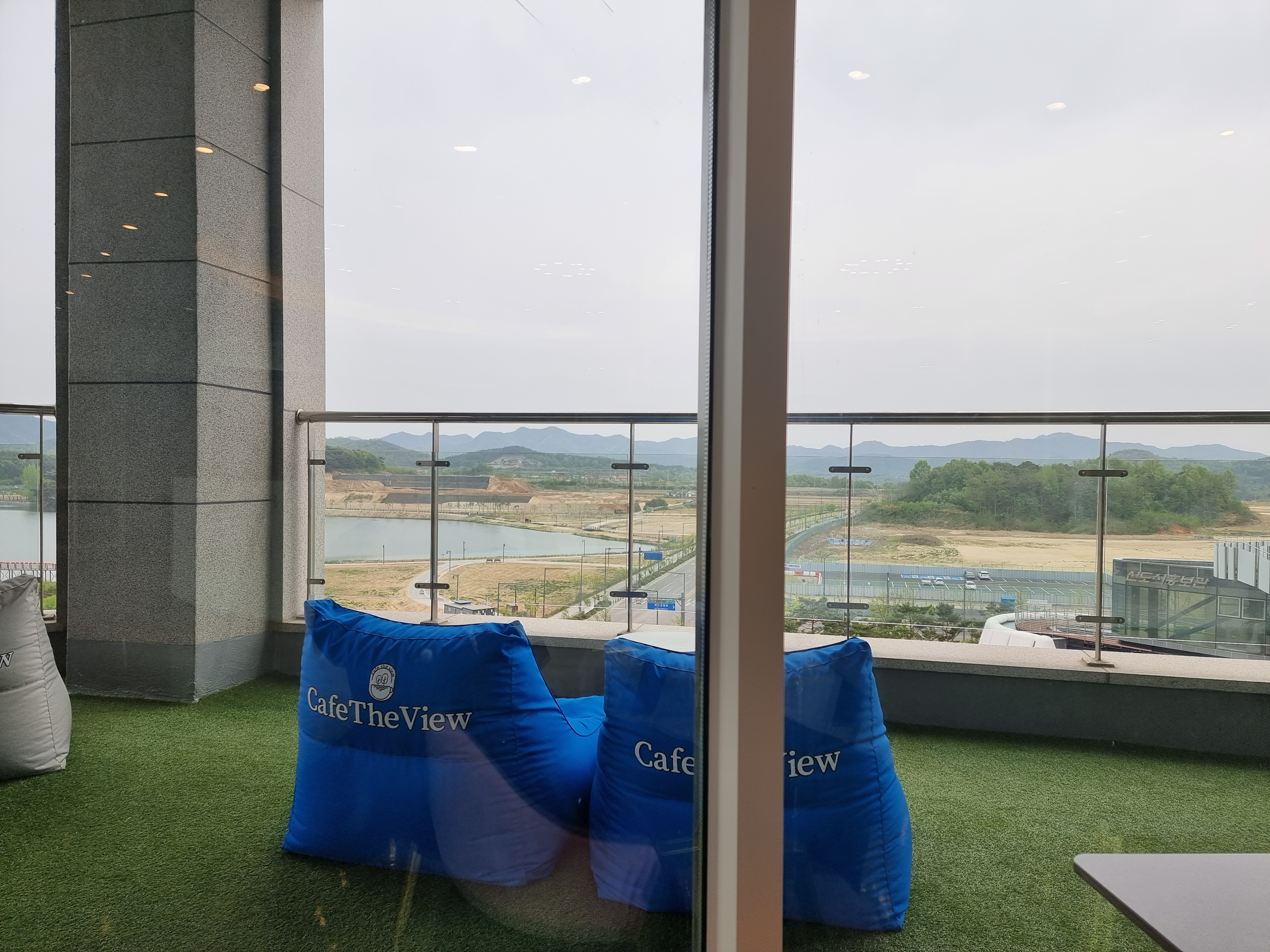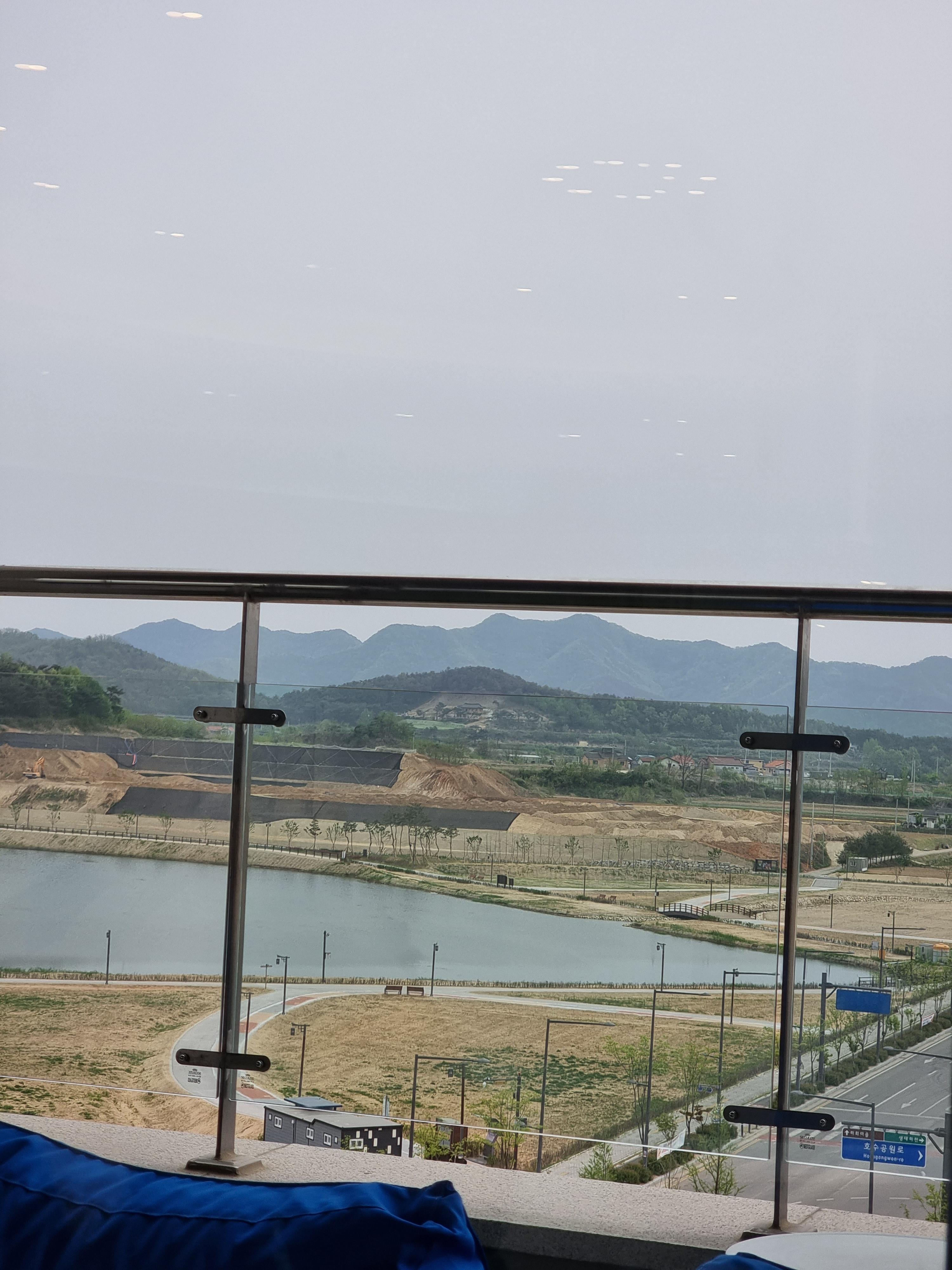 카페더뷰에서 바라볼 수 있는 조망입니다. 날씨가 좋으면 더 멋진 풍경이 있는 곳인데 흐려서 아쉬웠네요~ 종종 가기 좋은 카페입니다. 커피 맛도 괜찮은 편!