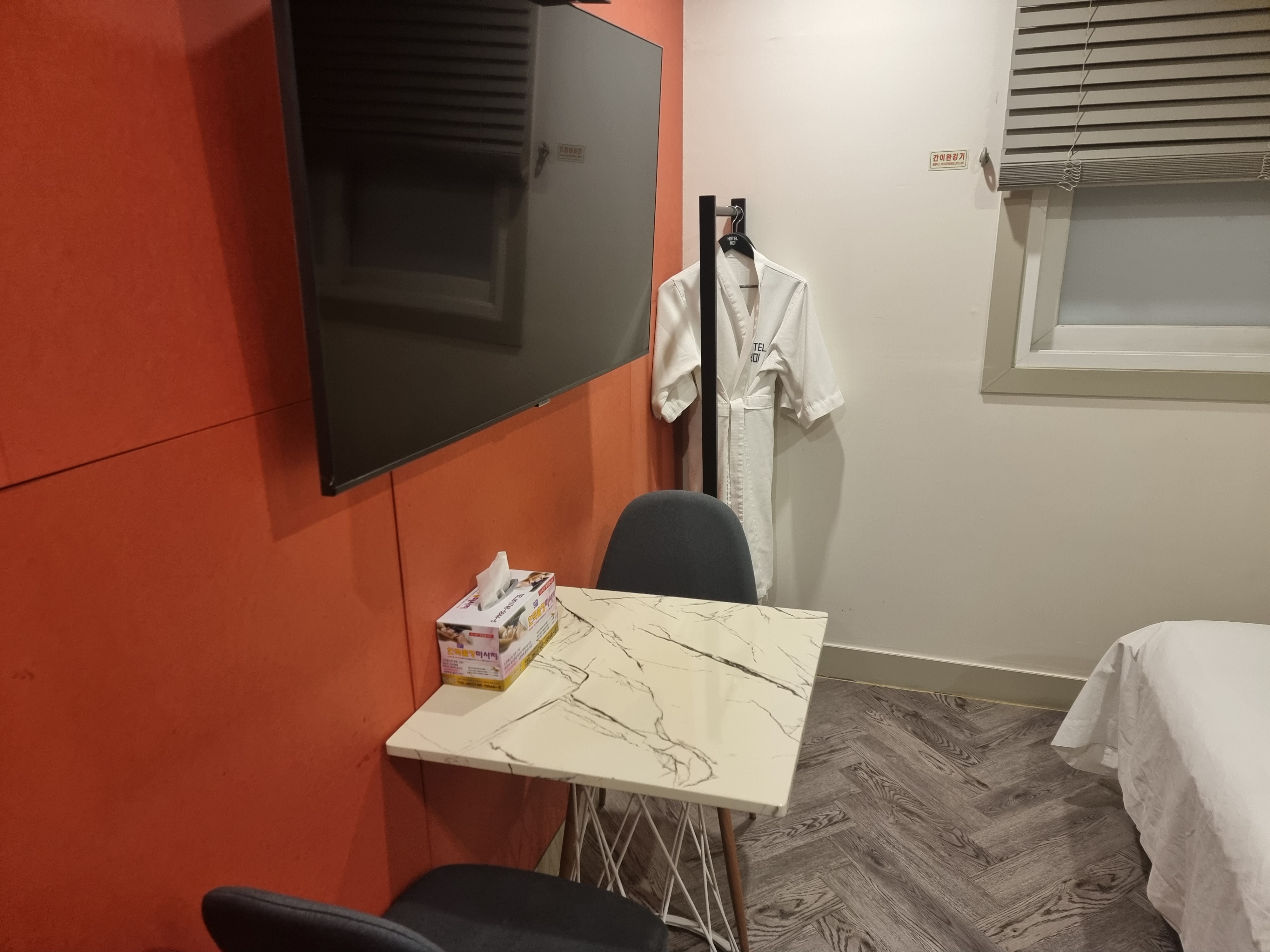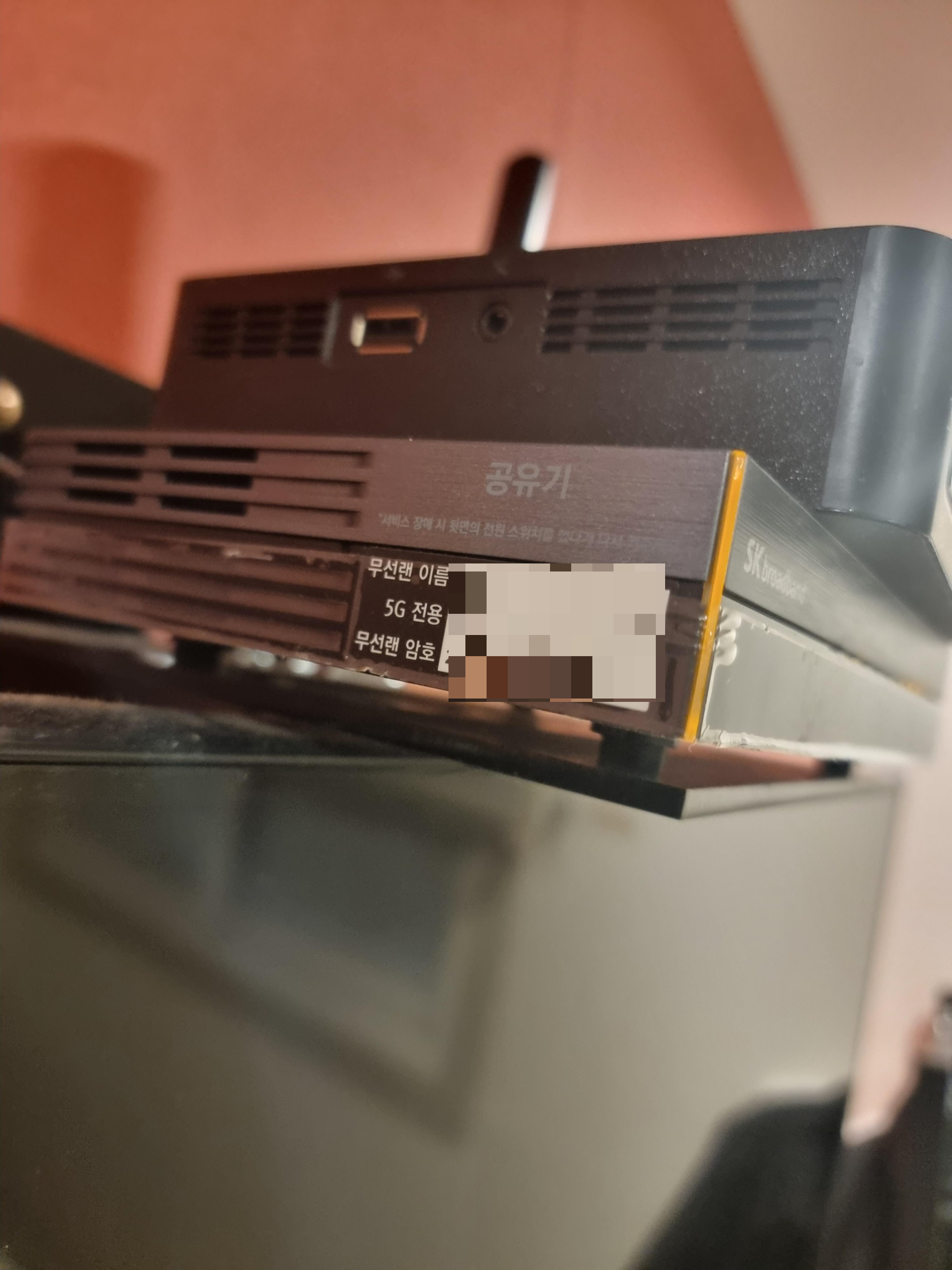 와이파이 비밀번호가 적혀있는걸 찾지 못해서 방 여기저기를 둘러보다가 TV 위에 있는 공유기 바로 옆에 이렇게 무선랜 암호가 적혀있는 부분이 있어서 스스로 찾아내기도 했네요 ㅎㅎ