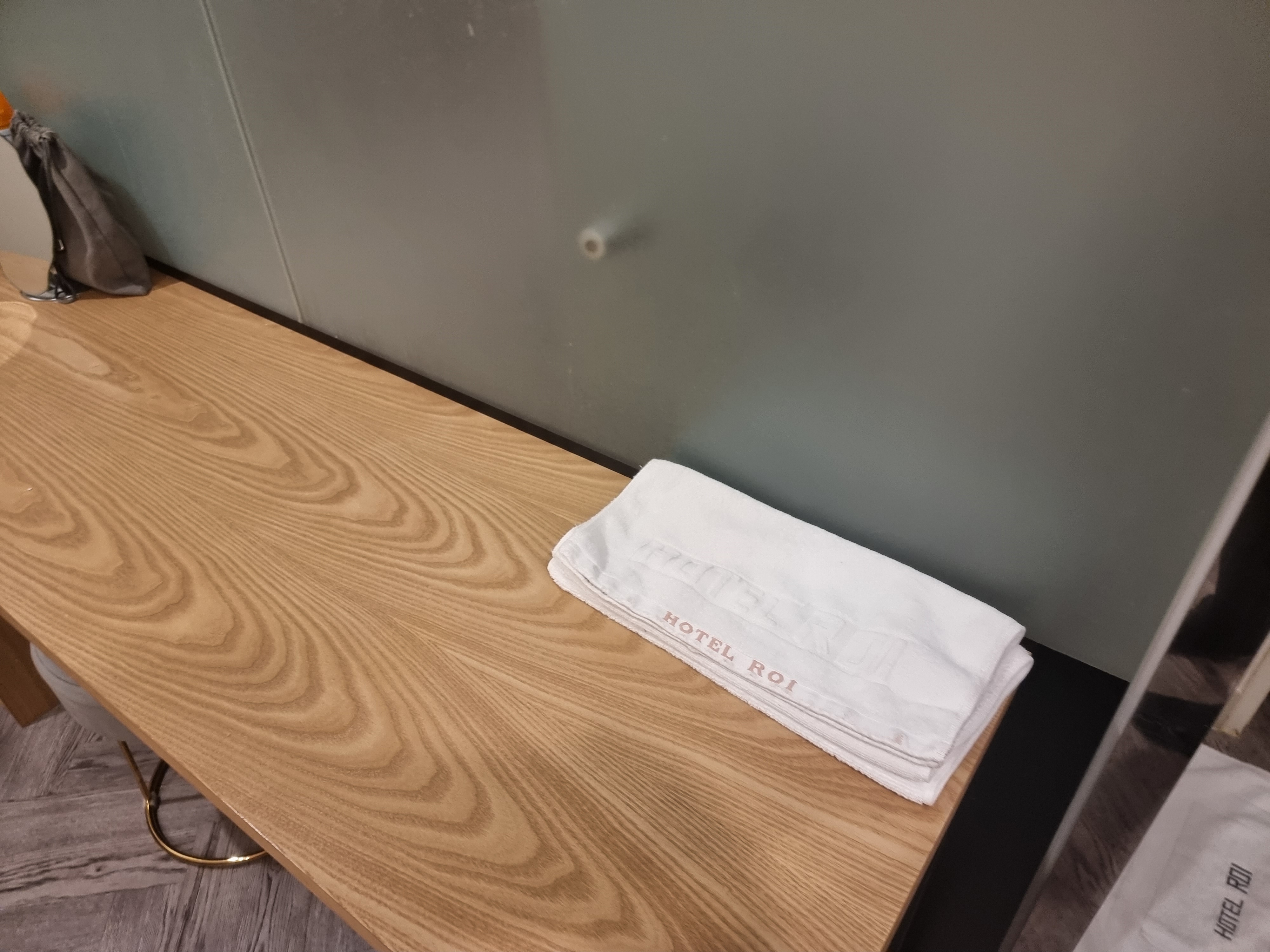 옆에는 수건과 길쭉한 테이블도 있어서 짐을 올려놓고 유용하게 썼습니다.