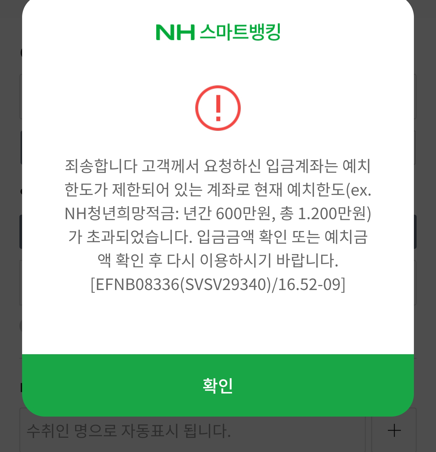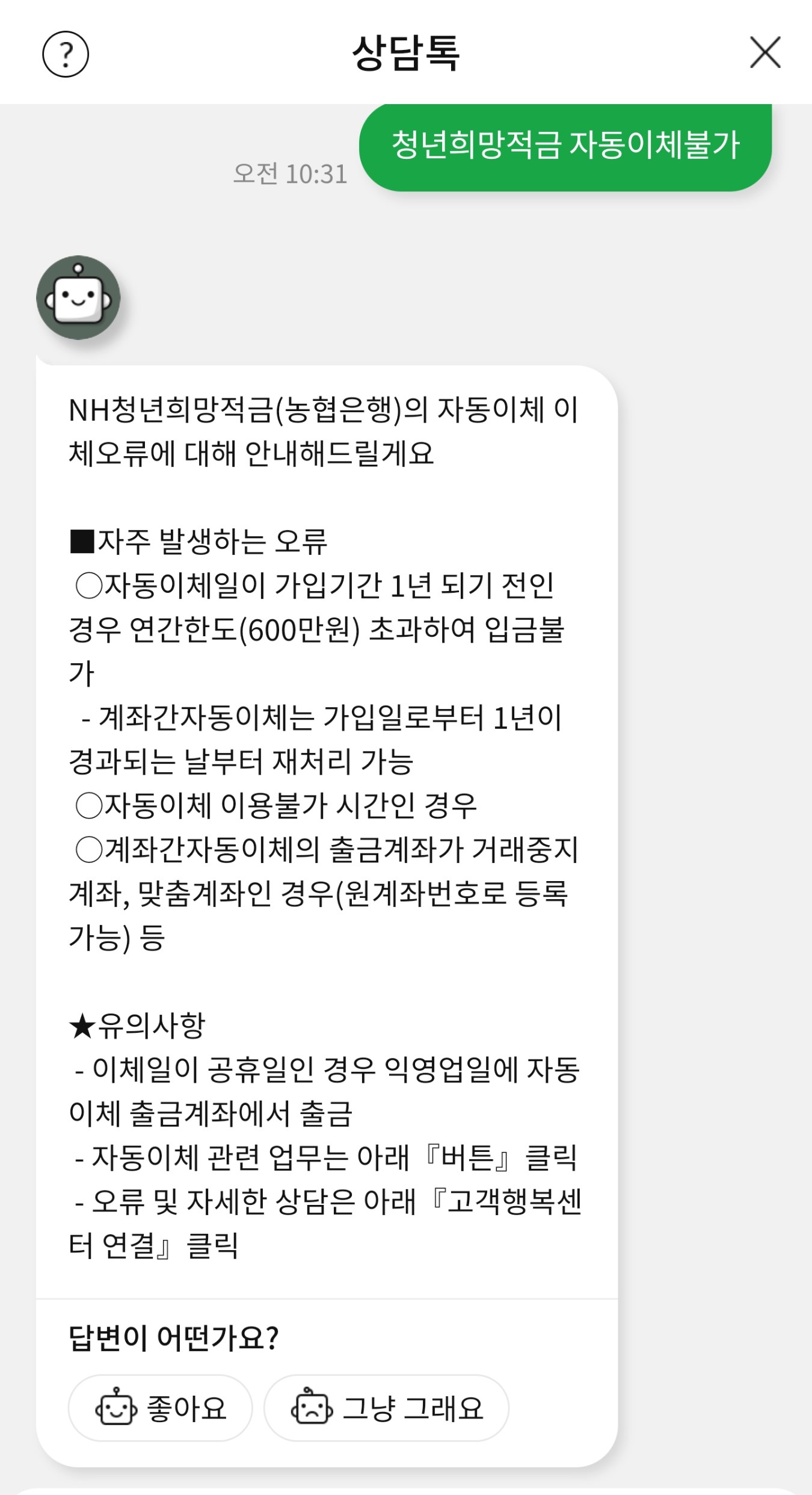 NH농협 청년희망적금 자동이체불가(23년 2월) 해결법