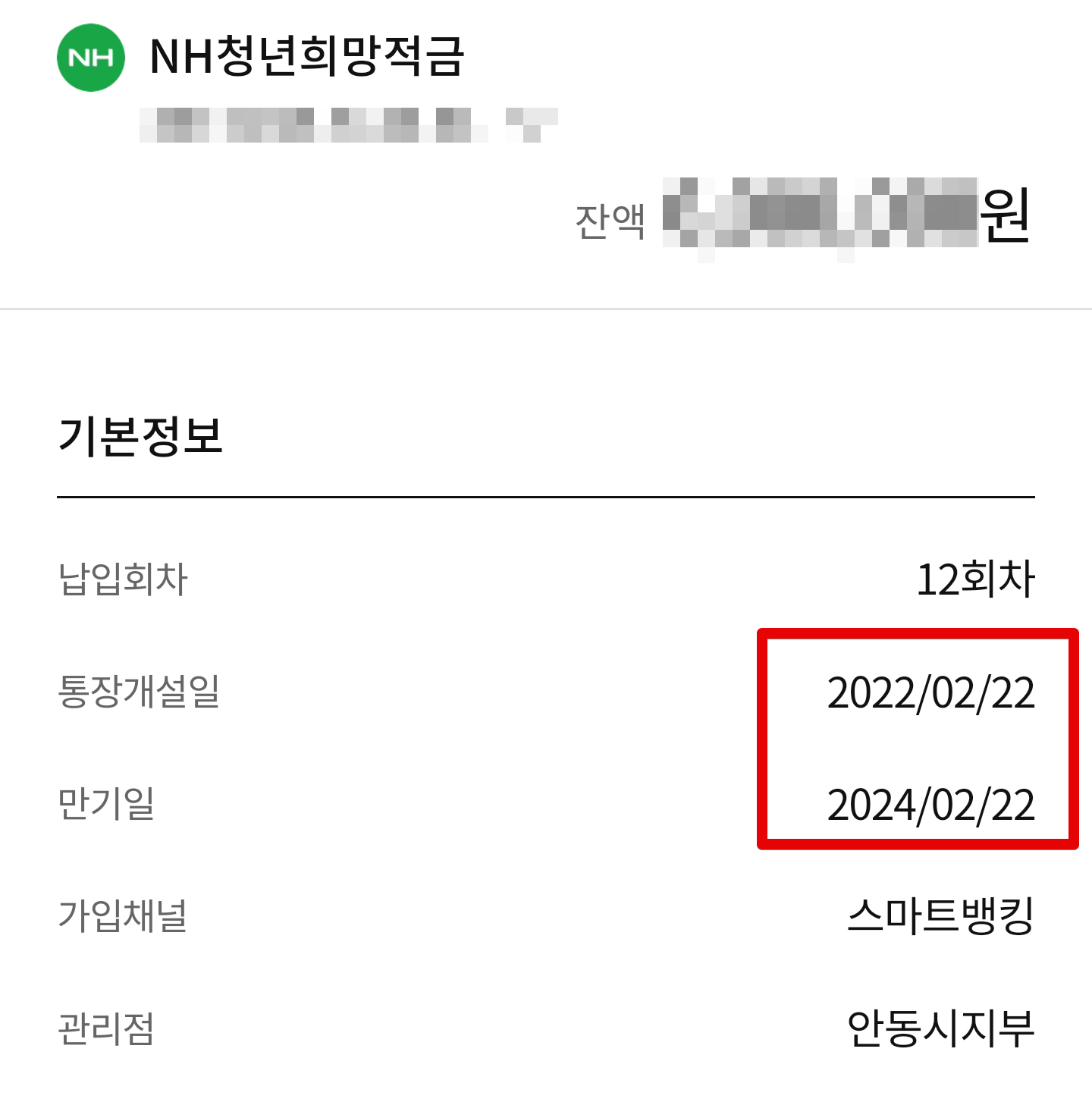 일단 자신의 가입 날짜를 알아야하는데요. 저같은 경우에는 2022년 2월 22일에 개설하여 가입을 하였고 만기일자는 2024년 2월 22일입니다.