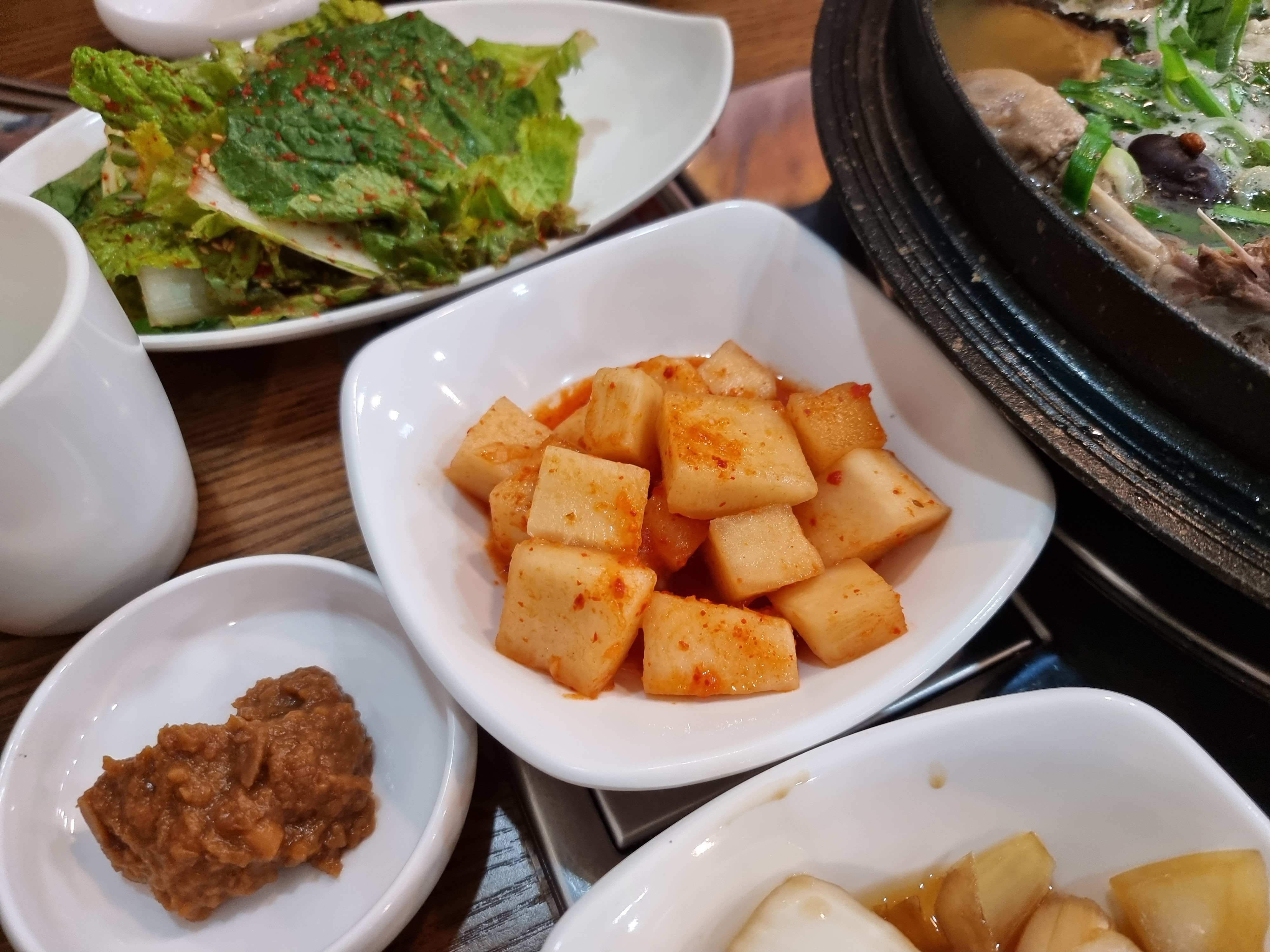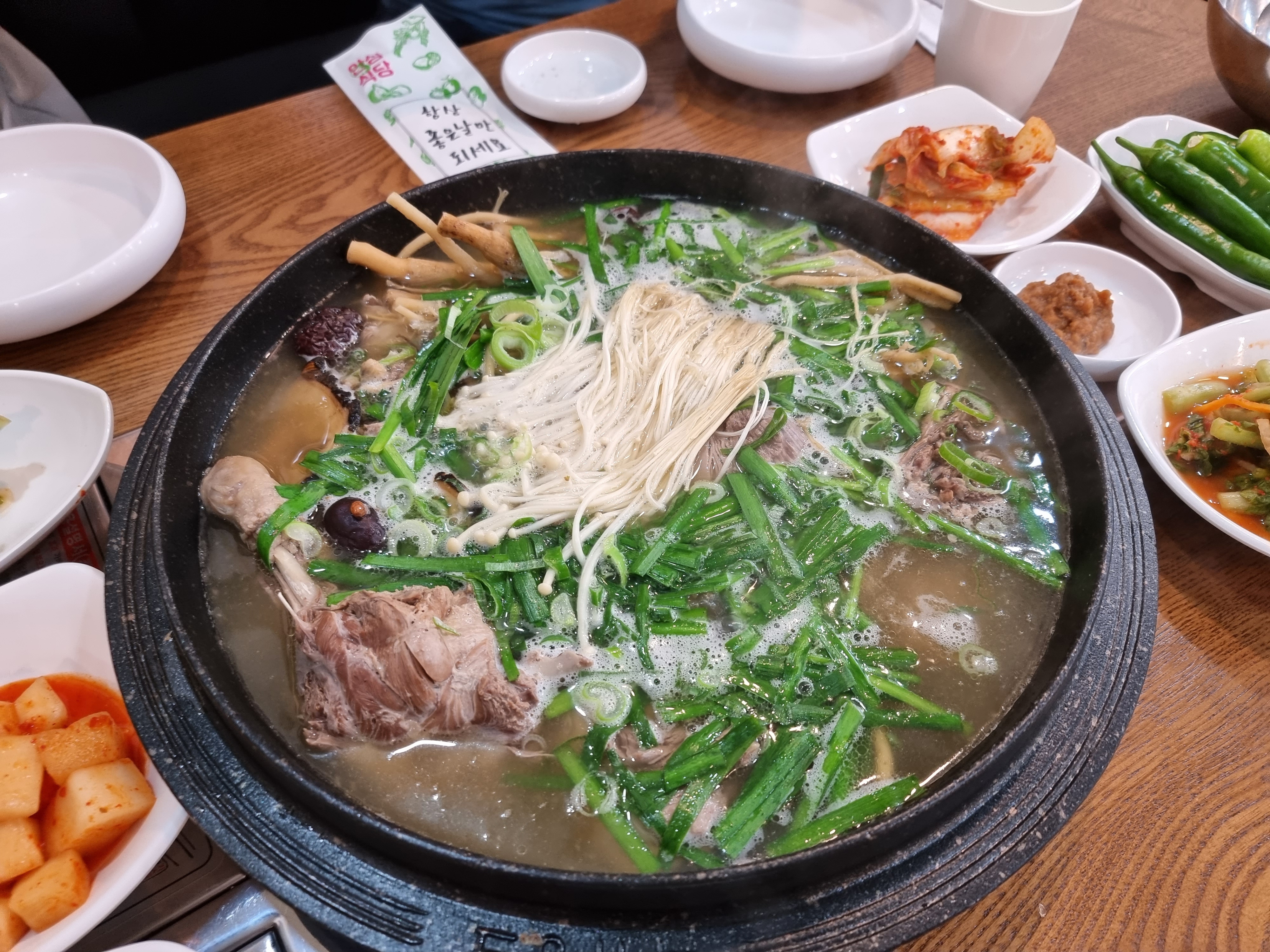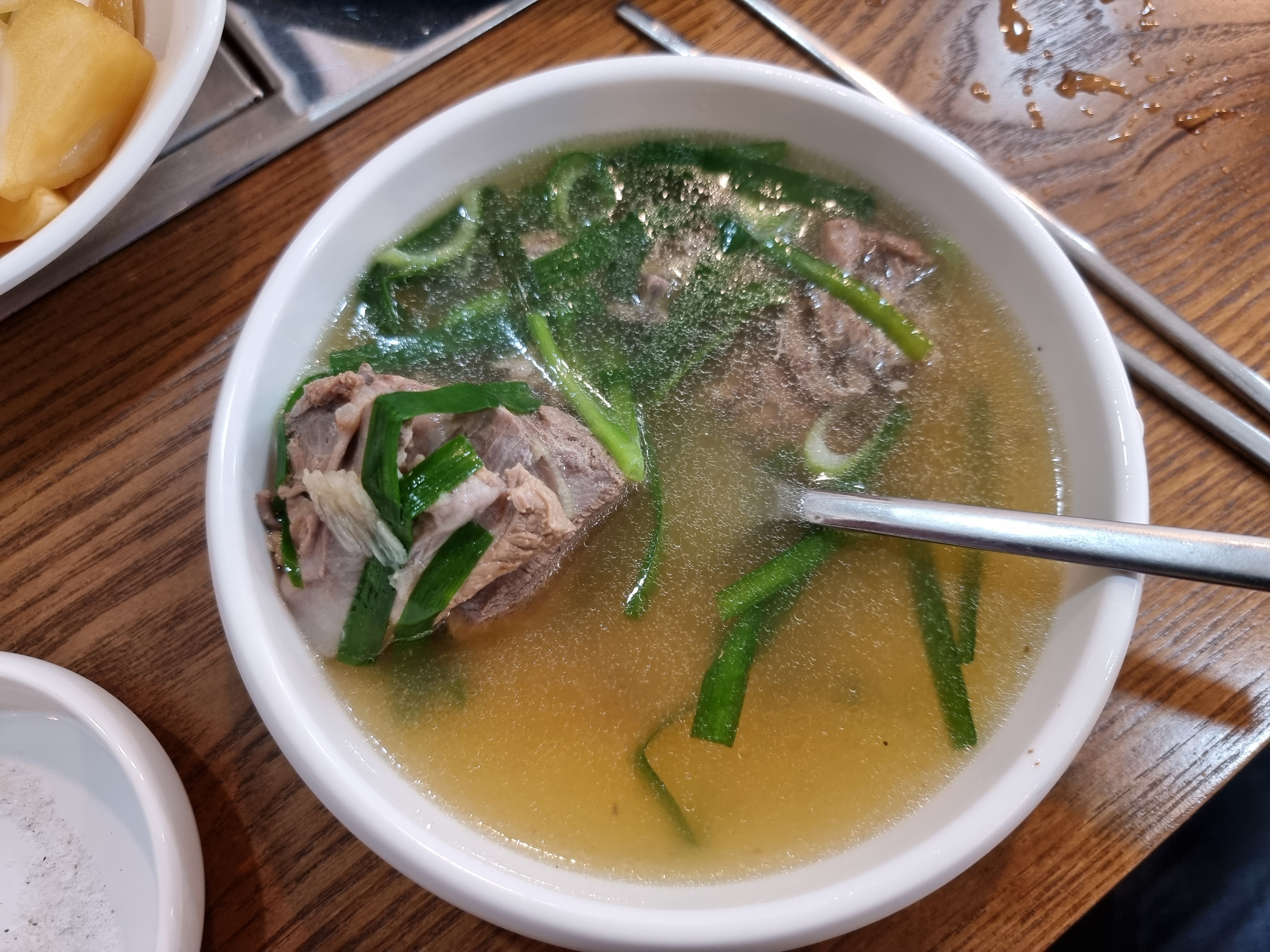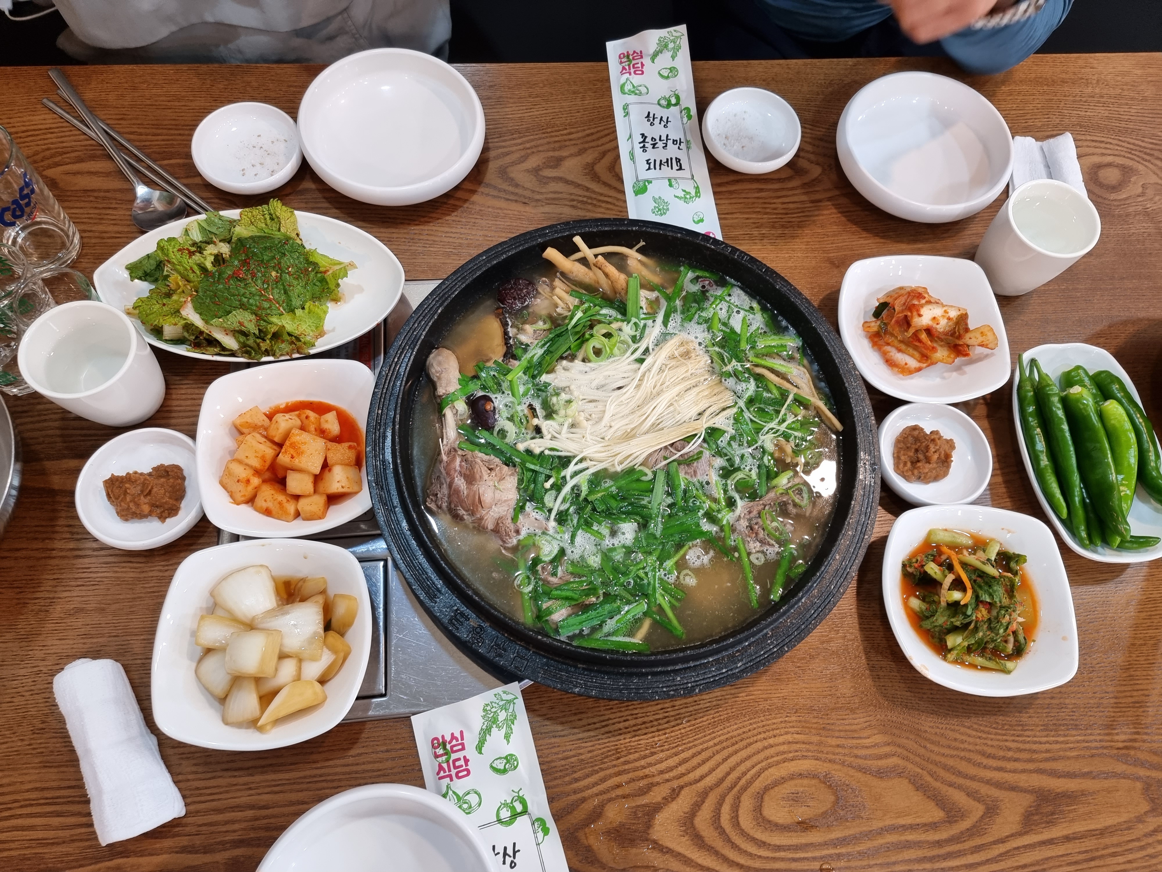 밑반찬 중에서도 겉절이나 양파, 깎두기 등이 싱싱하고 아삭하니 맛있었습니다. 앞접시에 덜어서 일행들과 위생적인 식사를 하였습니다. 국물이 맛있어서 아직도 맛이 기억이 나네요.