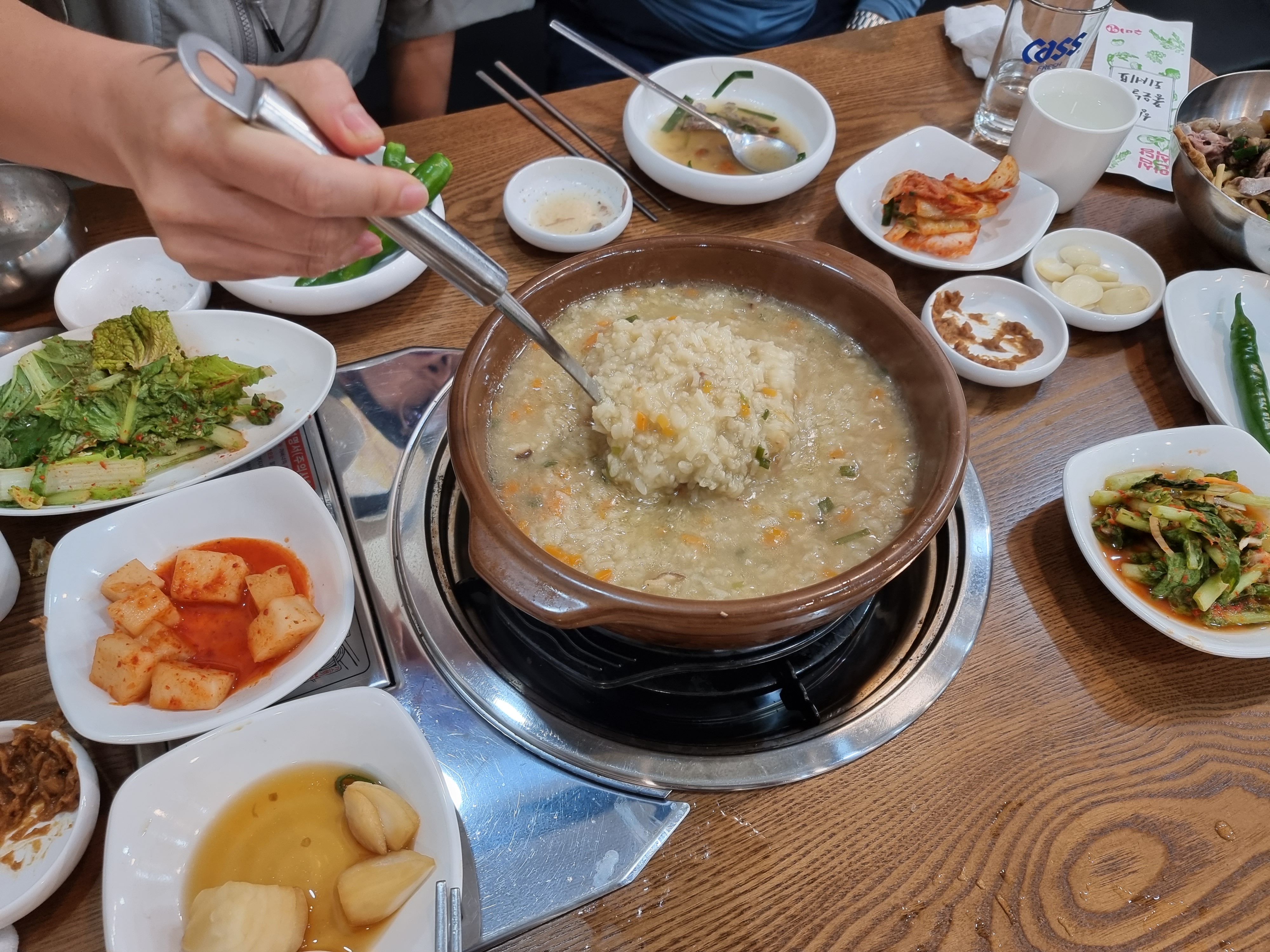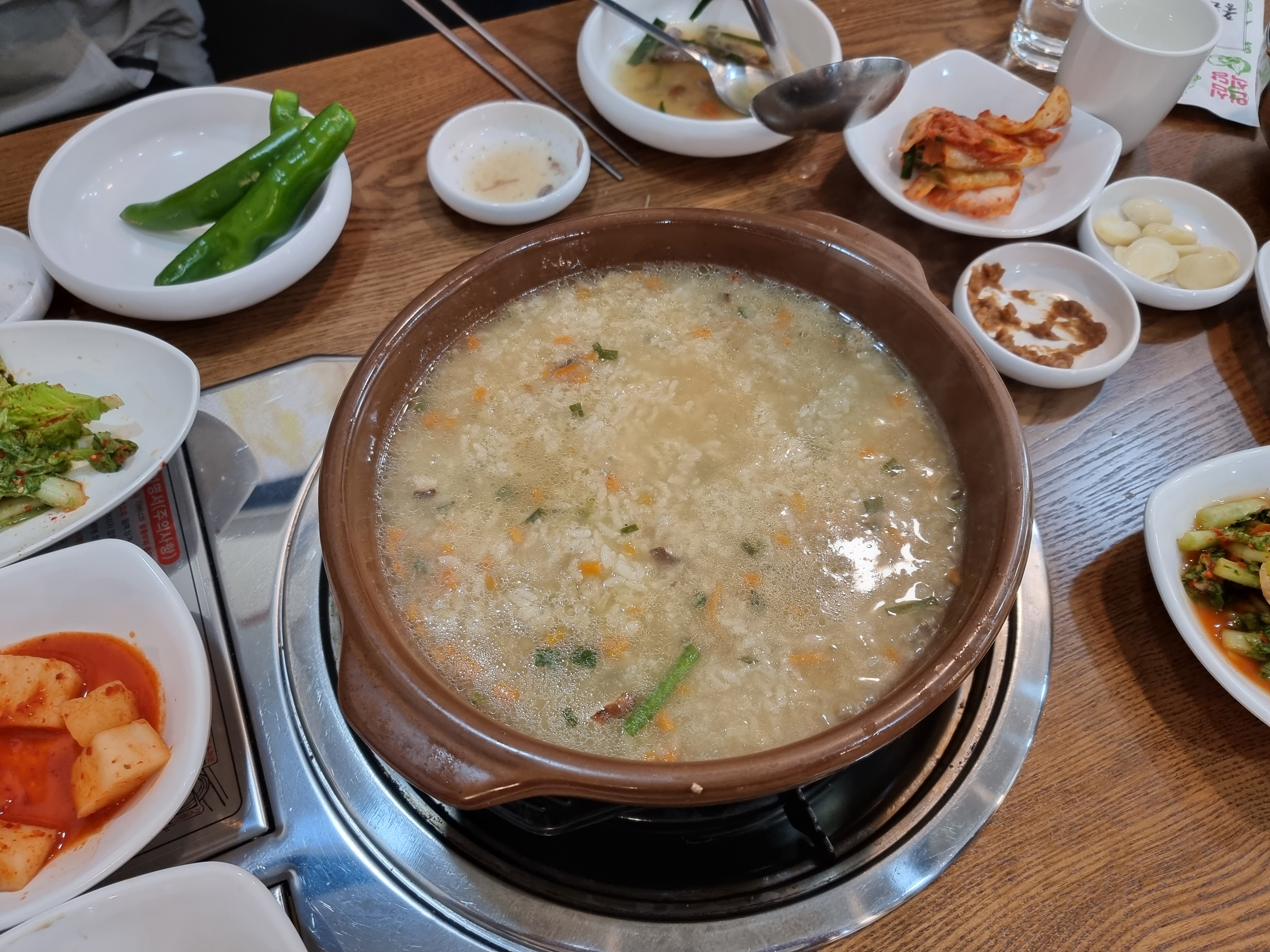 식사가 어느정도 끝나면 이렇게 죽을 내어줍니다. 죽도 맛있더라고요. 후식으로 먹기 좋았습니다. 고기 조금 남겨놓으면 고기랑 같이 먹는 것도 가능합니다.