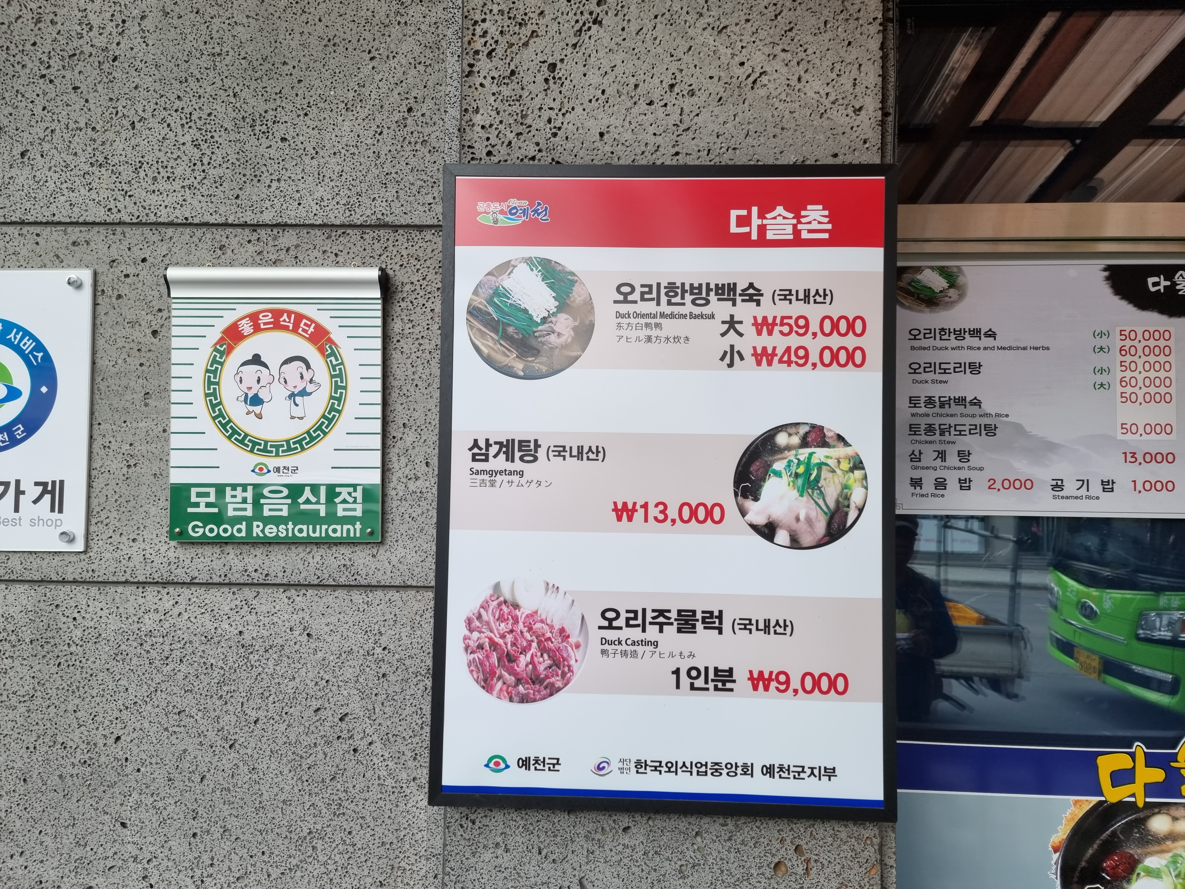 오리한방백숙과 삼계탕, 오리주물럭 등이 인기 메뉴입니다. 예천군 선정 모범음식점입니다. 토종닭백숙도 있네요.