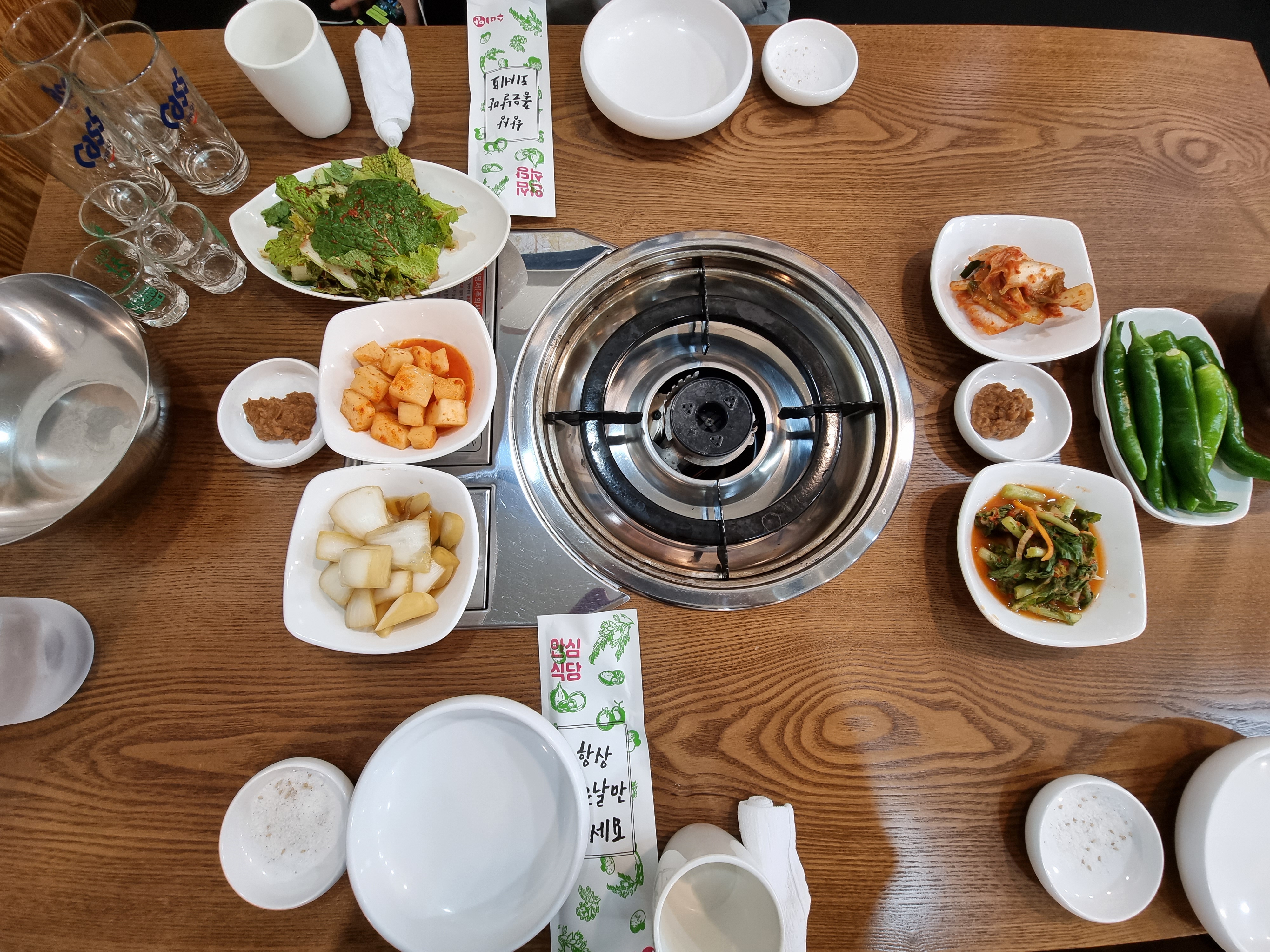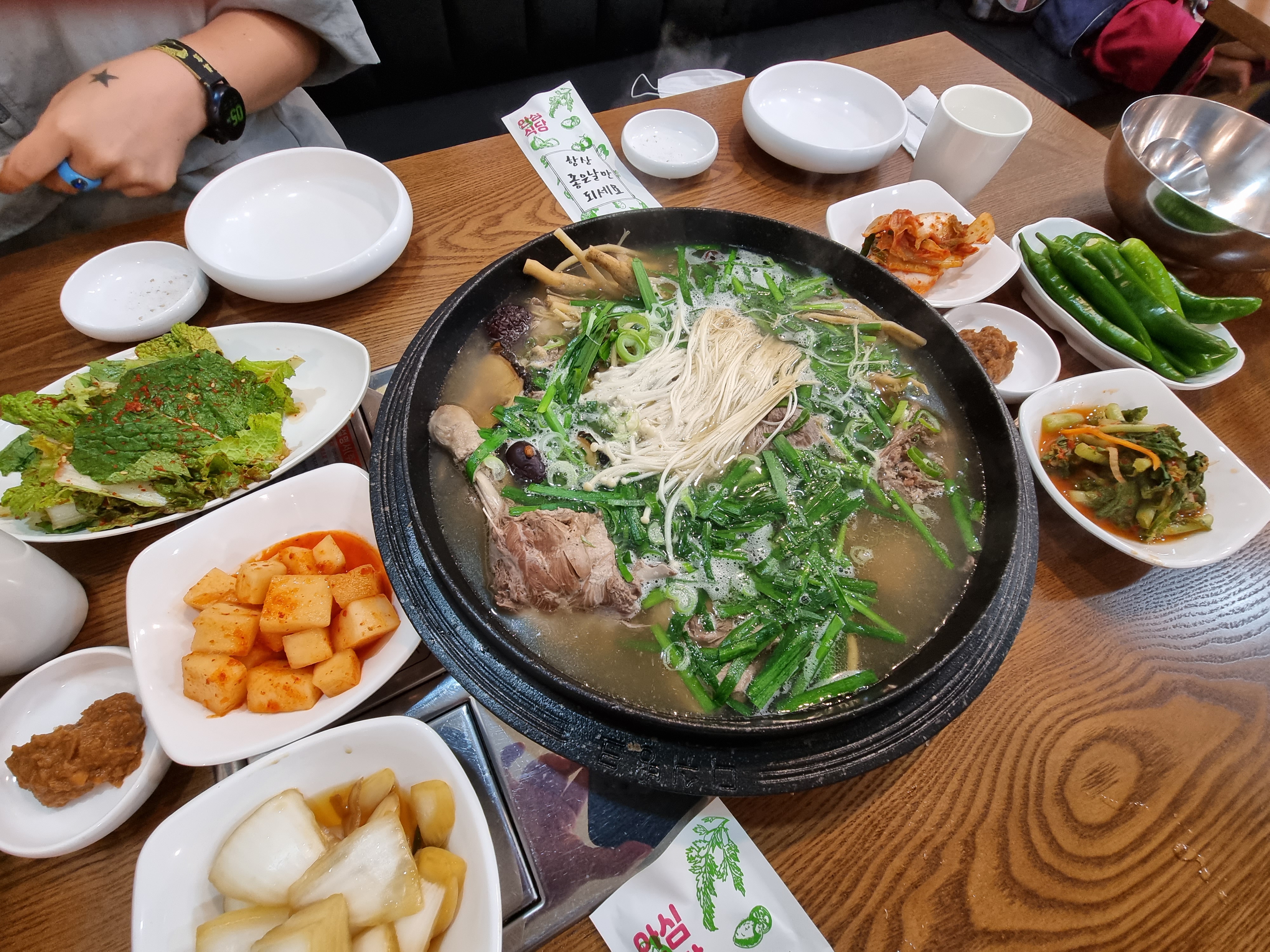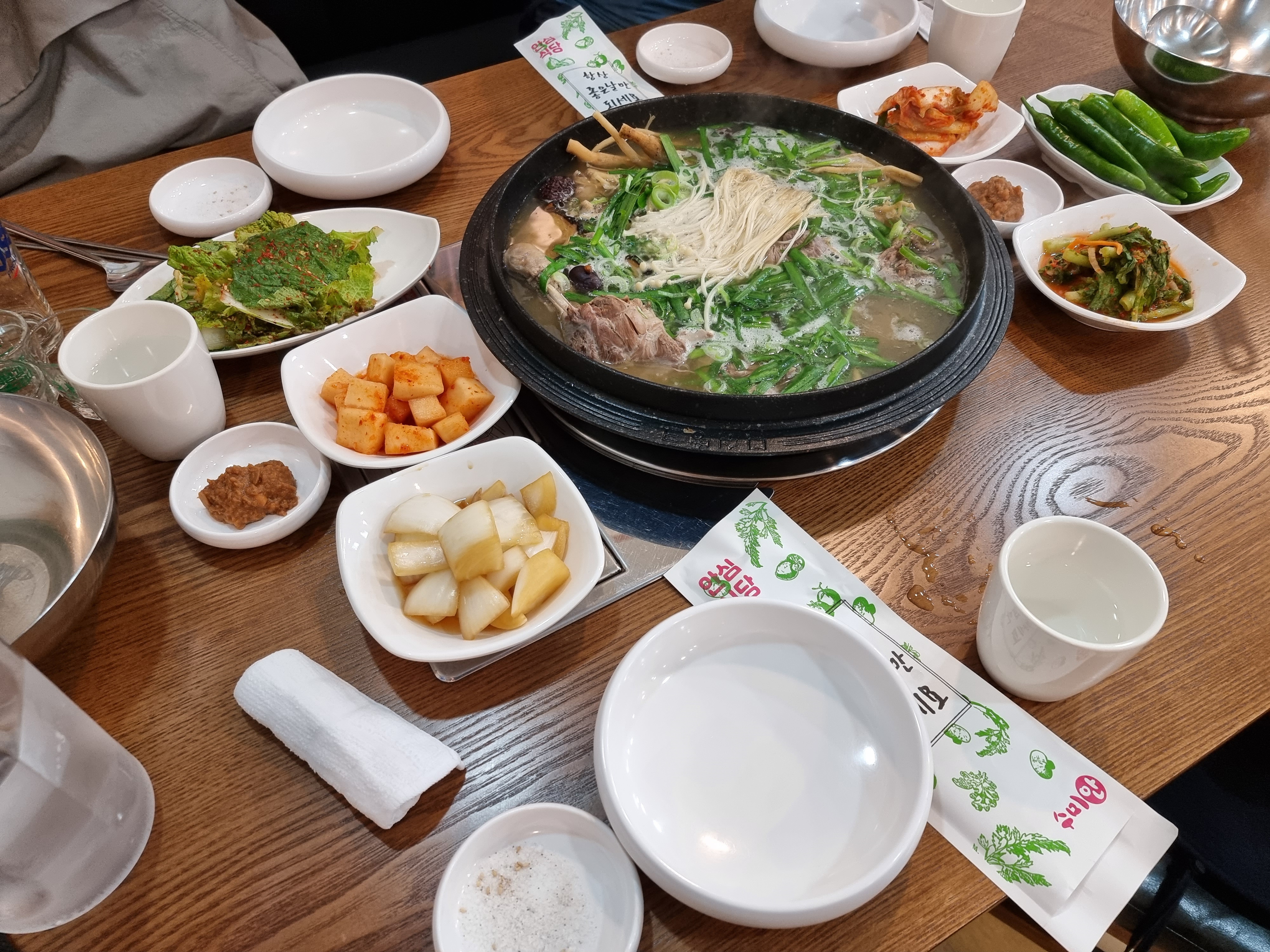 밑반찬 중에서도 겉절이나 양파, 깎두기 등이 싱싱하고 아삭하니 맛있었습니다. 앞접시에 덜어서 일행들과 위생적인 식사를 하였습니다. 국물이 맛있어서 아직도 맛이 기억이 나네요.