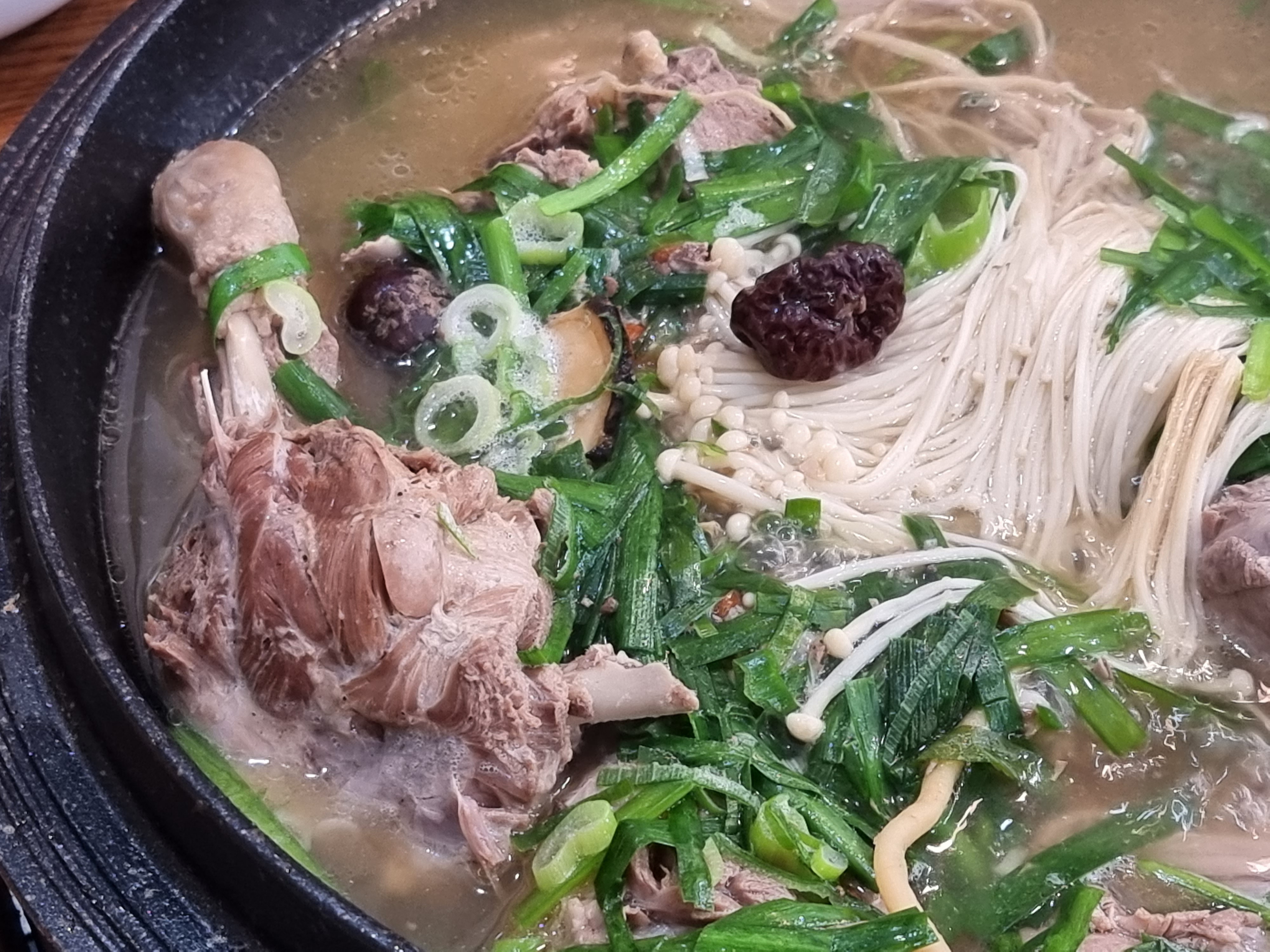 오리한방백숙이 나왔습니다. 안에 푸짐하게 건더기가 들어있고 양도 정말 많은 편이었어요. 특히 국물이 진짜 진국입니다.