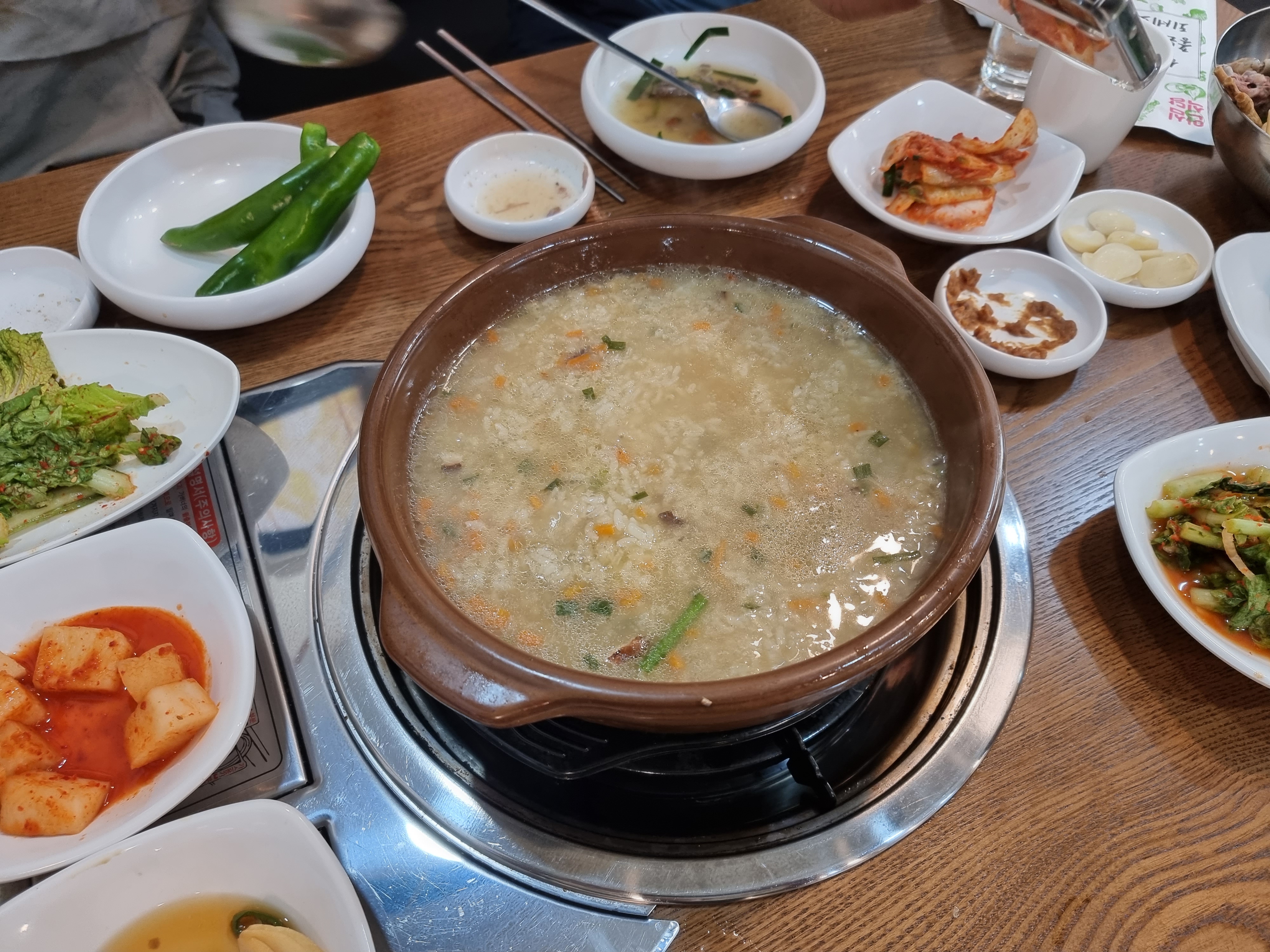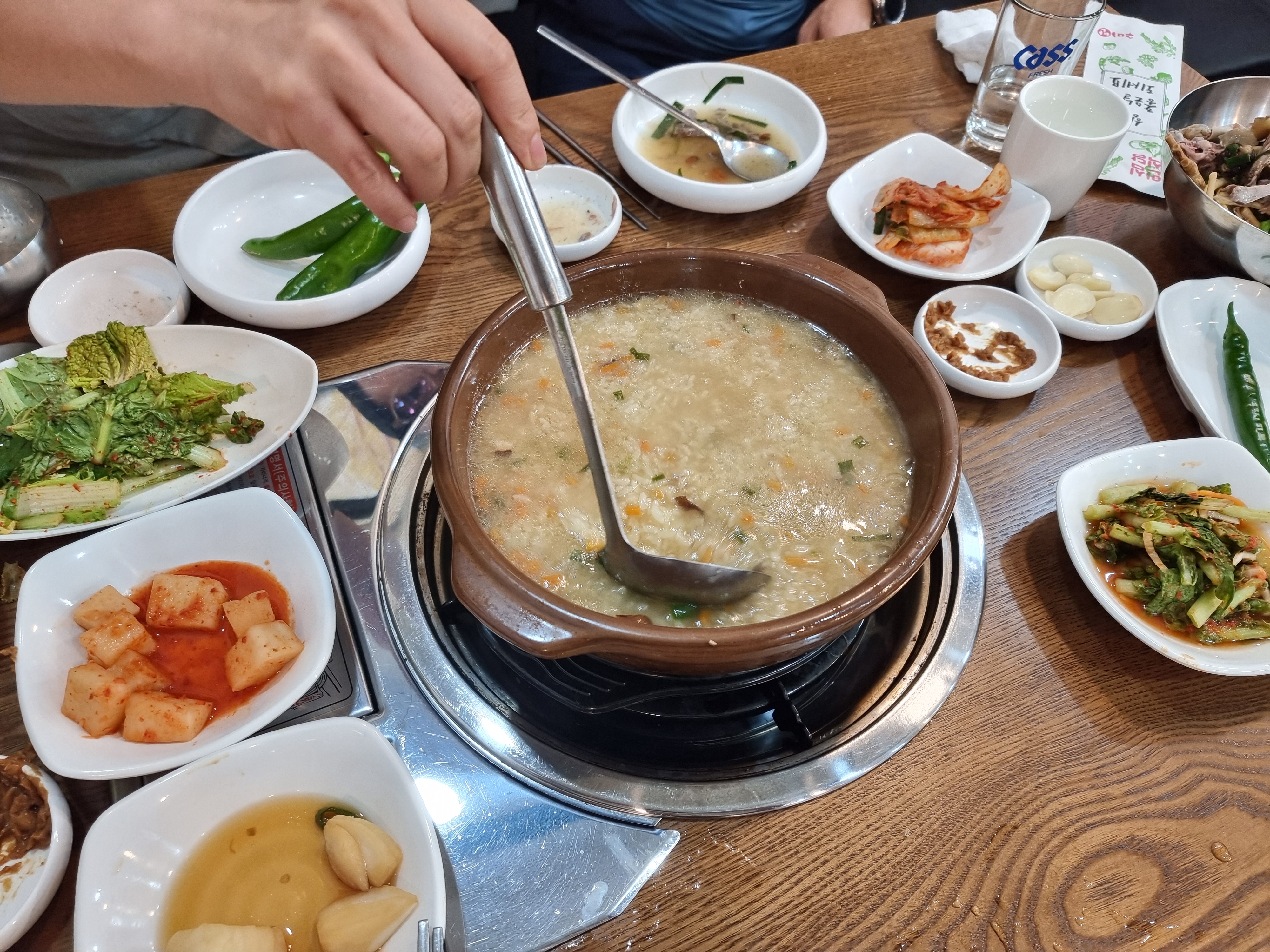 식사가 어느정도 끝나면 이렇게 죽을 내어줍니다. 죽도 맛있더라고요. 후식으로 먹기 좋았습니다. 고기 조금 남겨놓으면 고기랑 같이 먹는 것도 가능합니다.